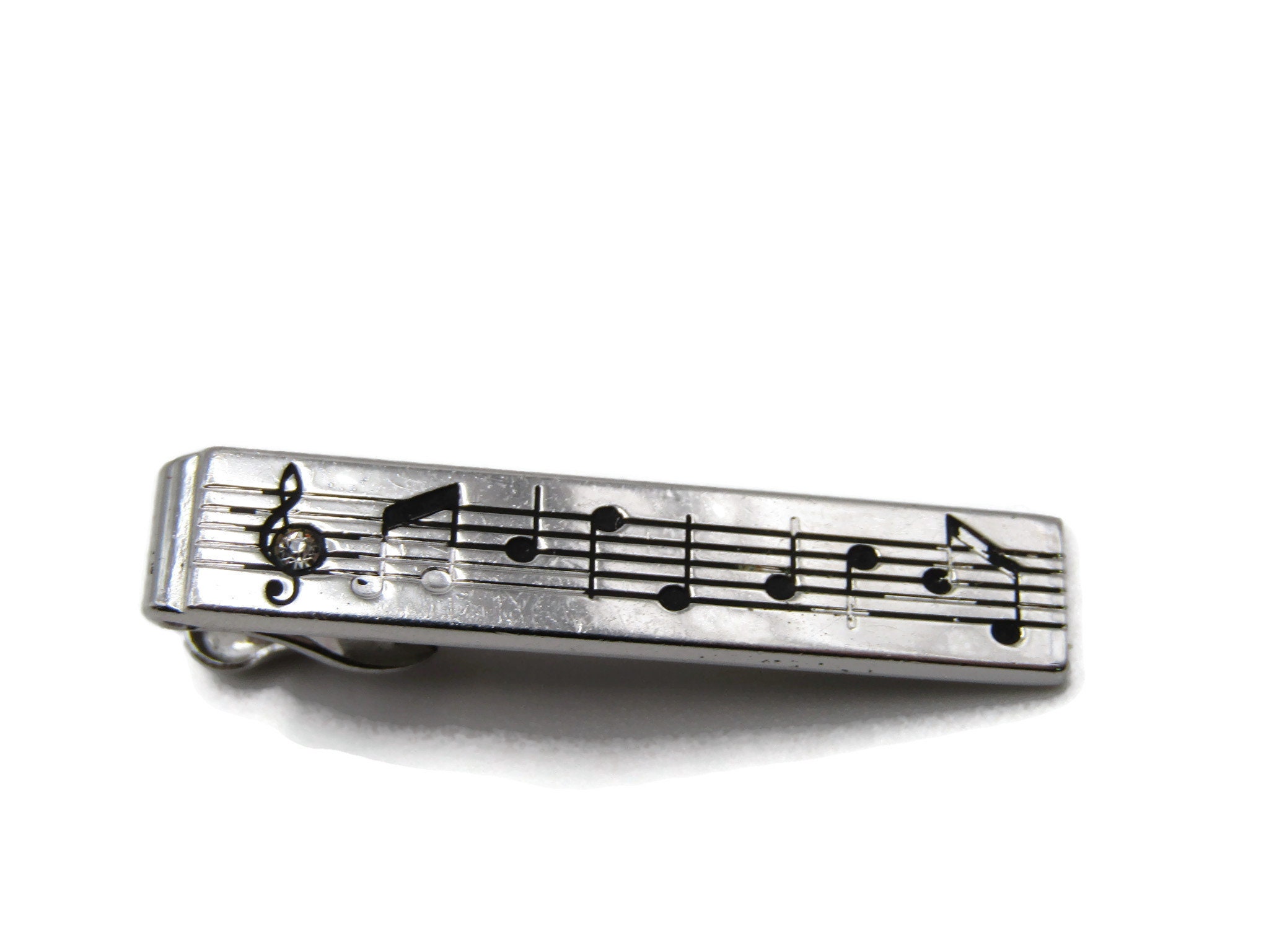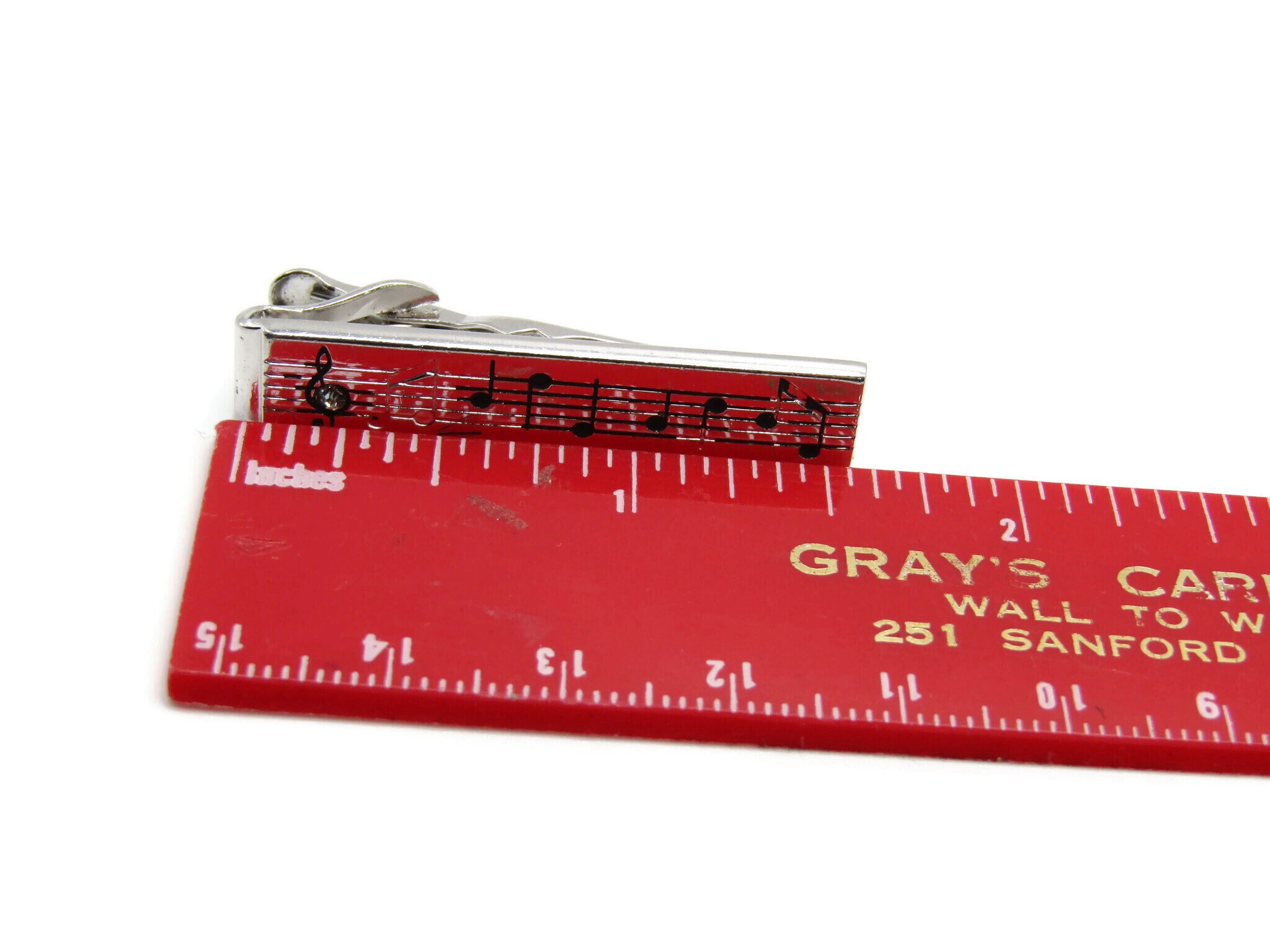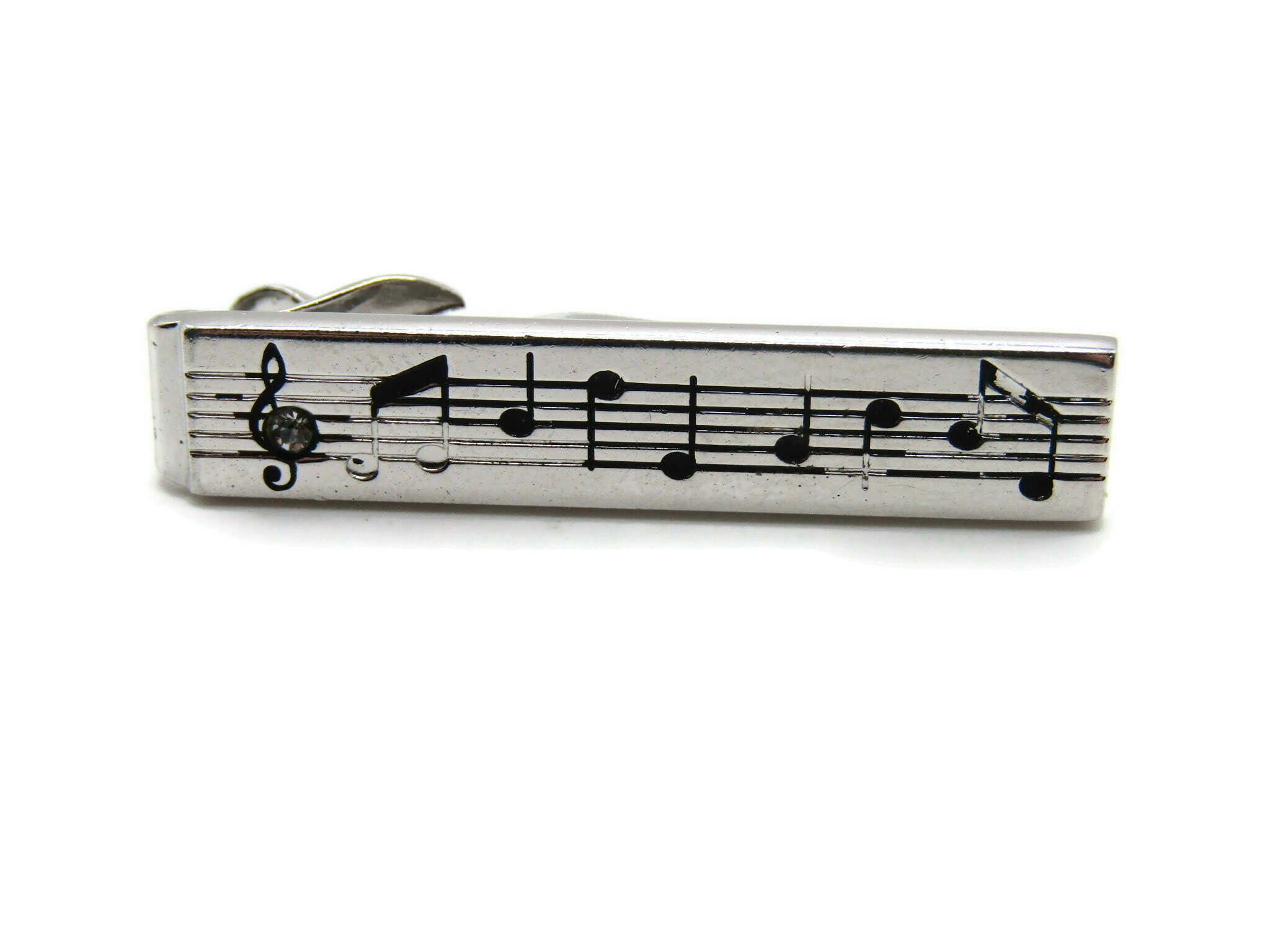 Music Stanza Sheet Music Musicial Horizontal Notes Silver Tone Modernist Tie Clip Tie Bar Men's Jewelry
