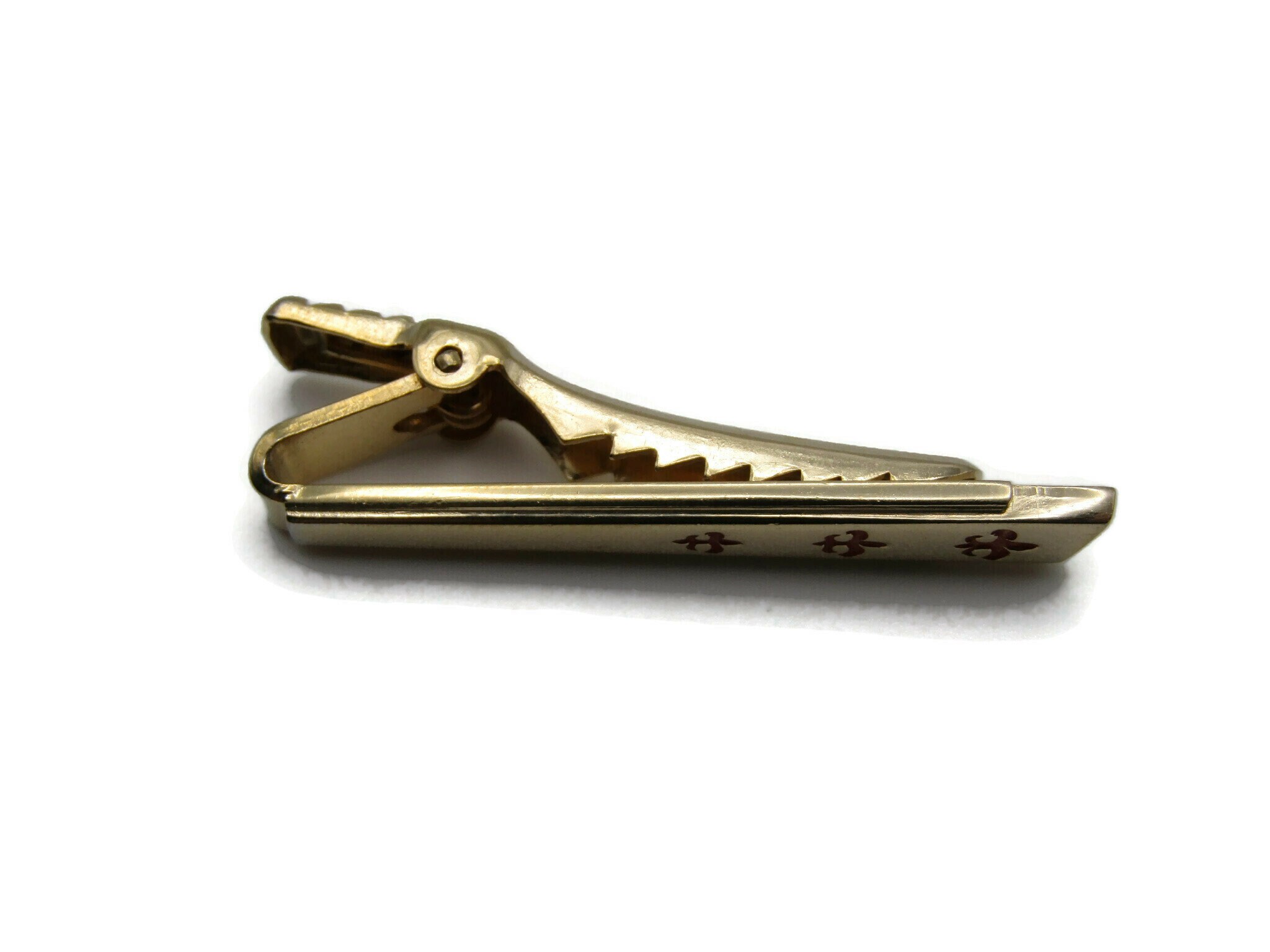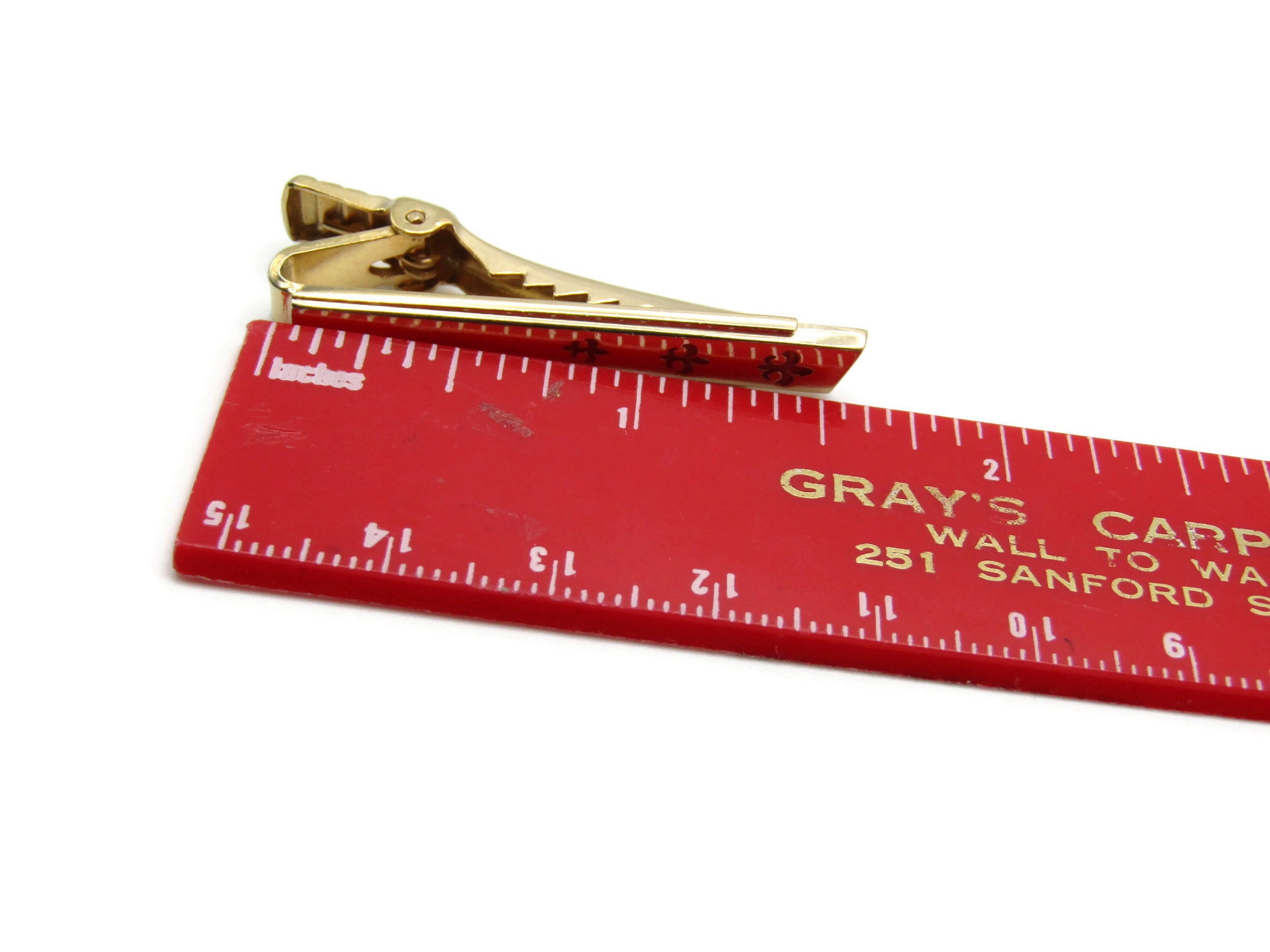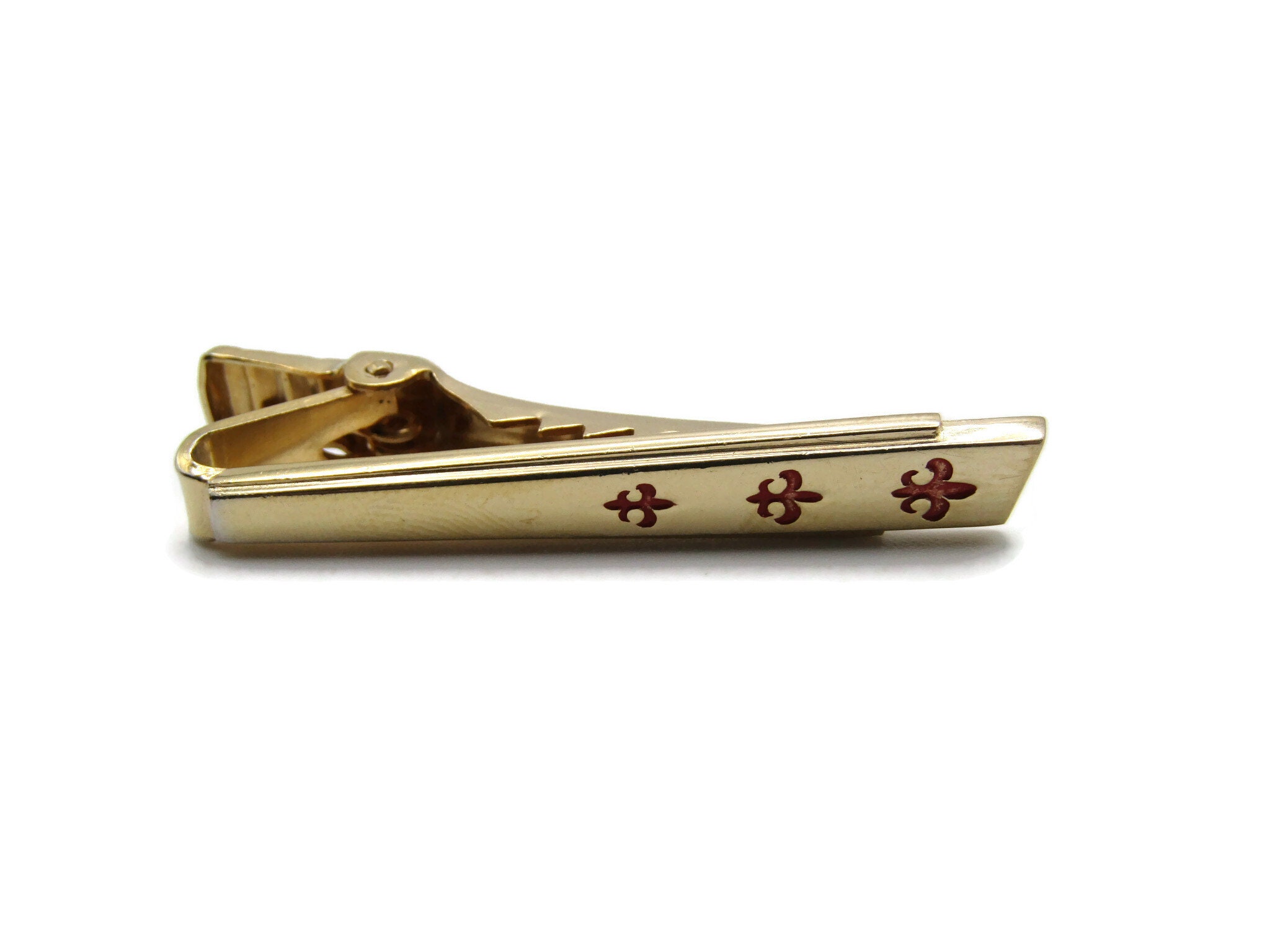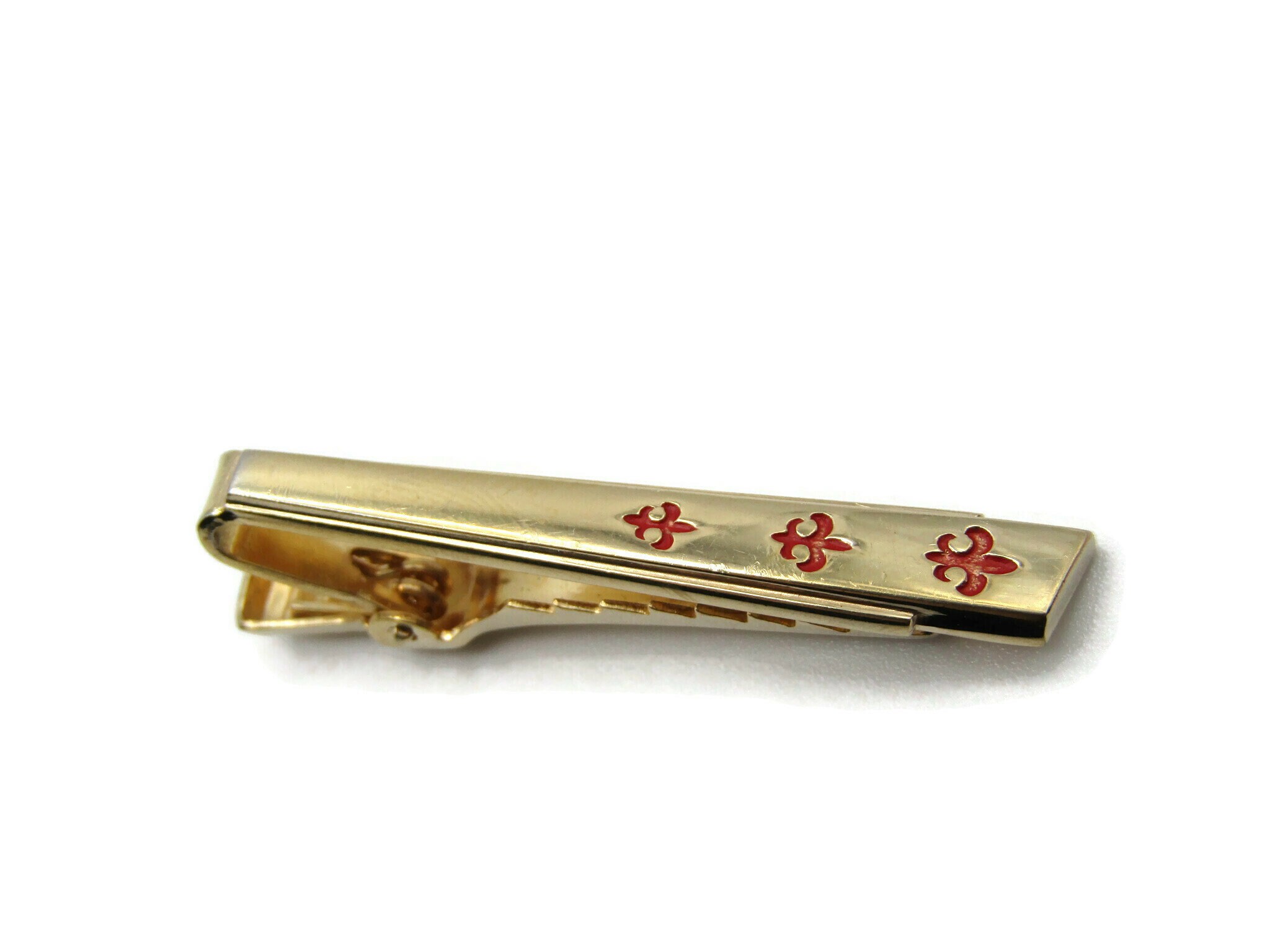 Red Etched Fleur Patters Smotth Finsih Gold Tone Modernist Tie Bar Tie Clip Men's Jewelry