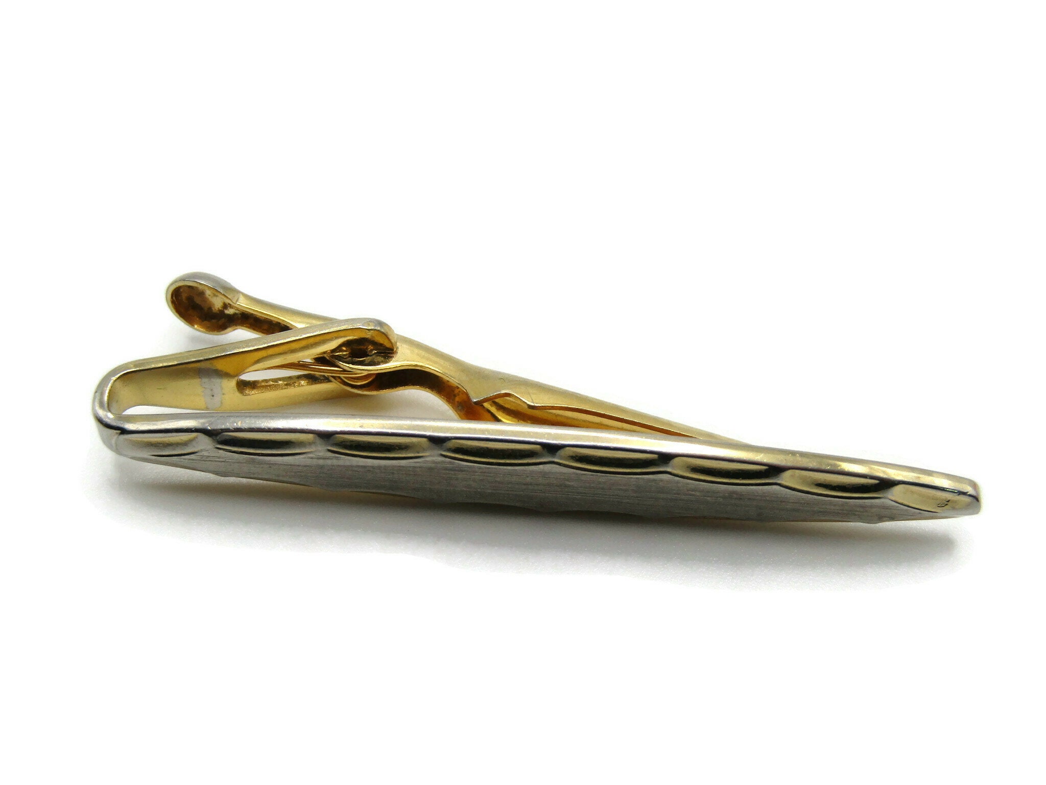 Scalloped Edge Silver Tone Brushed Finish Front Tie Bar Gold Tone Tie Clip Men's Jewelry