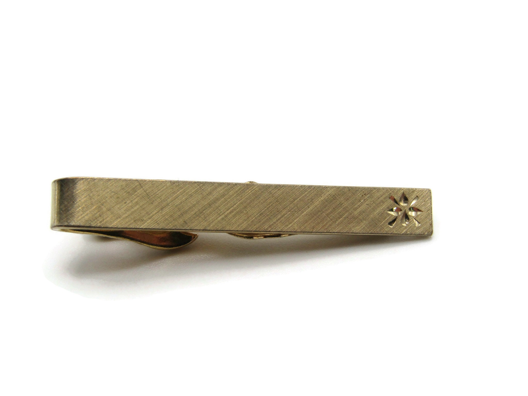 Textured & Fluer Design Gold Tone Tie Bar Tie Clip Modernist Industrial Men's Jewelry