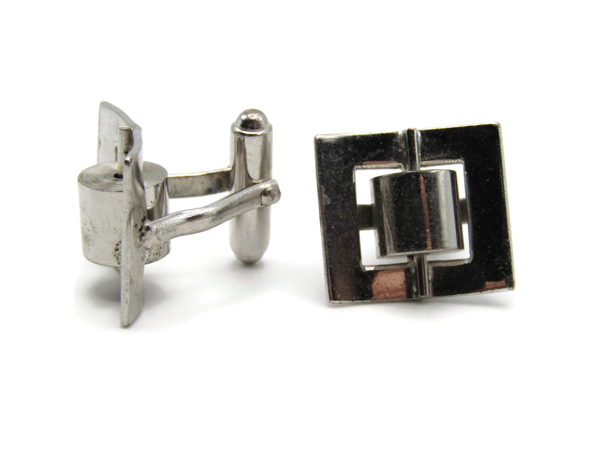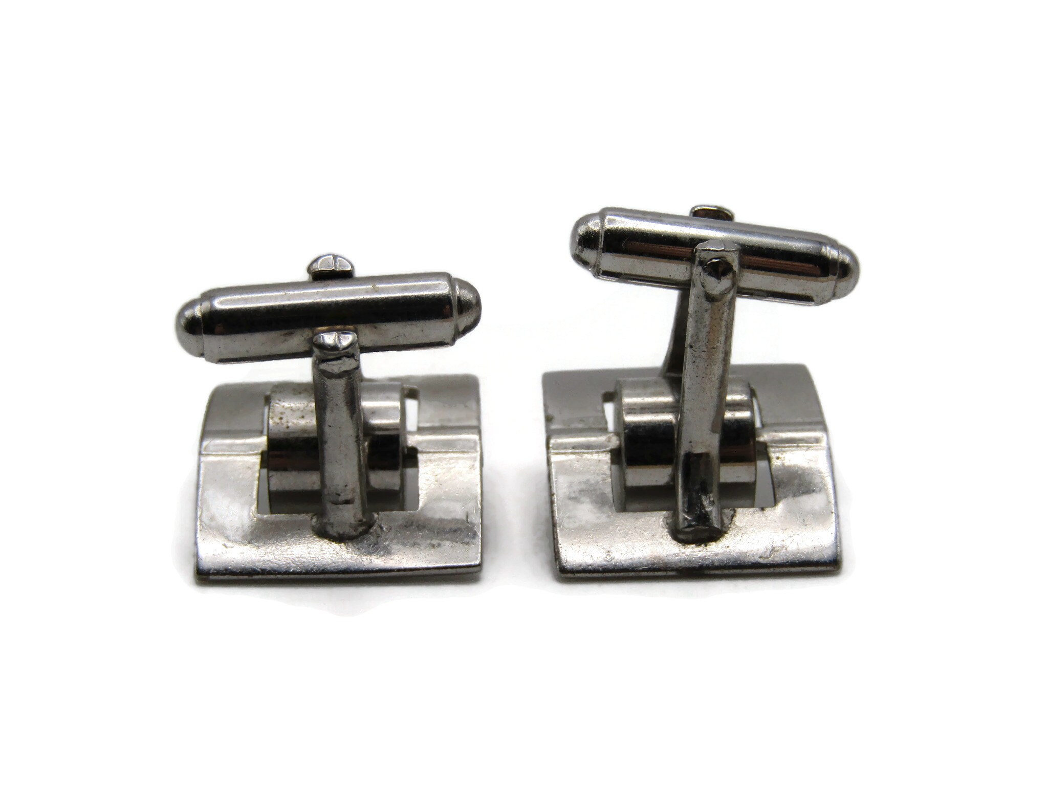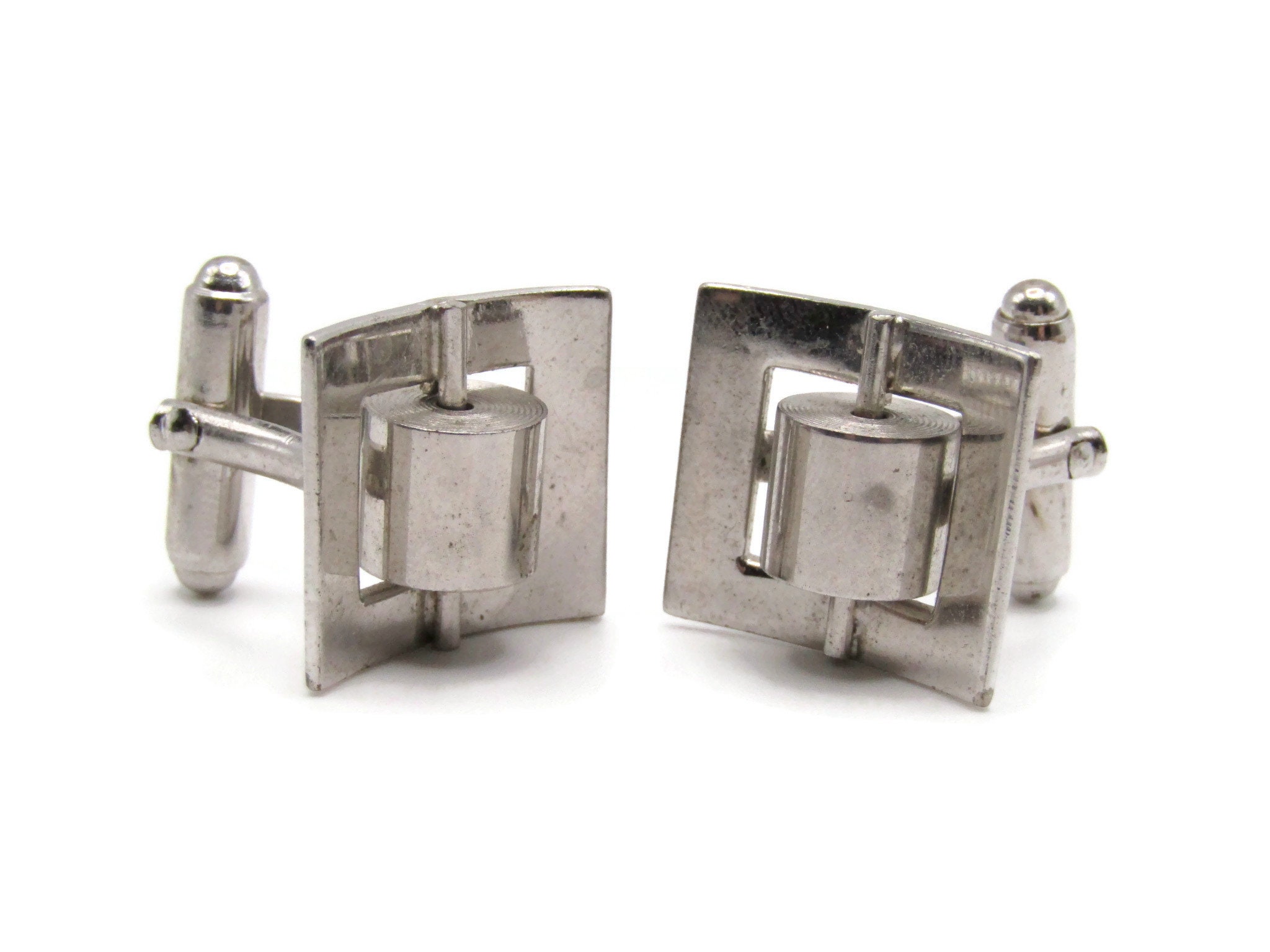 Vintage Cufflinks for Men: Spinning Wheel Center Silver Tone