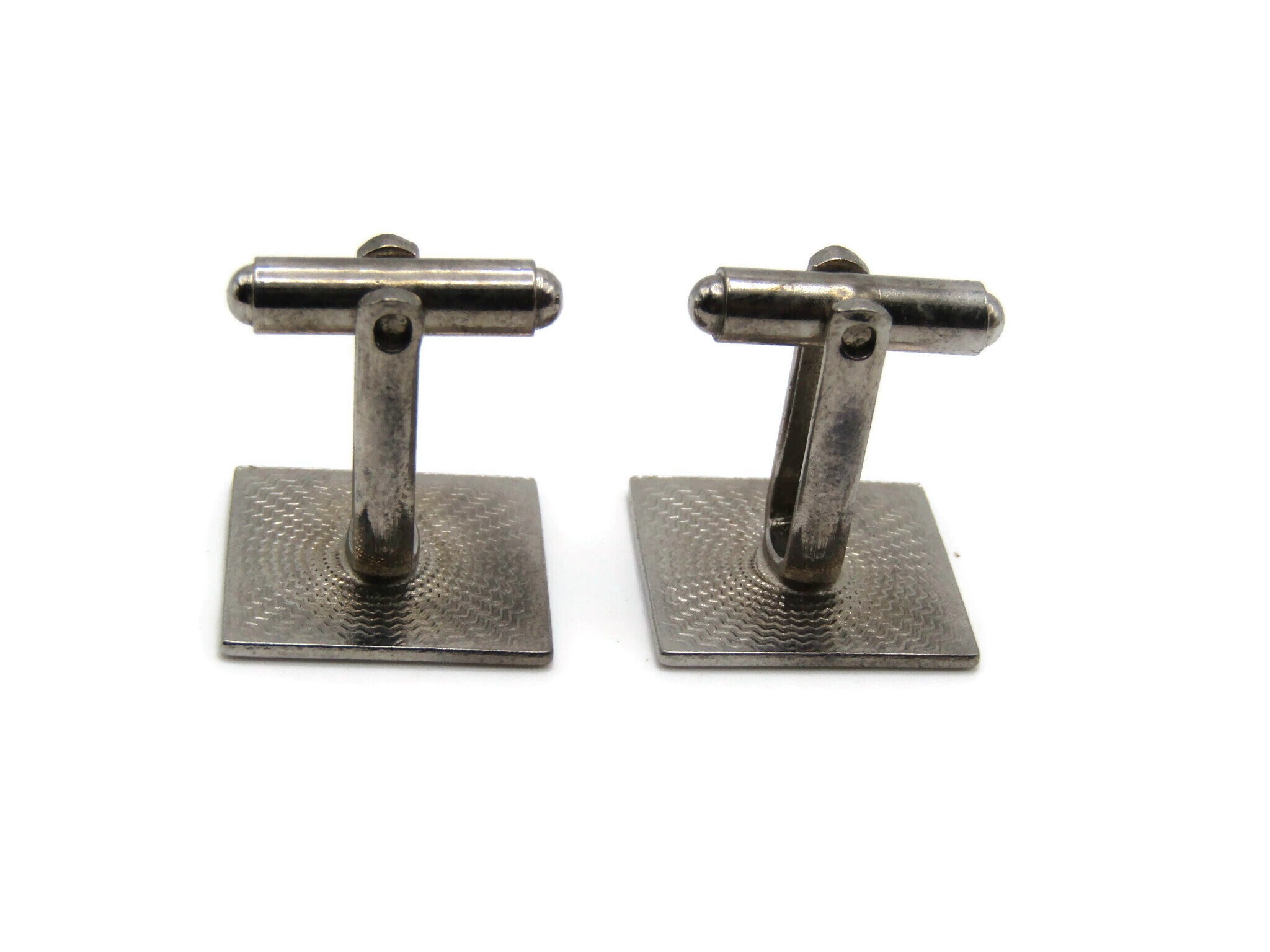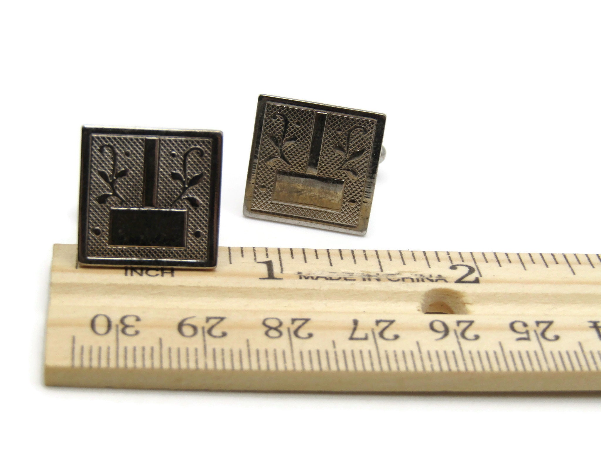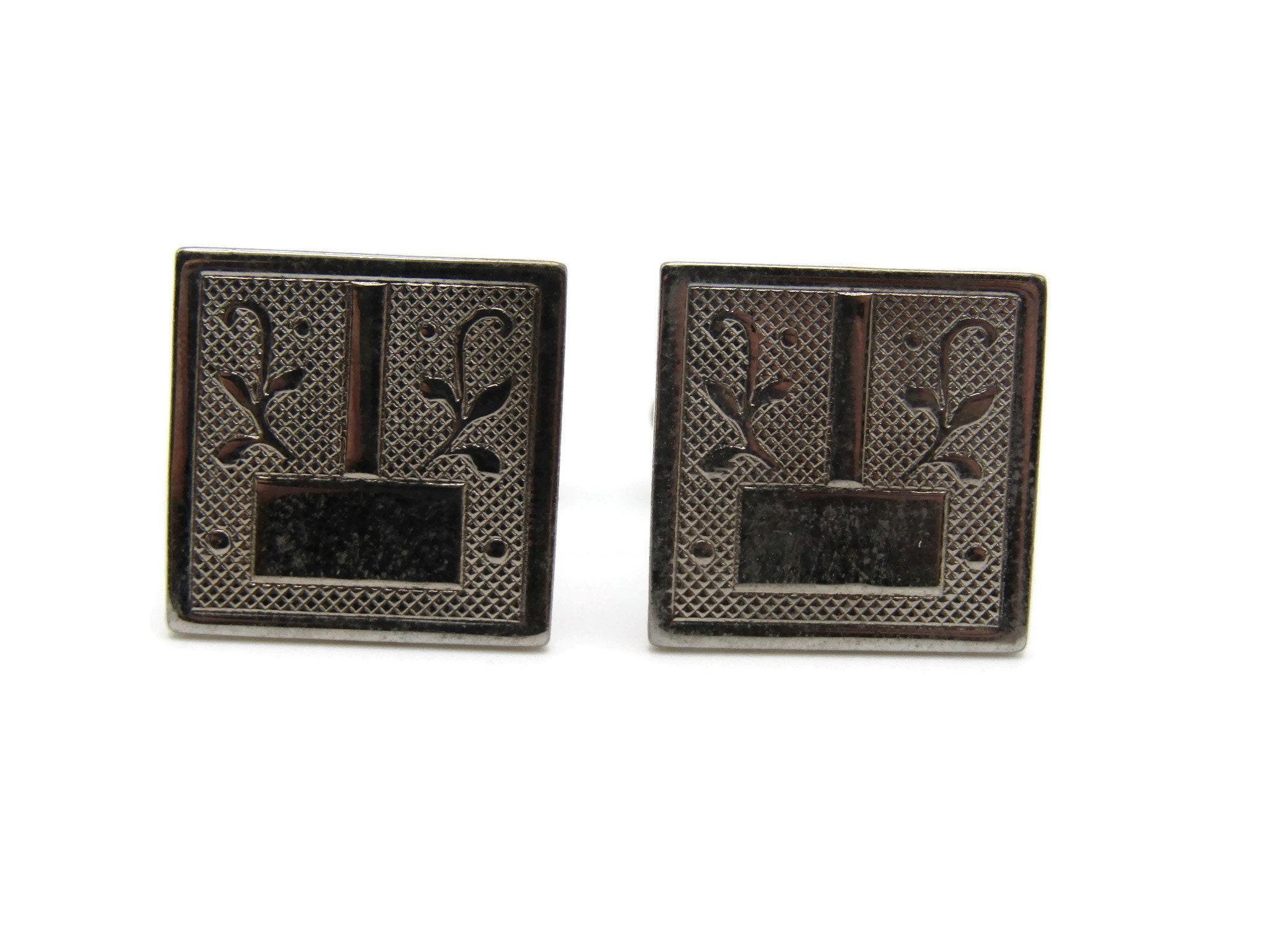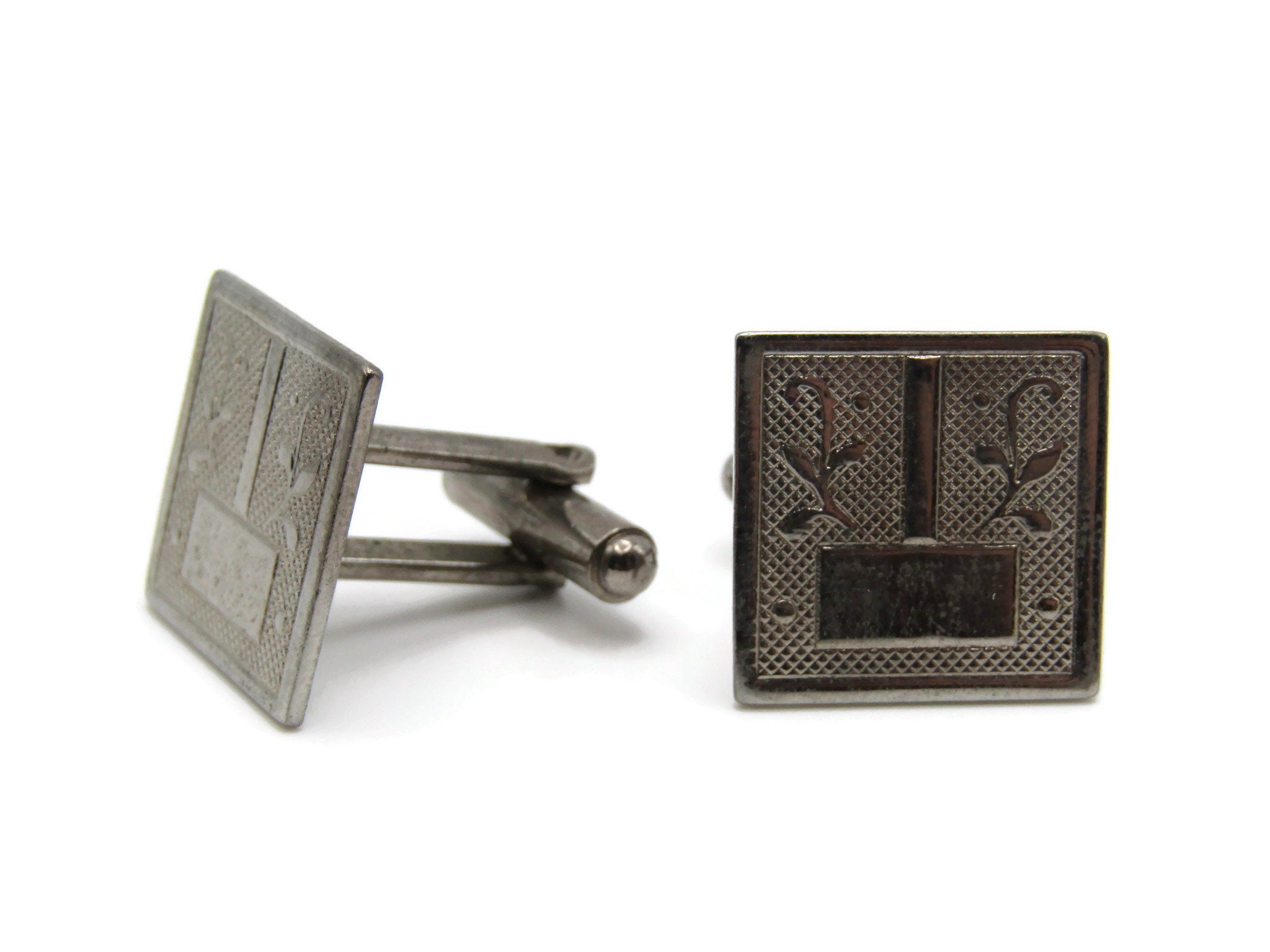 Vintage Cufflinks for Men: Textured Leaf and Rectangle Design Silver Tone
