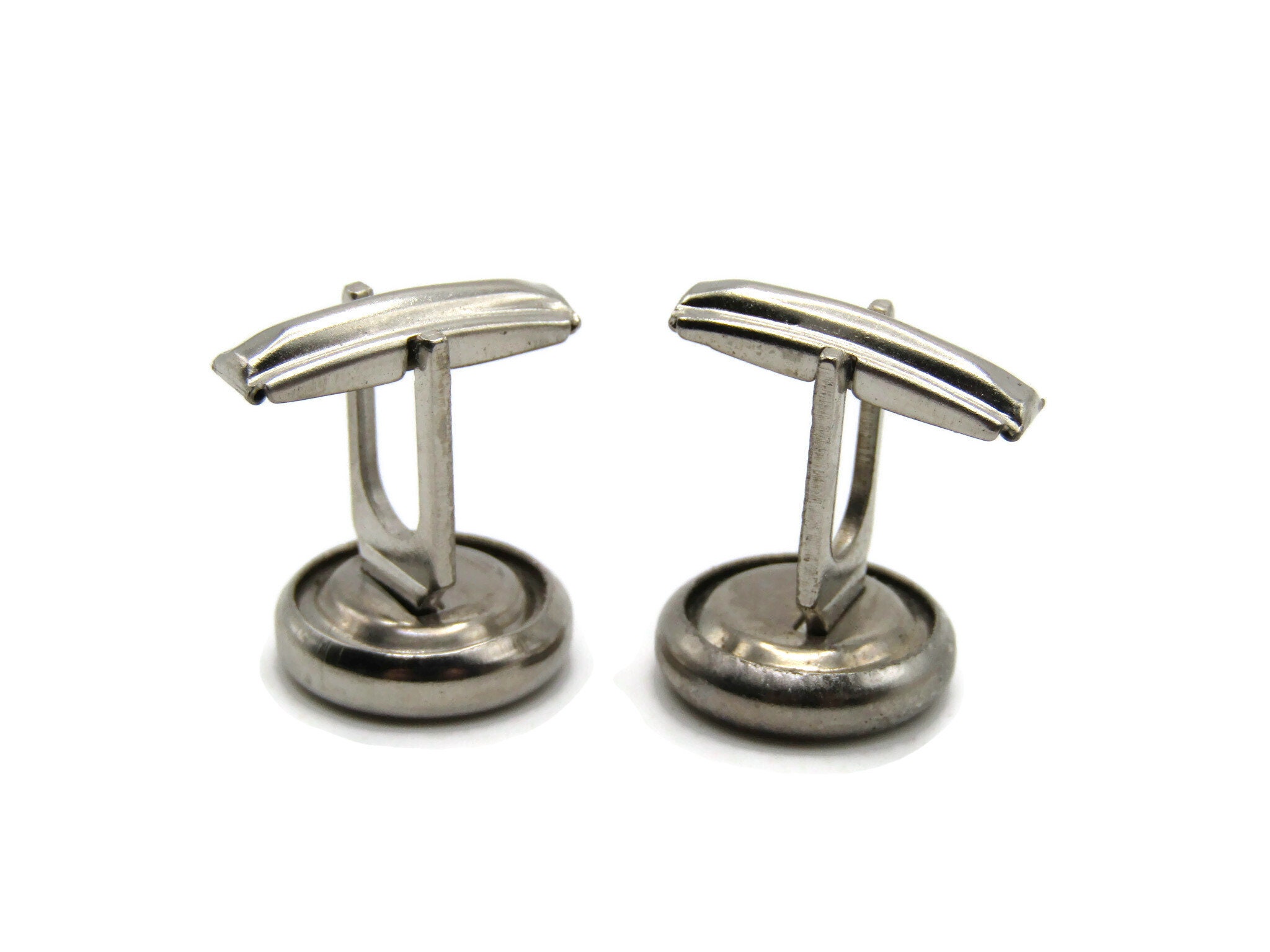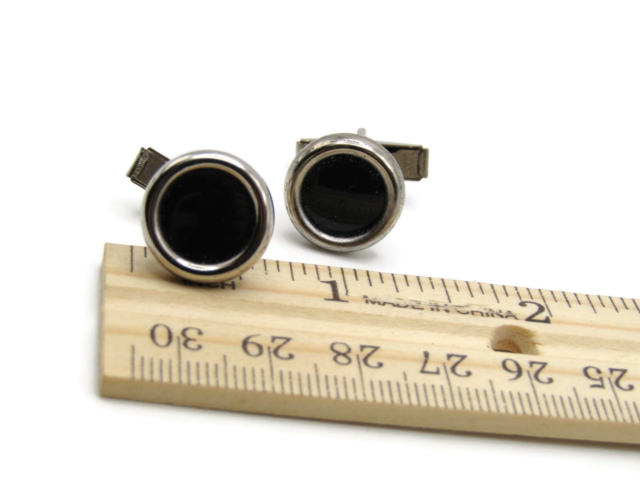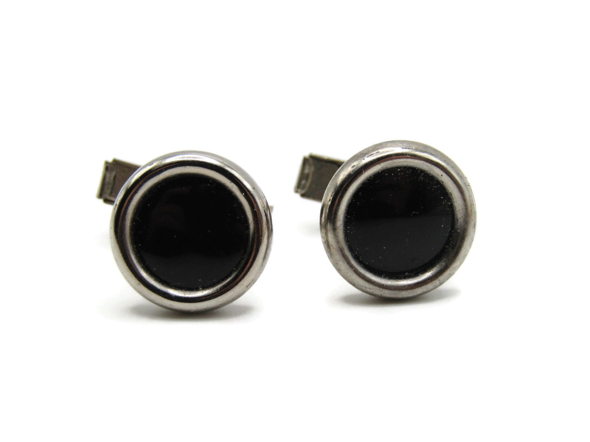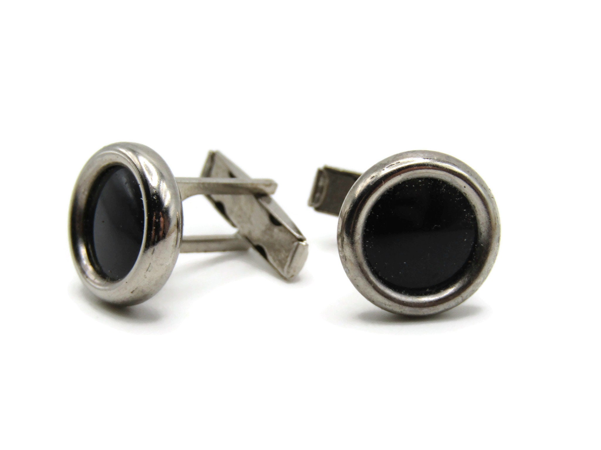Vintage Cufflinks for Men: Round Black Stone Inlay Classic Silver Tone
