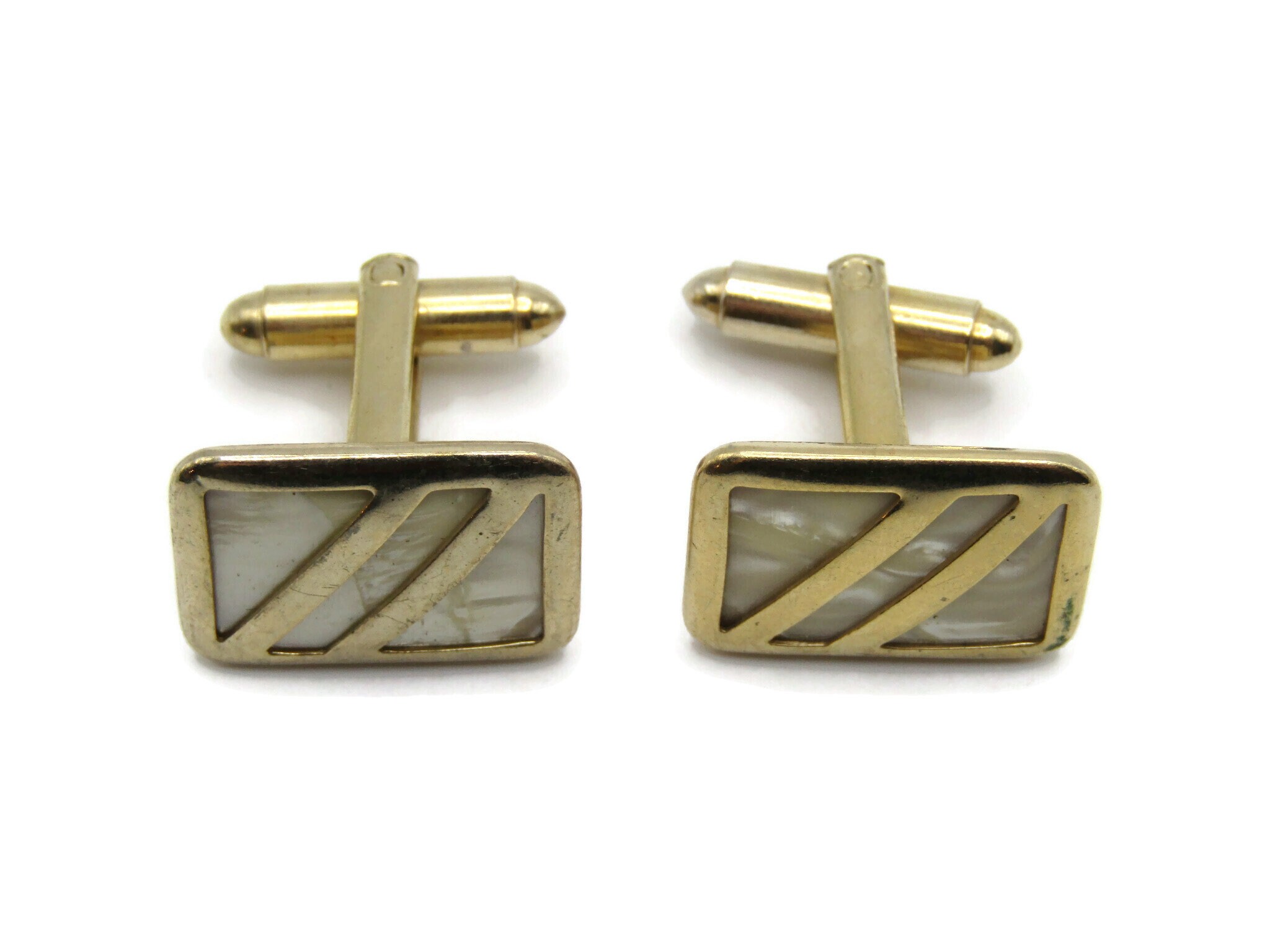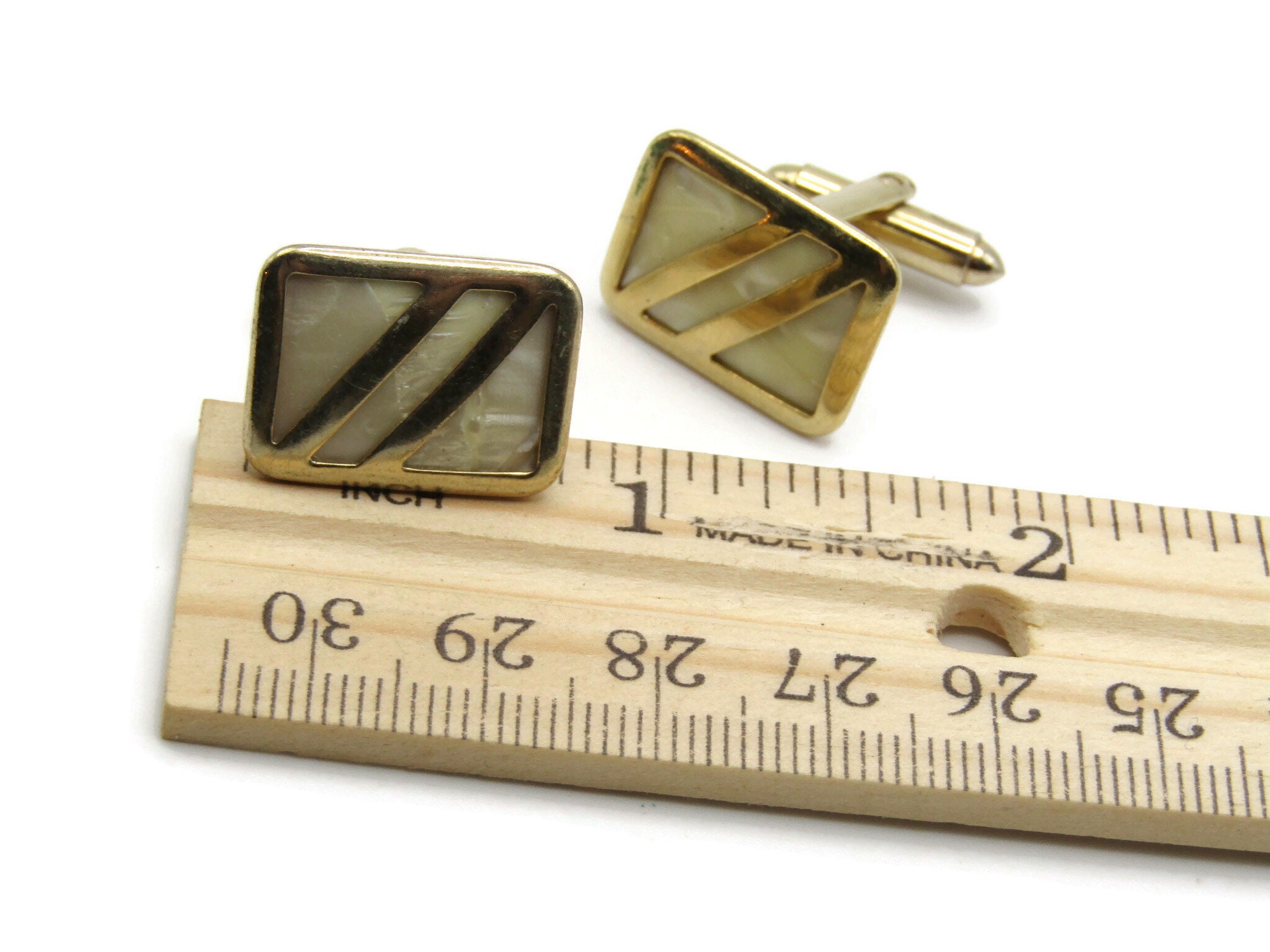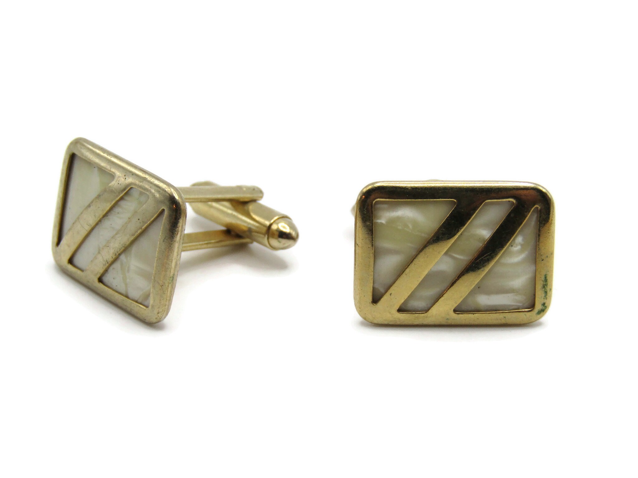 Mother of Pearl Inlay Diagonal Line Design Gold Tone Cufflinks