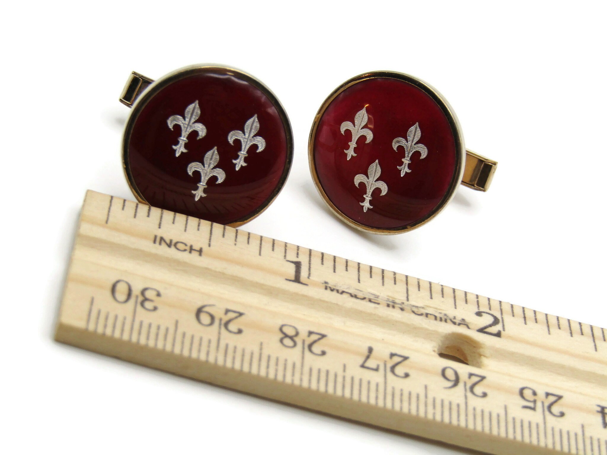 Red Stone Fluer Di Lis Etched Design Gold Tone Cufflinks