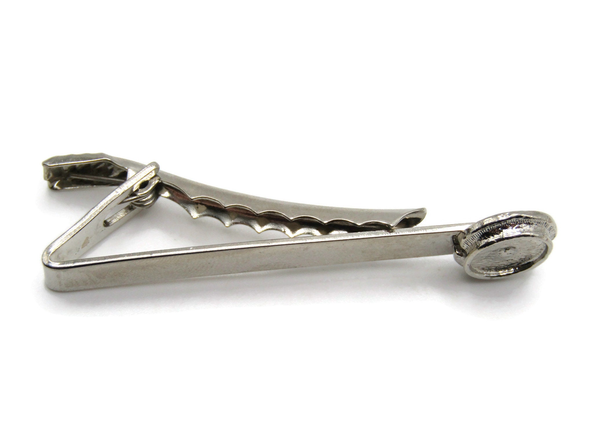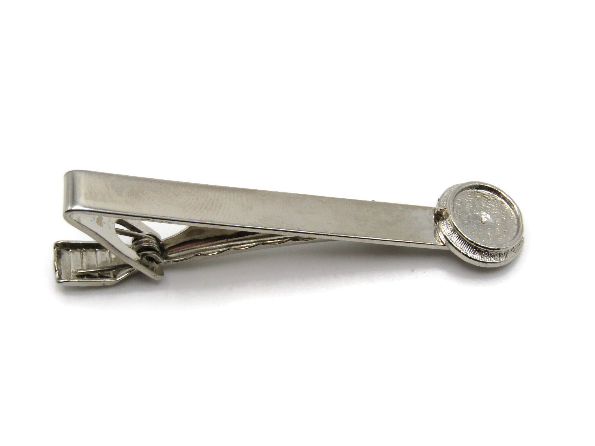 Smooth Finish Tie Bar Circle Edge Detail Silver Tone Tie Clip Men's Jewelry