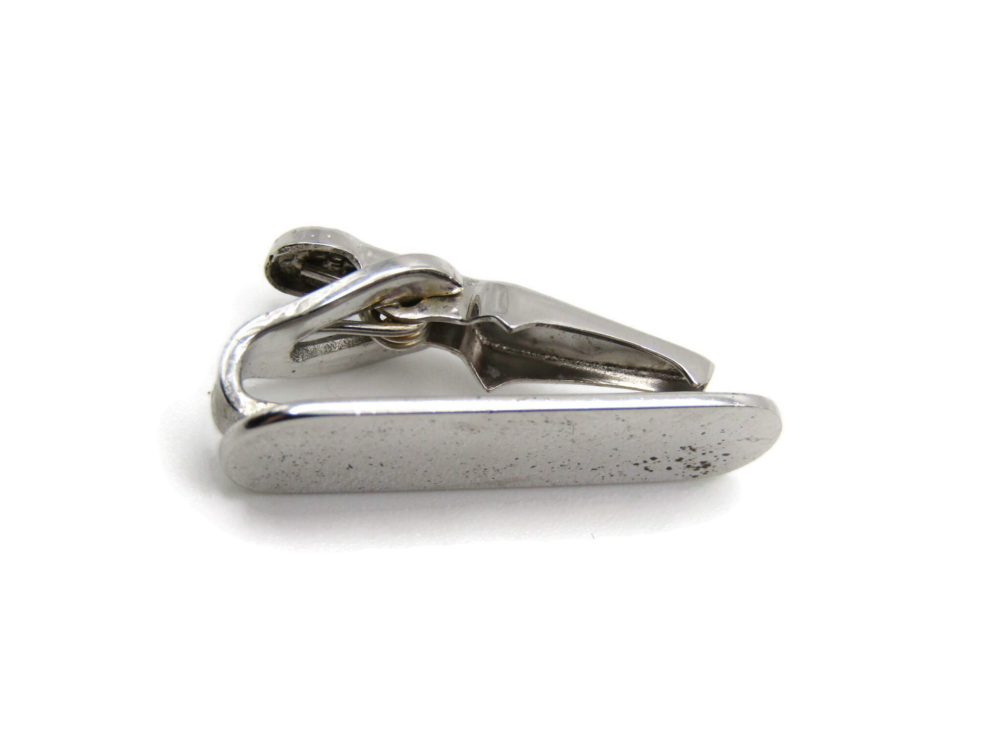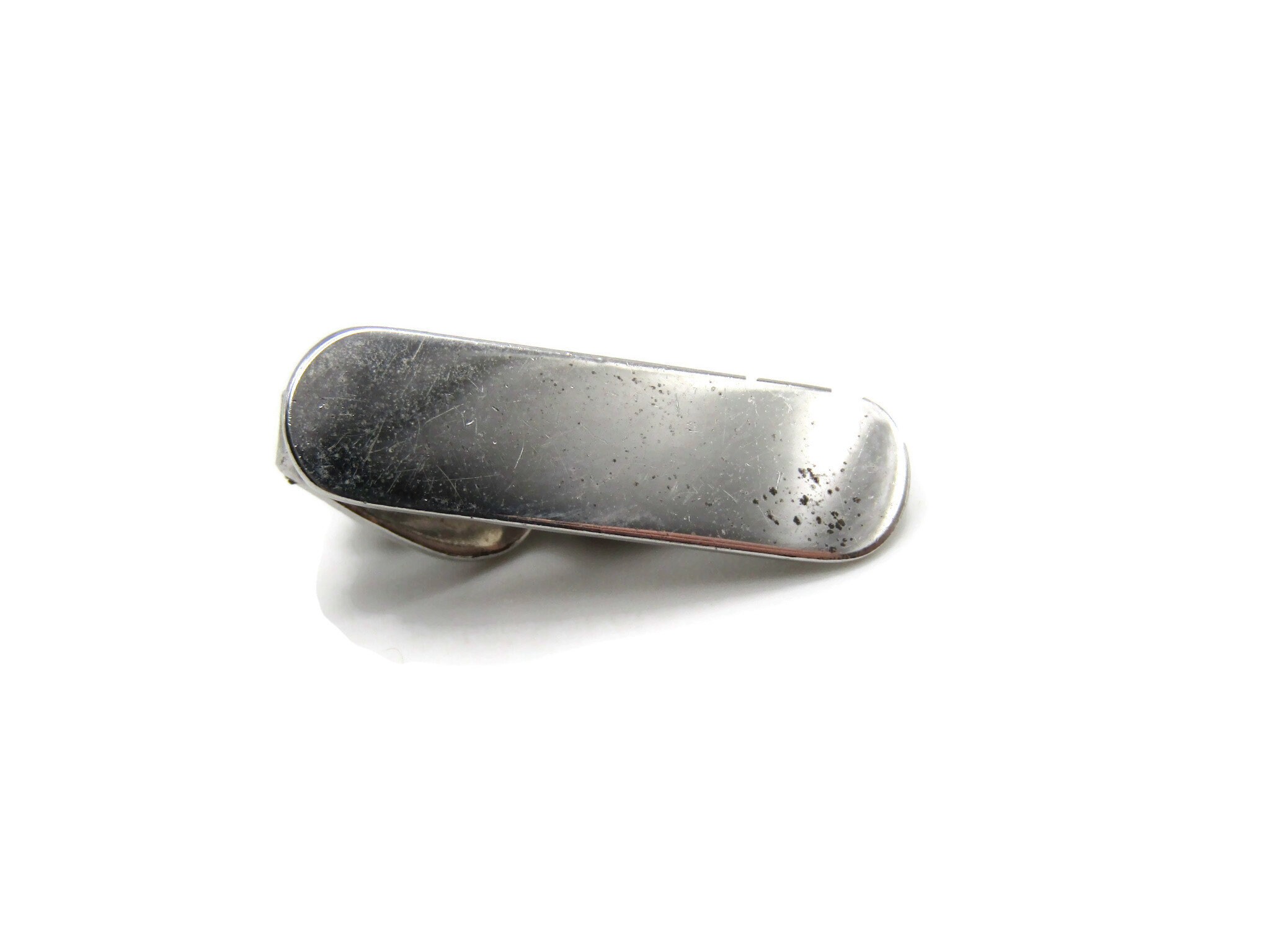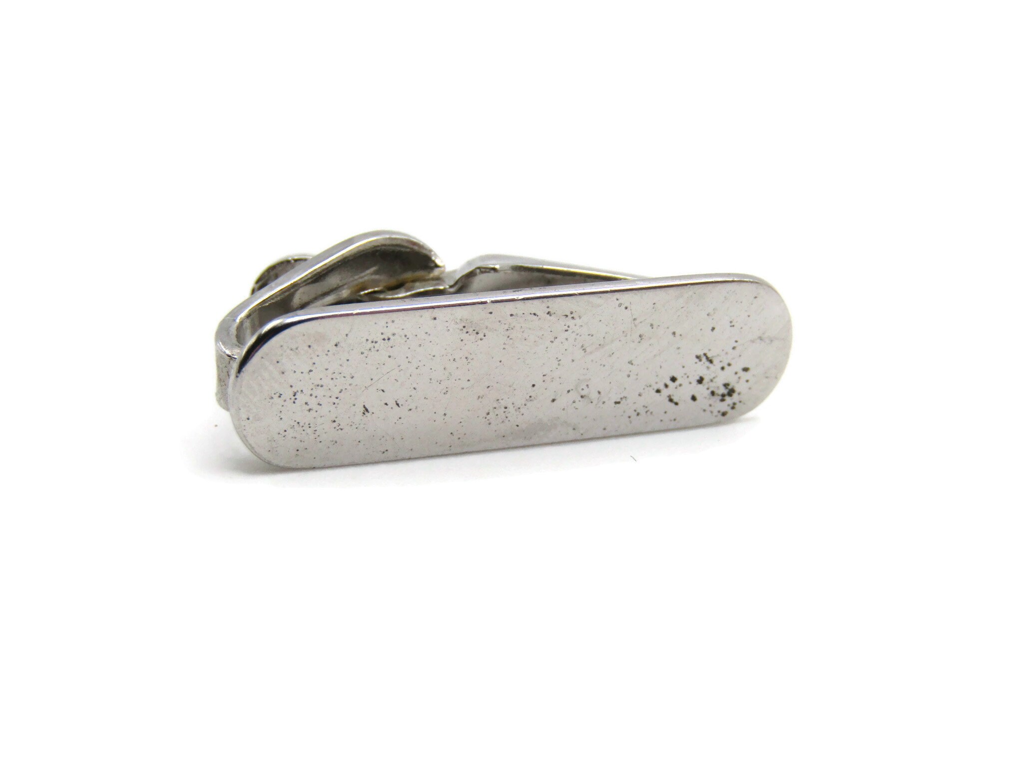 Smooth Finish Rounded Edge Tie Clip Modernist Industrial Silver Tone Tie Bar Men's Jewelry