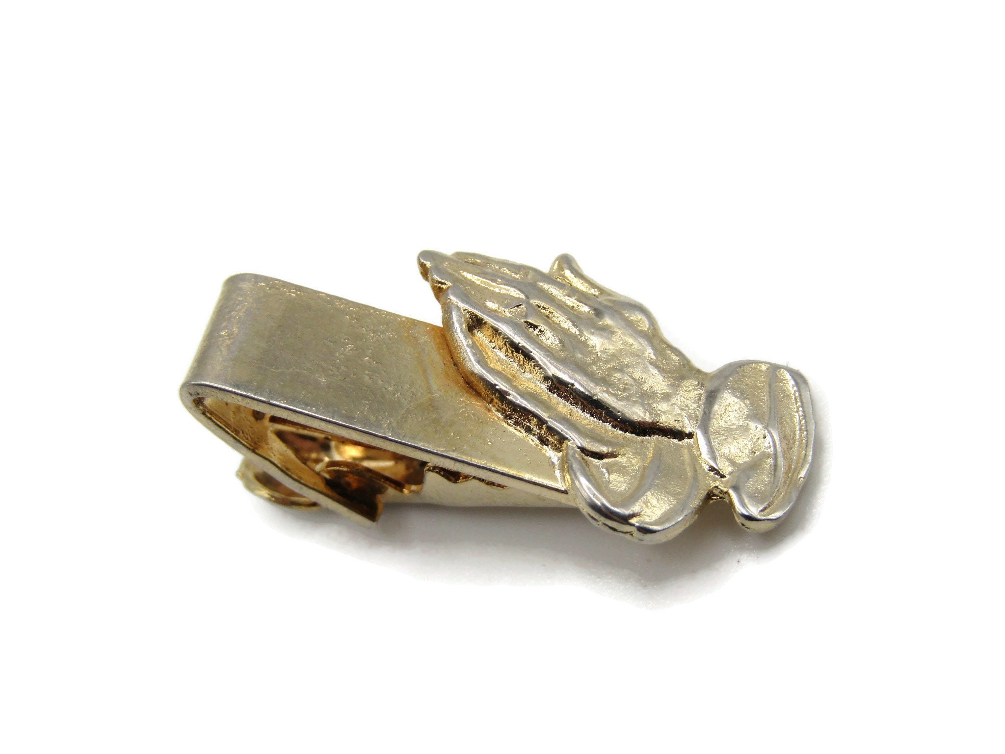 Prayer Hands Faith Religion Gold Tone Tie Clip Tie Bar Men's Jewelry