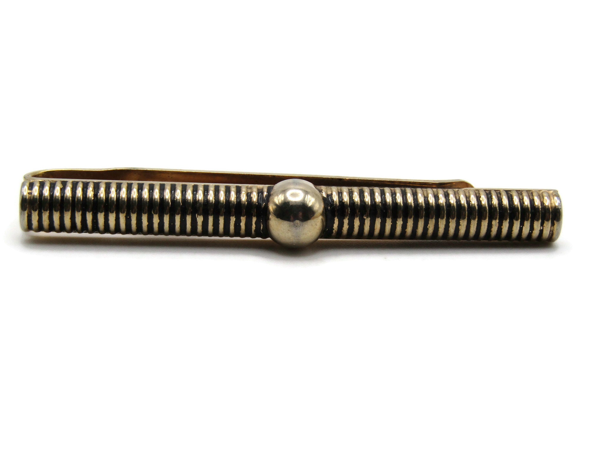 Ball And Spiral Design Tie Bar Modernist Steampunk Gold Tone Tie Clip Men's Jewelry