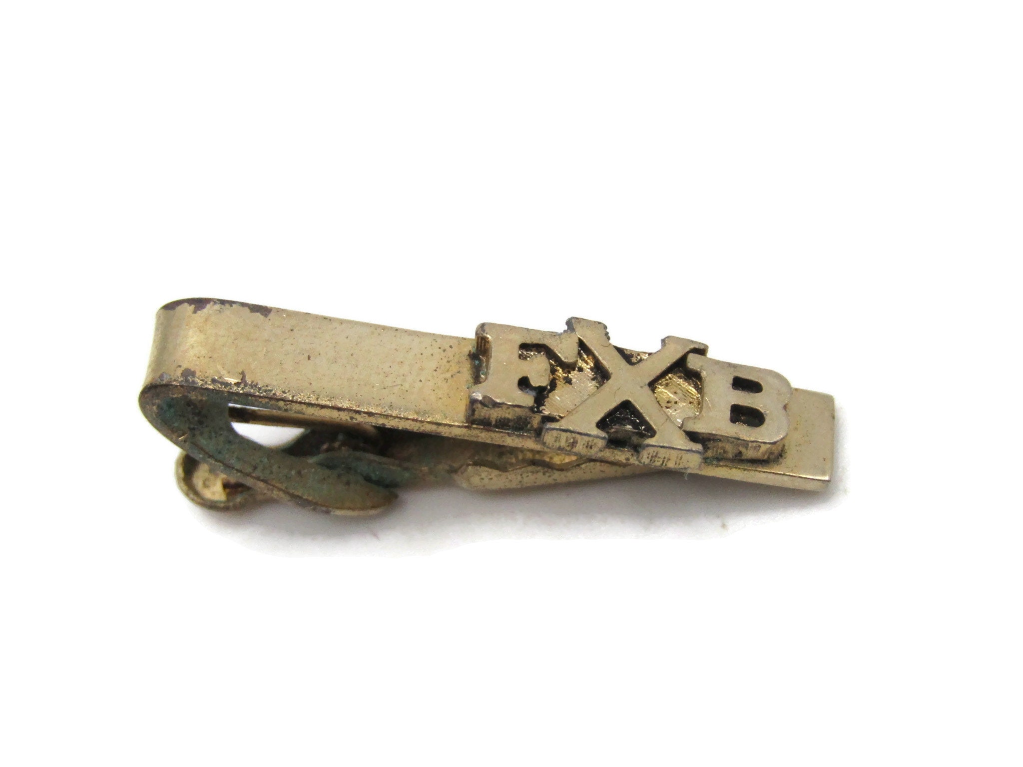 F X B Initial Letters Monogram Tie Clip Gold Tone Tie Bar Men's Jewelry