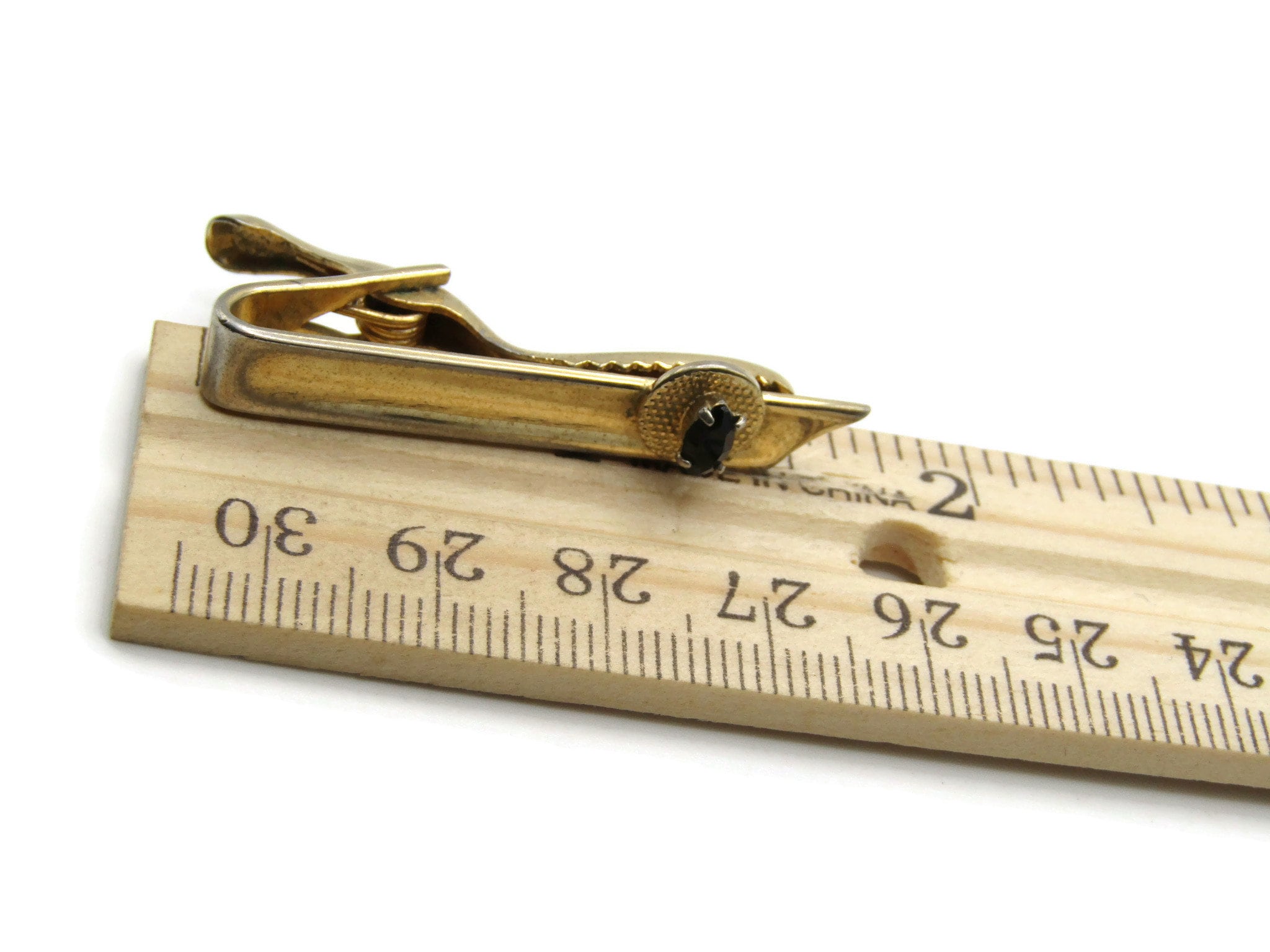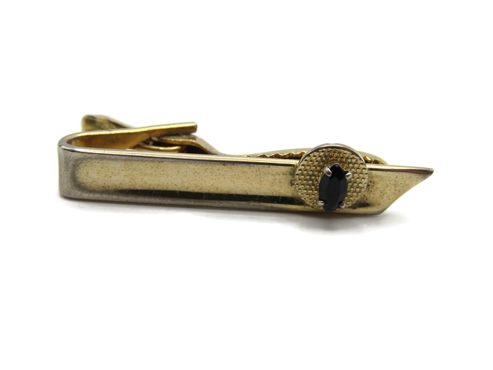 Black Stone Circle Detail Gold Tone Tie Bar Tie Clip Men's Jewelry