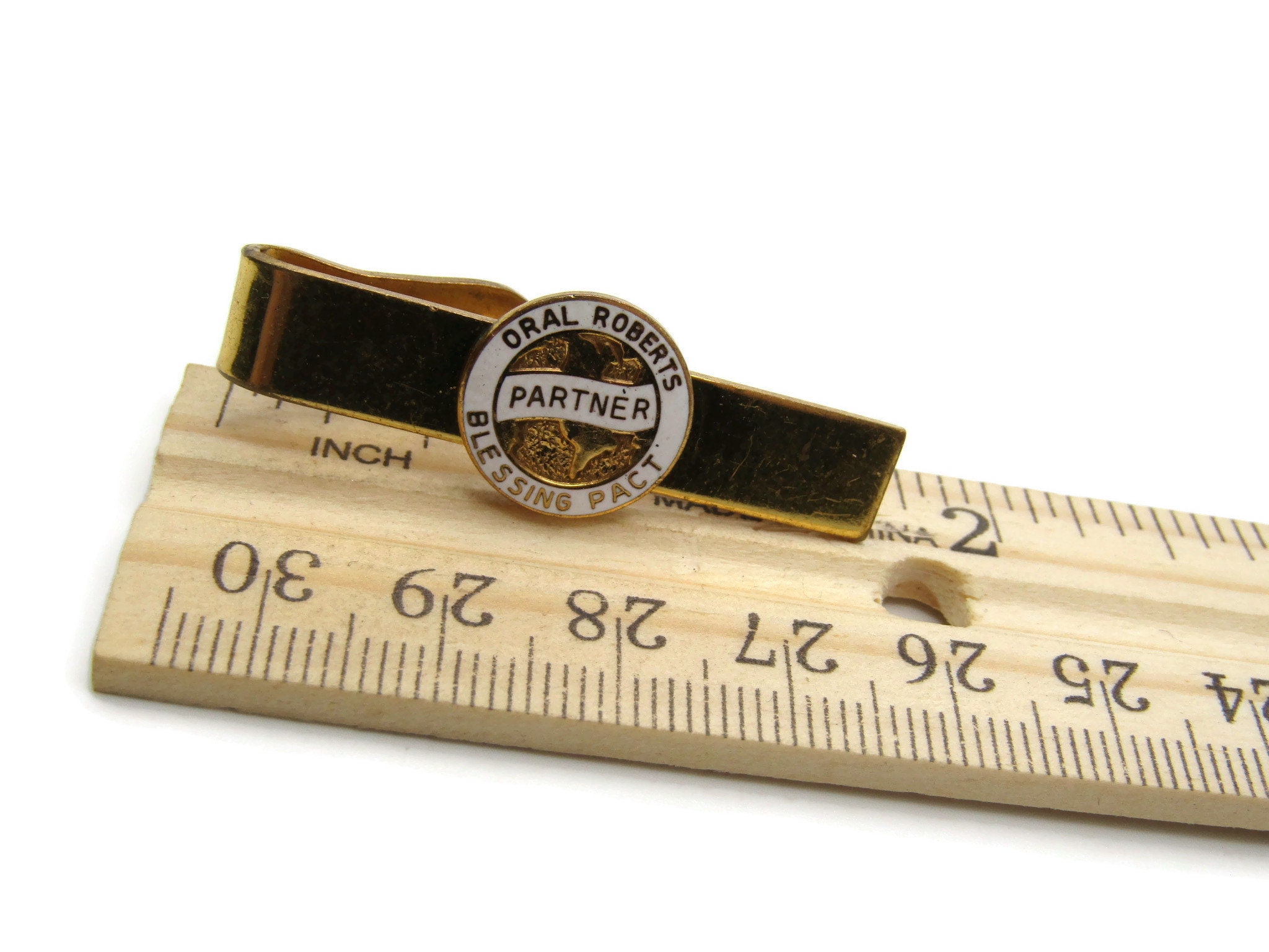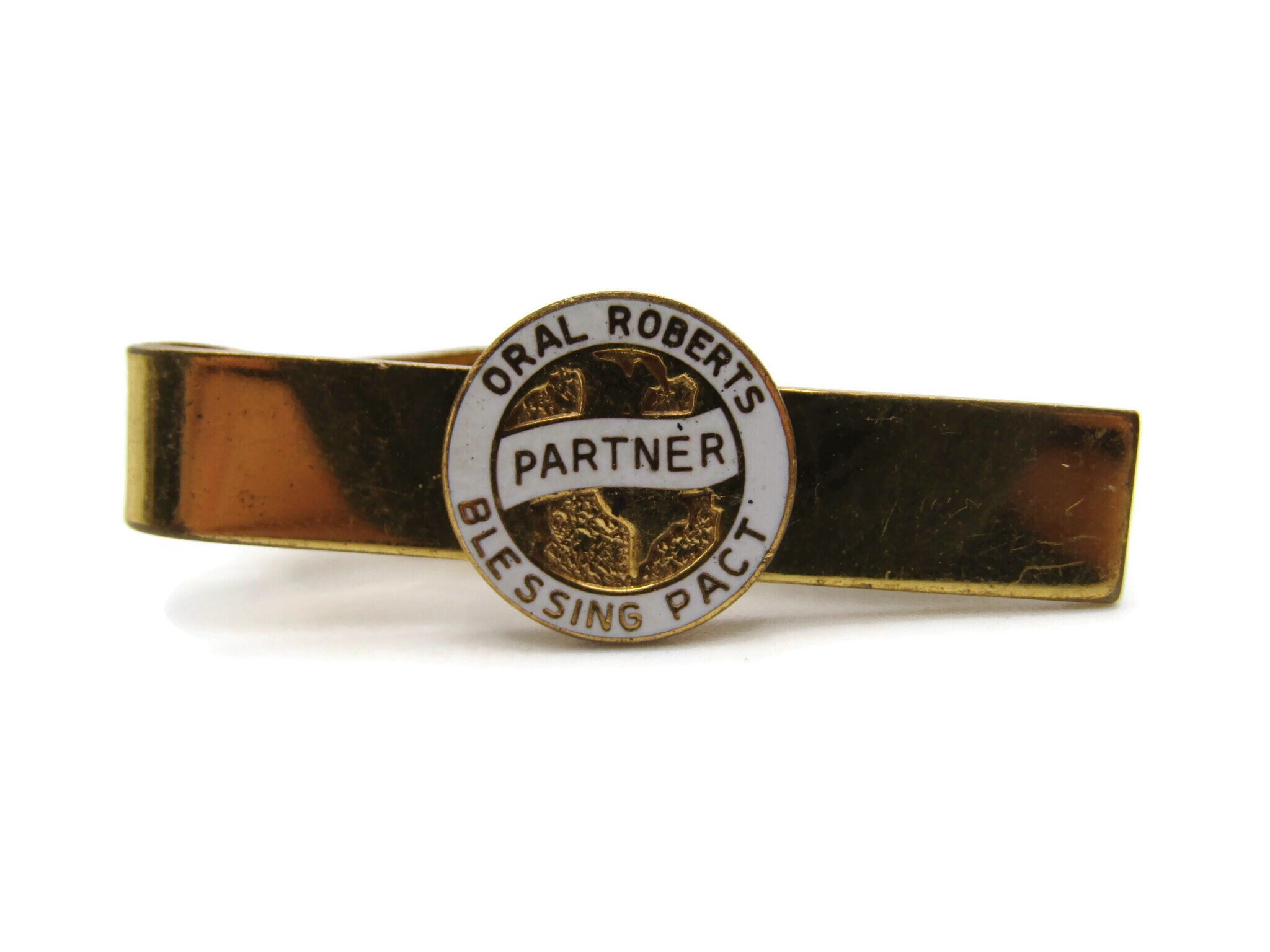 Oral Roberts Tie Clip Blessing Pact Religion Tie Bar Gold Tone Men's Jewelry