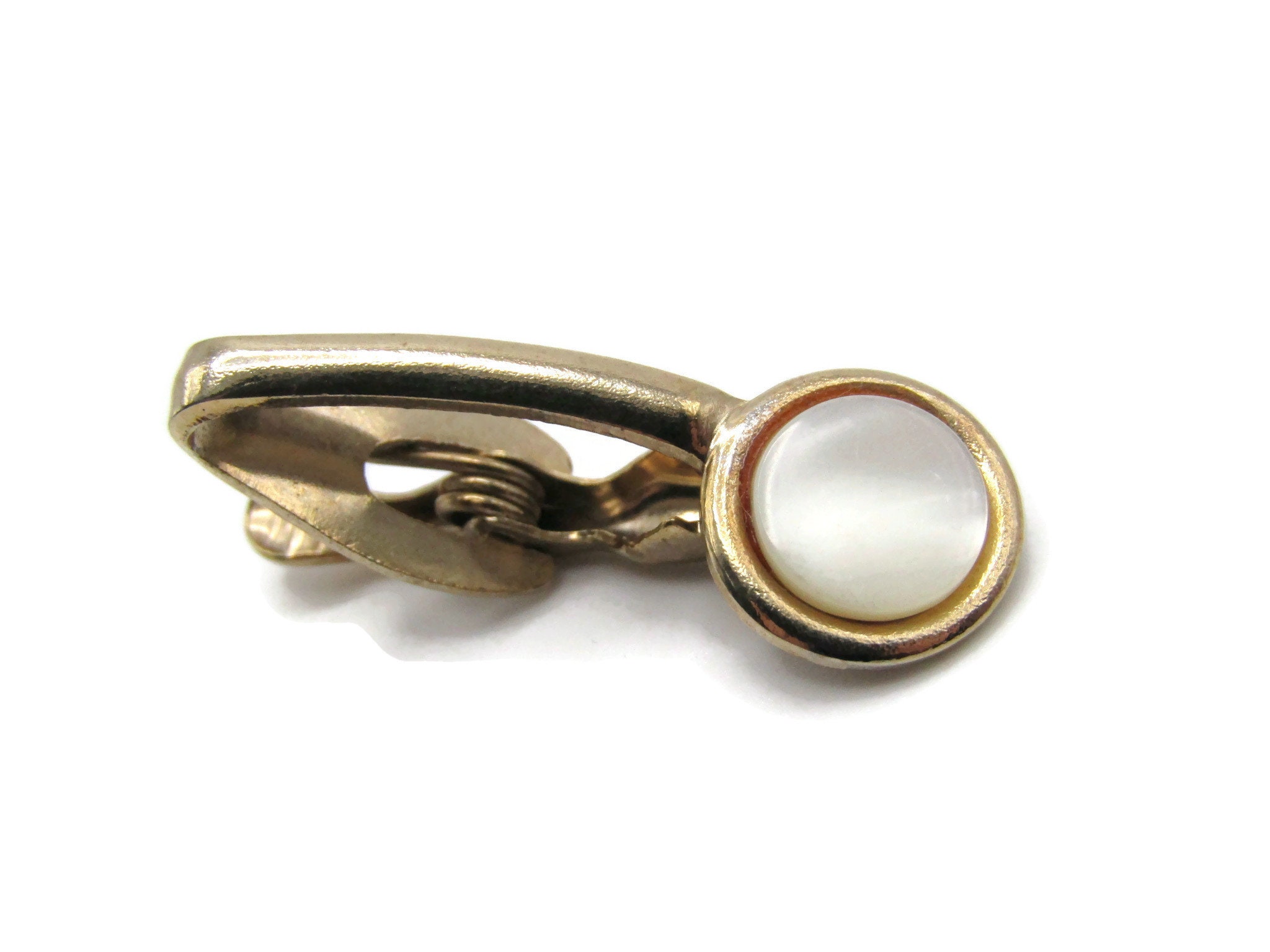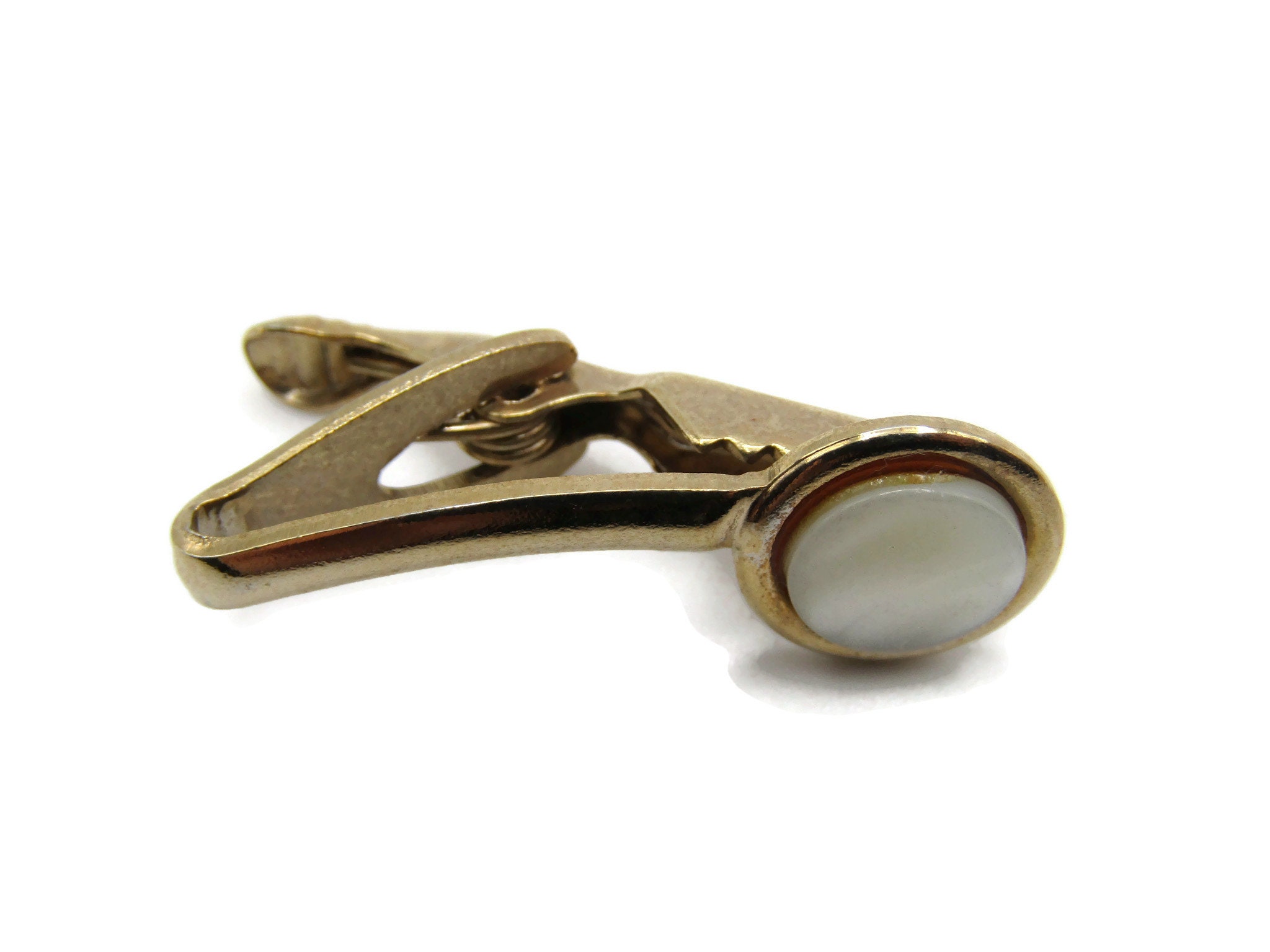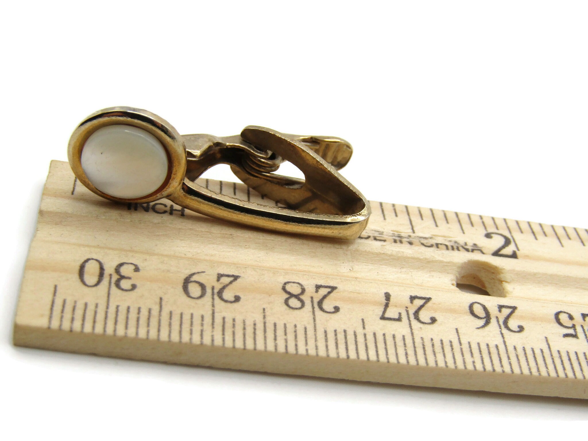 Mother of Pearl Inlay Rounded Shape Gold Tone Tie Bar Tie Clip Men's Jewelry
