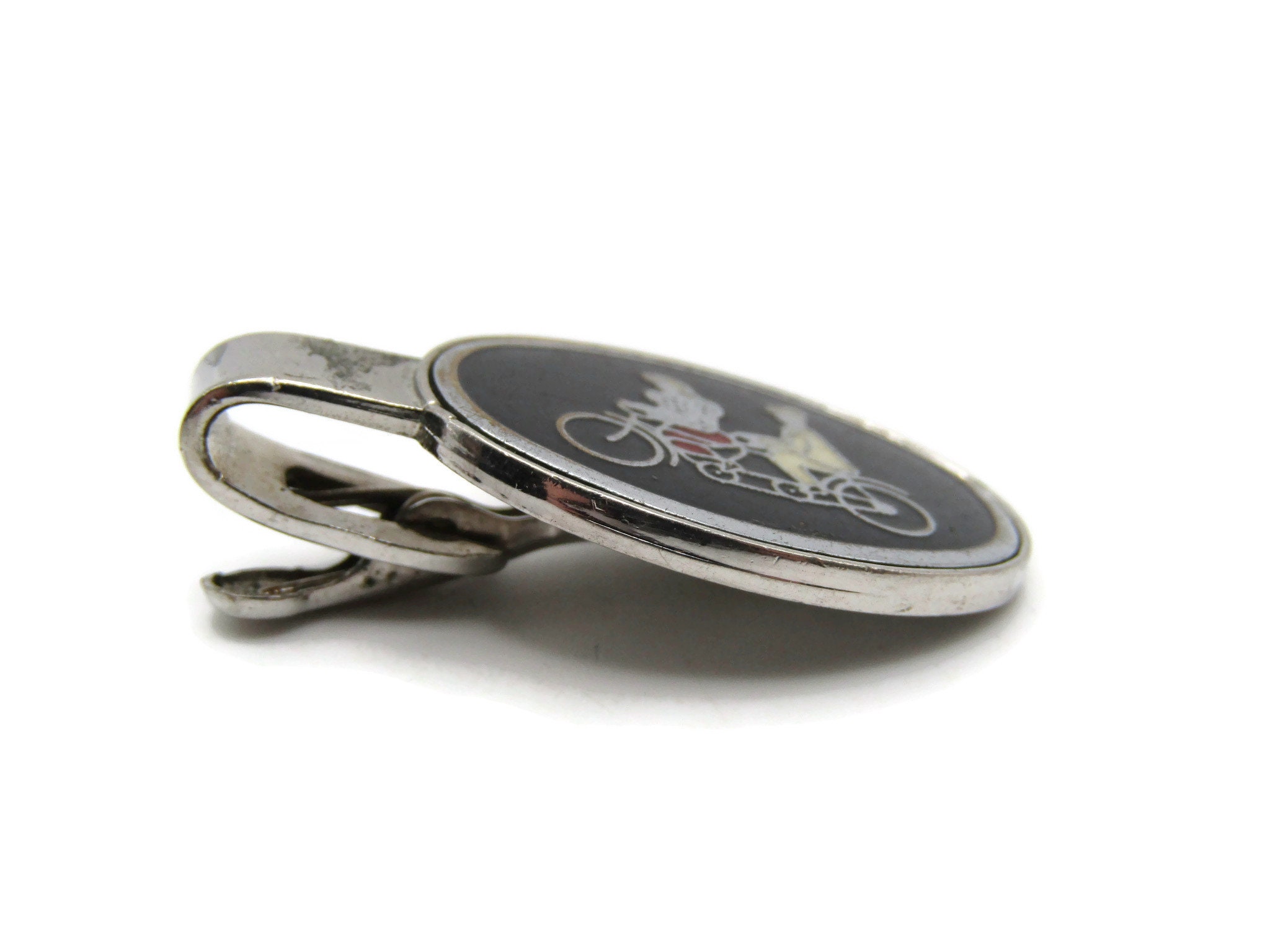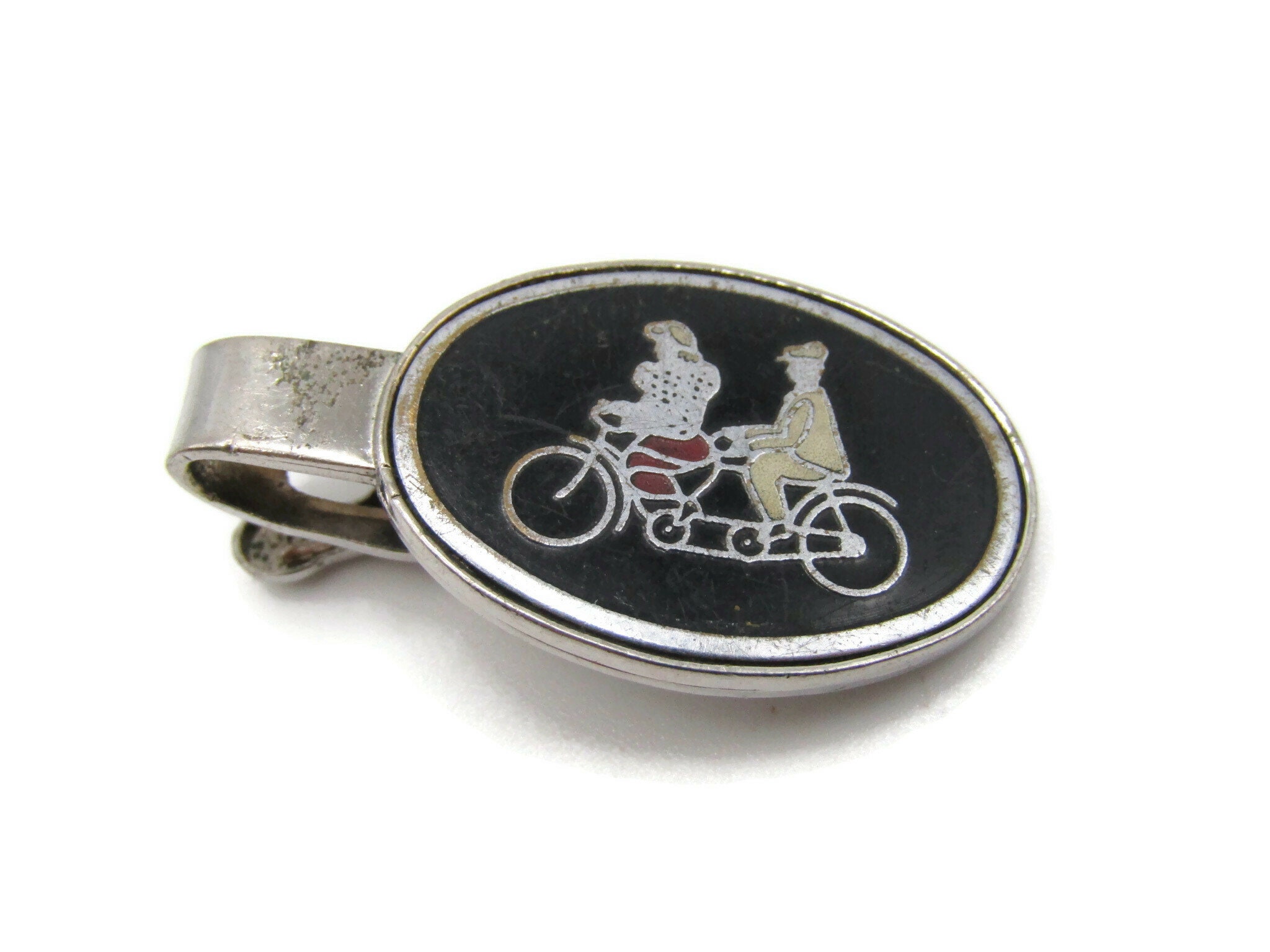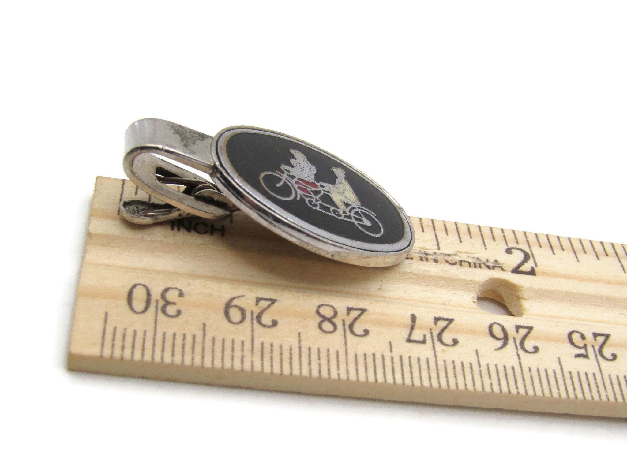Bicycle For 2 Motif Black Stone Inlay Silver Tone Tie Bar Tie Clip Men's Jewerly