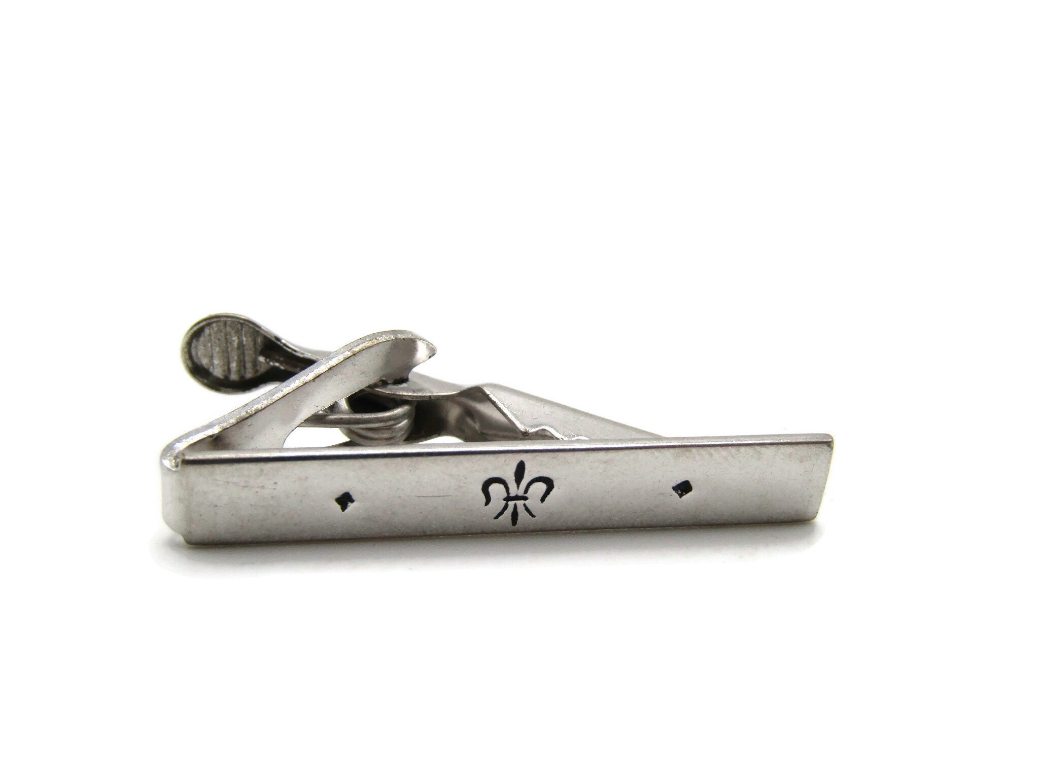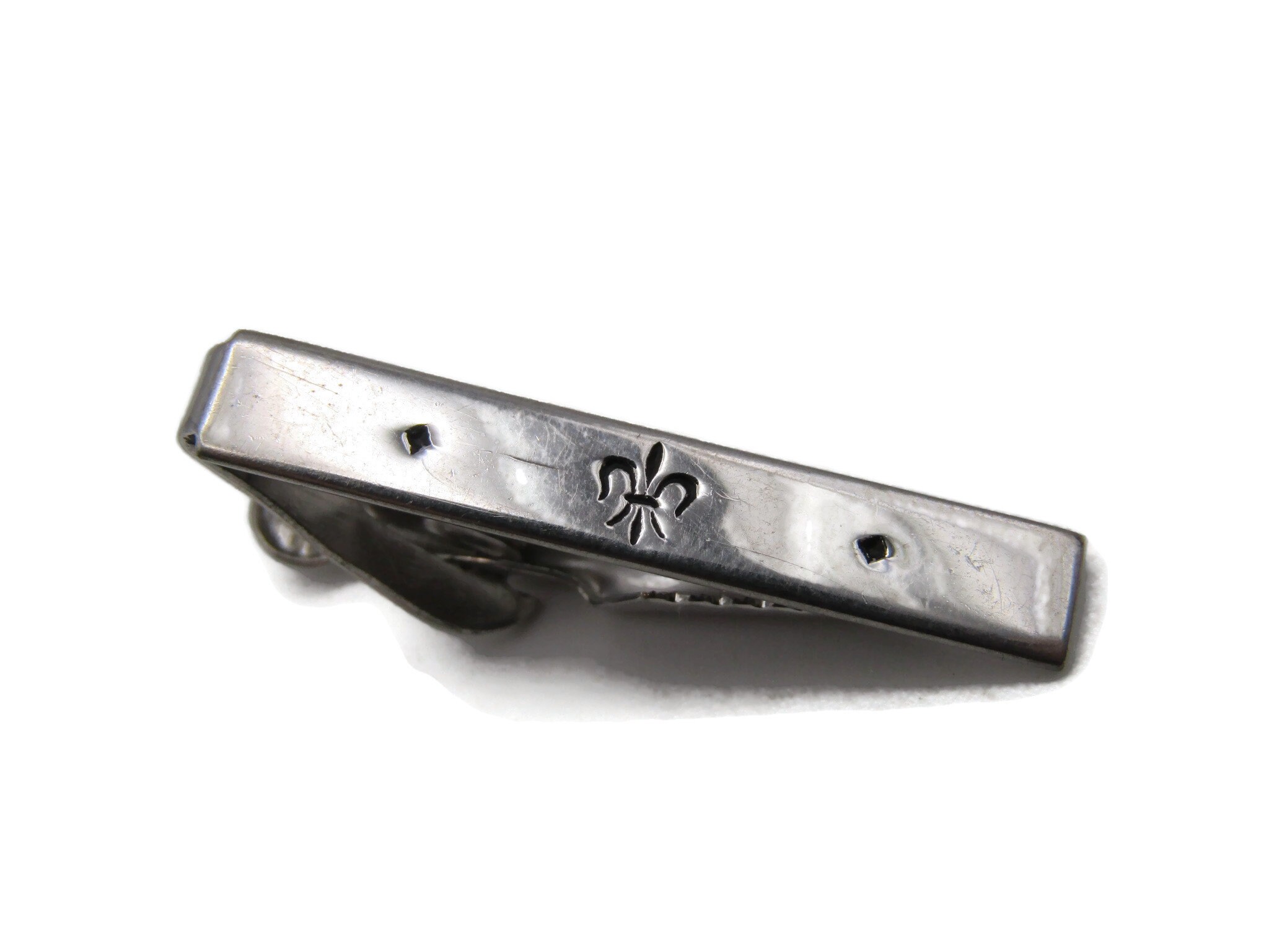 Fleur De Lis Dot Design Smooth Finish Silver Tone Tie Bar Tie Clip Men's Jewelry