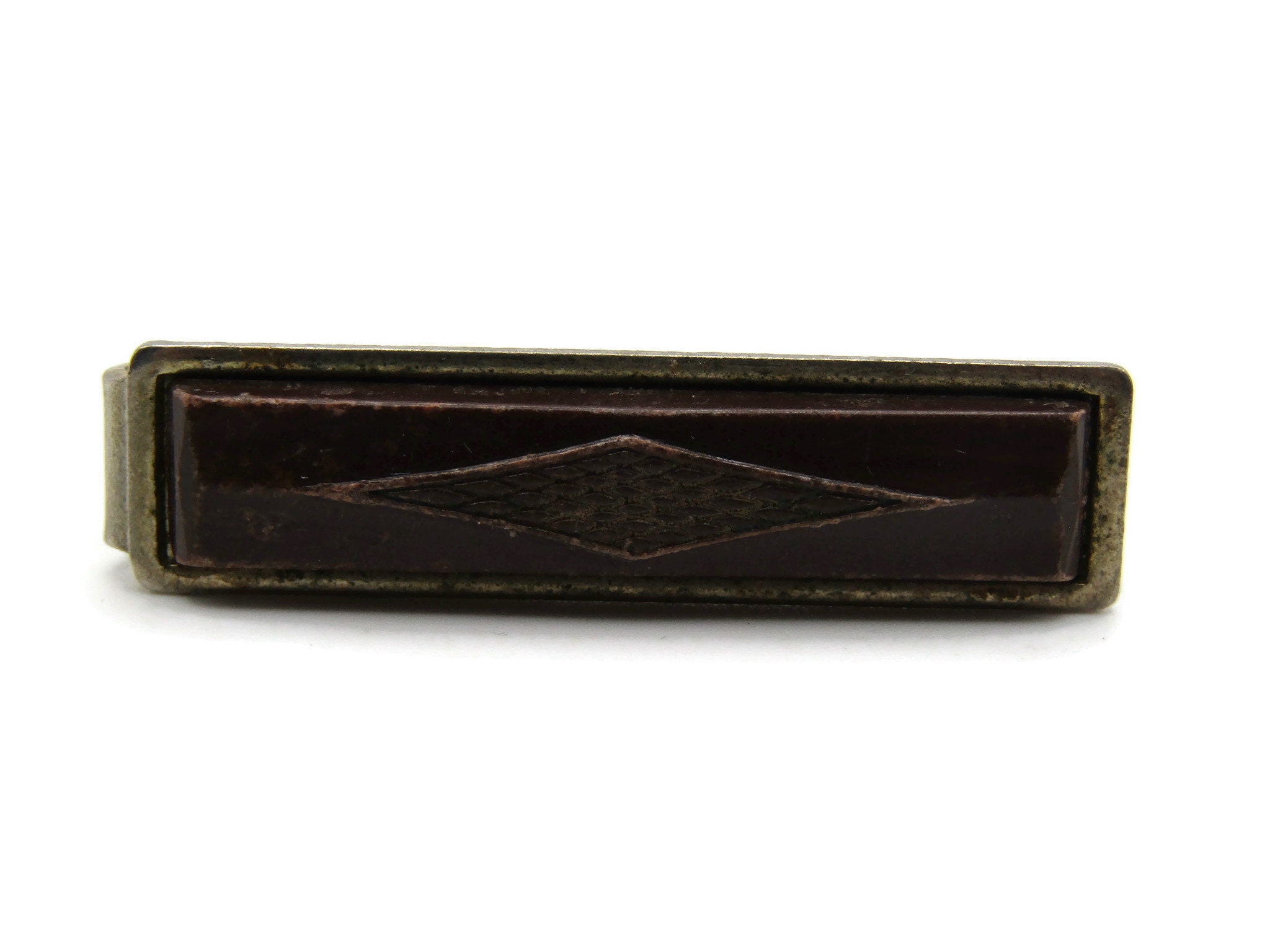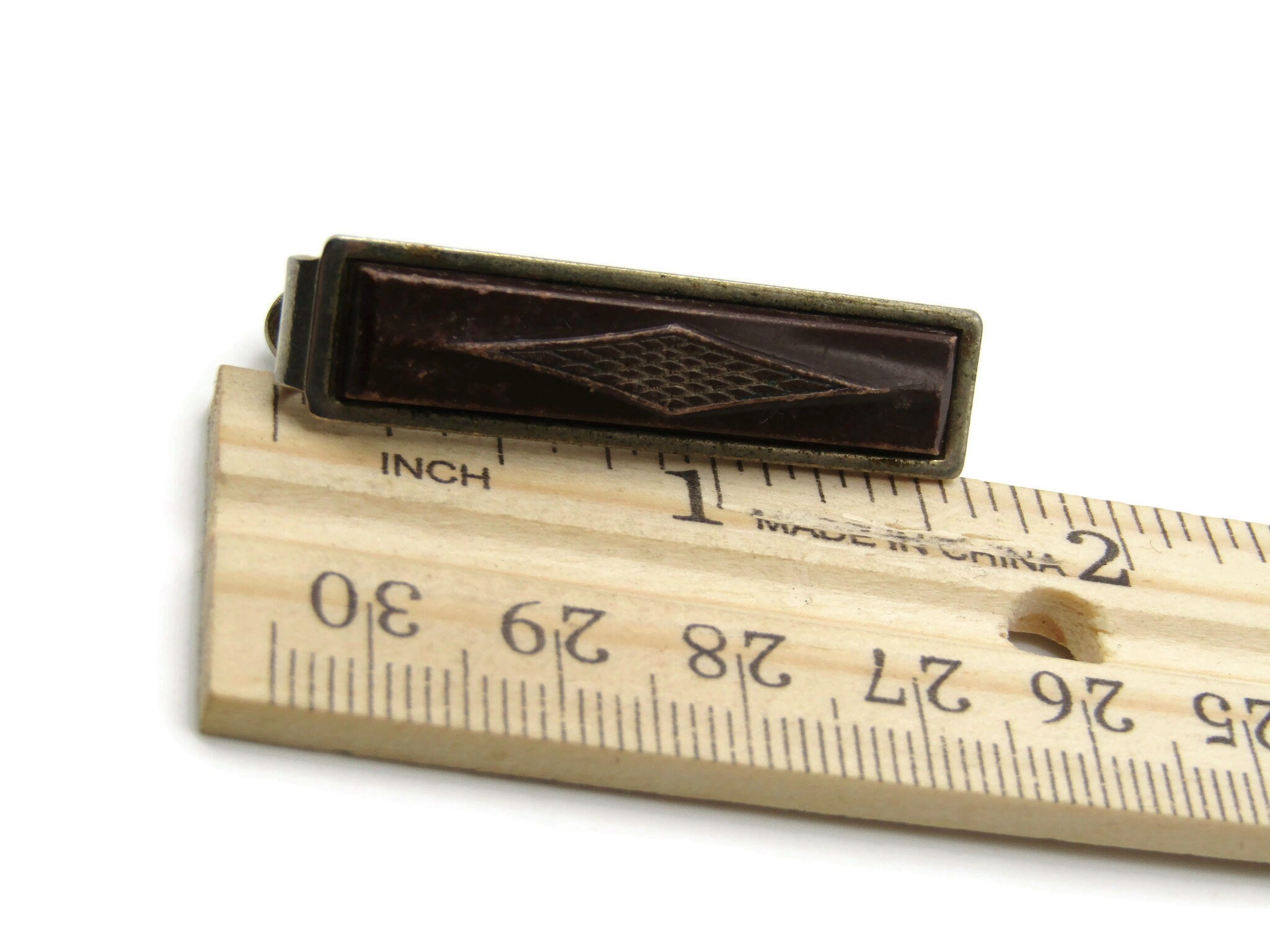 Brown Stone Inlay Diamond Pattern Gold Tone Tie Bar Tie Clip Men's Jewelry