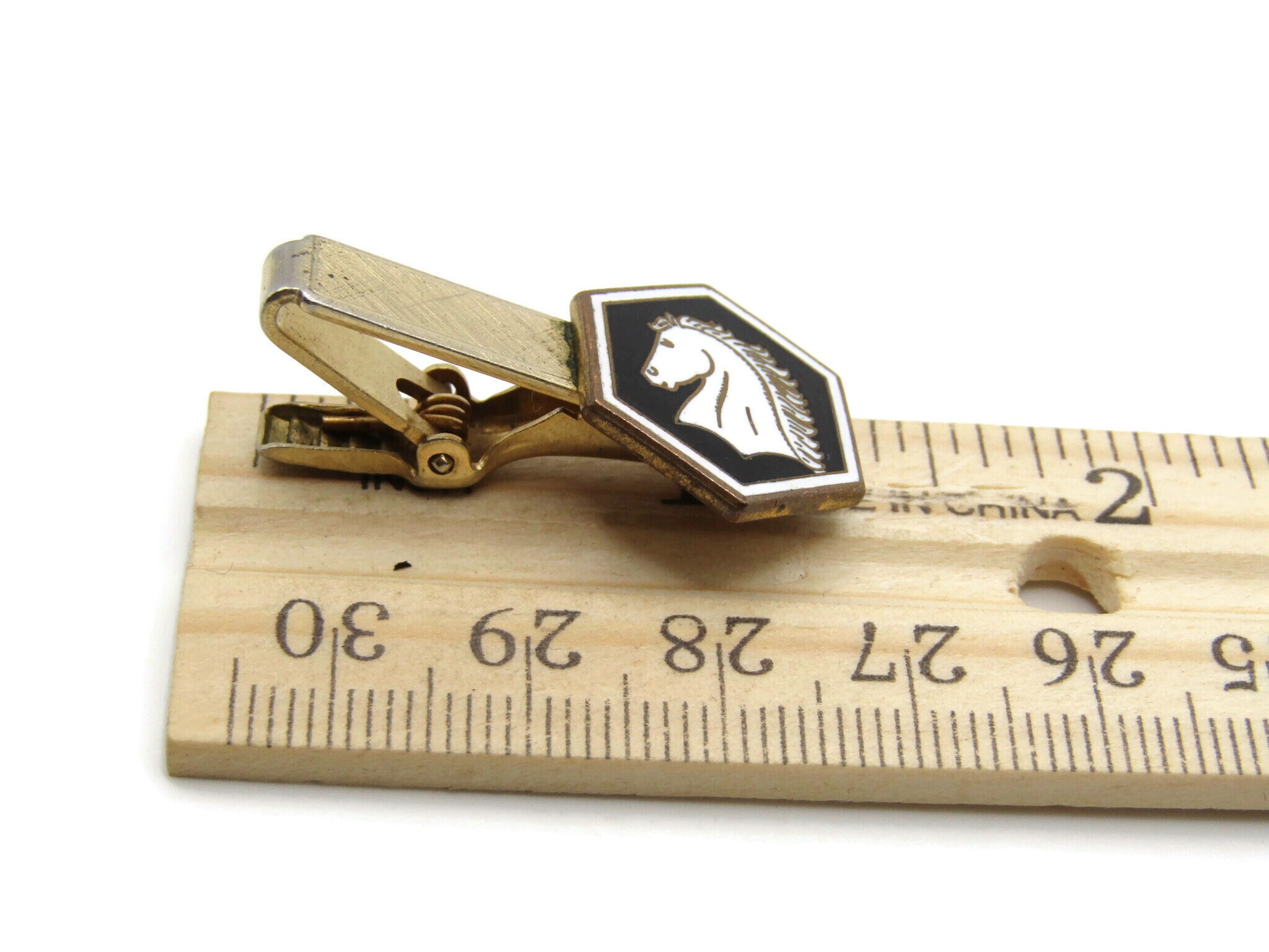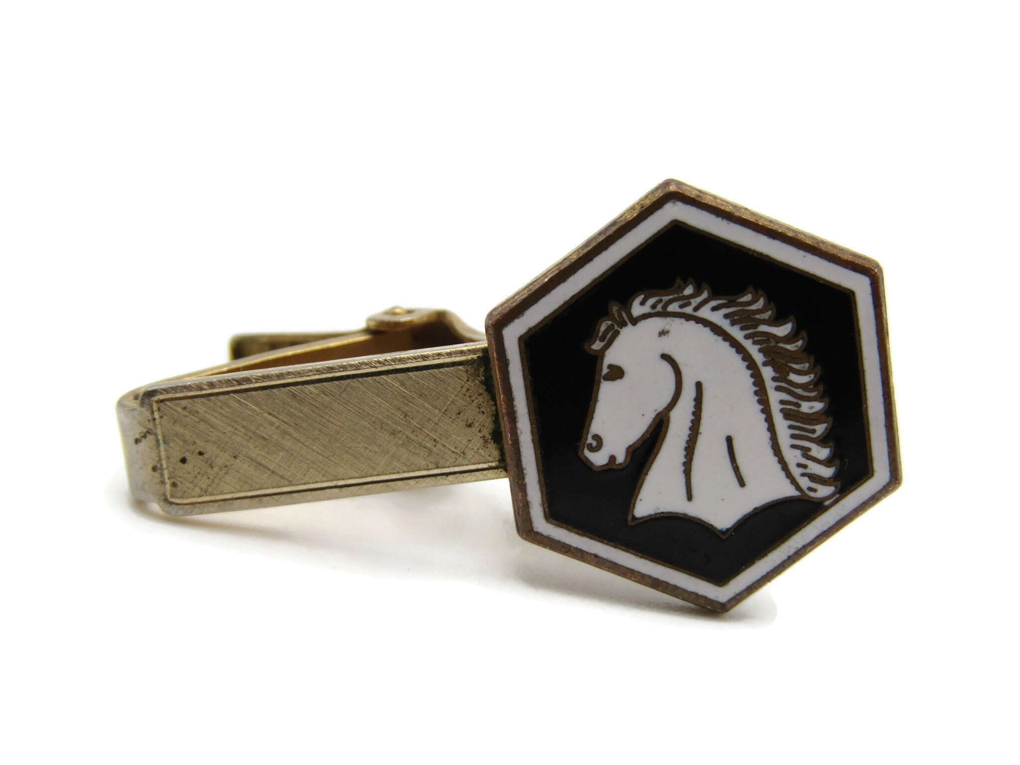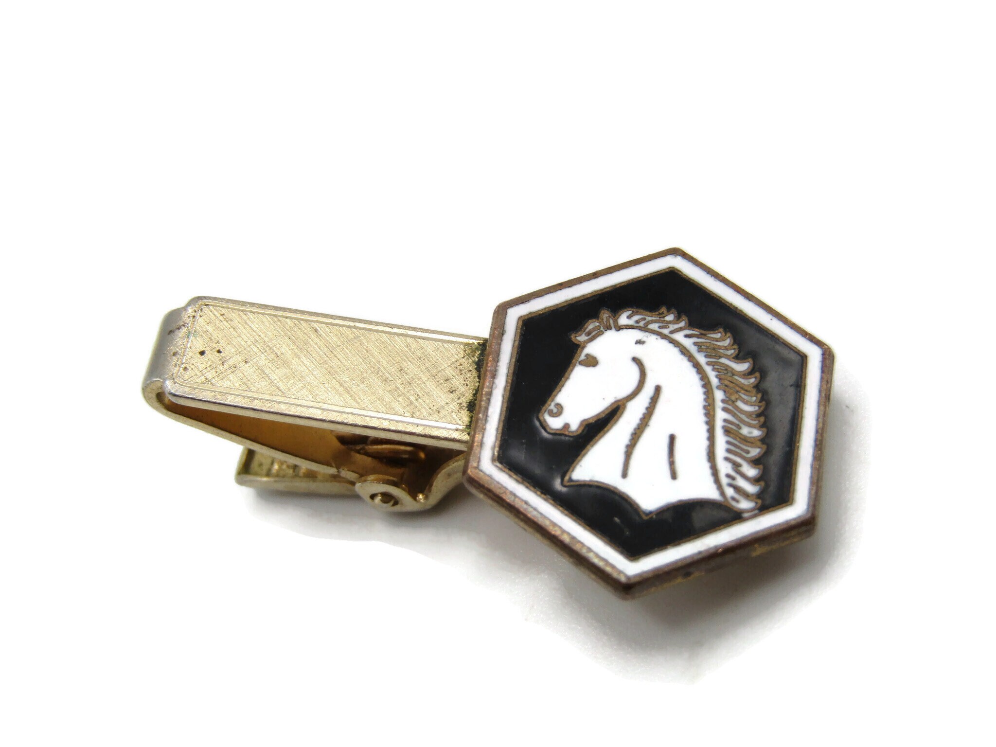 Horse Hear Profile Black White Brushed Finish Gold Tone Tie Bar Tie Clip Men's Jewelry
