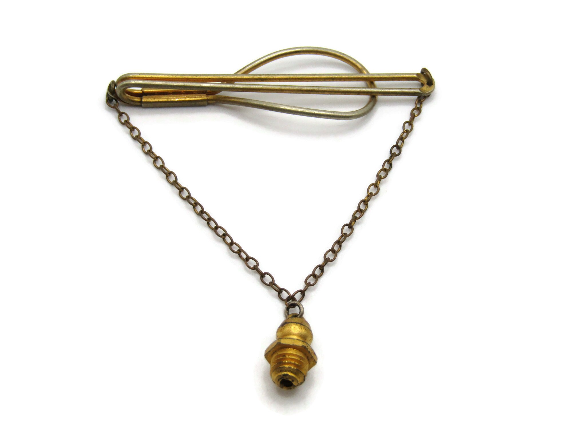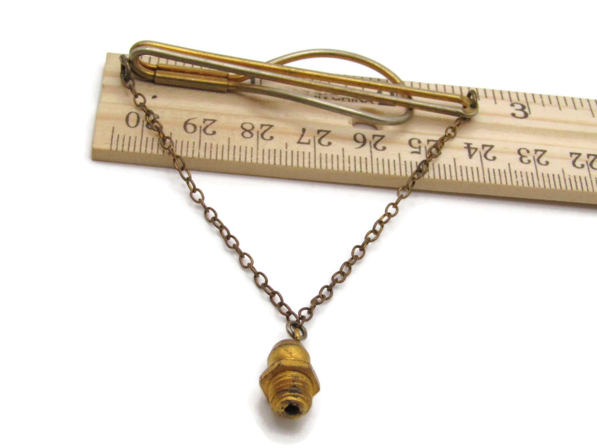 Gold Tone Open Body Tie Chain Screw Charm Industrial Steampunk Tie Clip Tie Bar Men's Jewelry