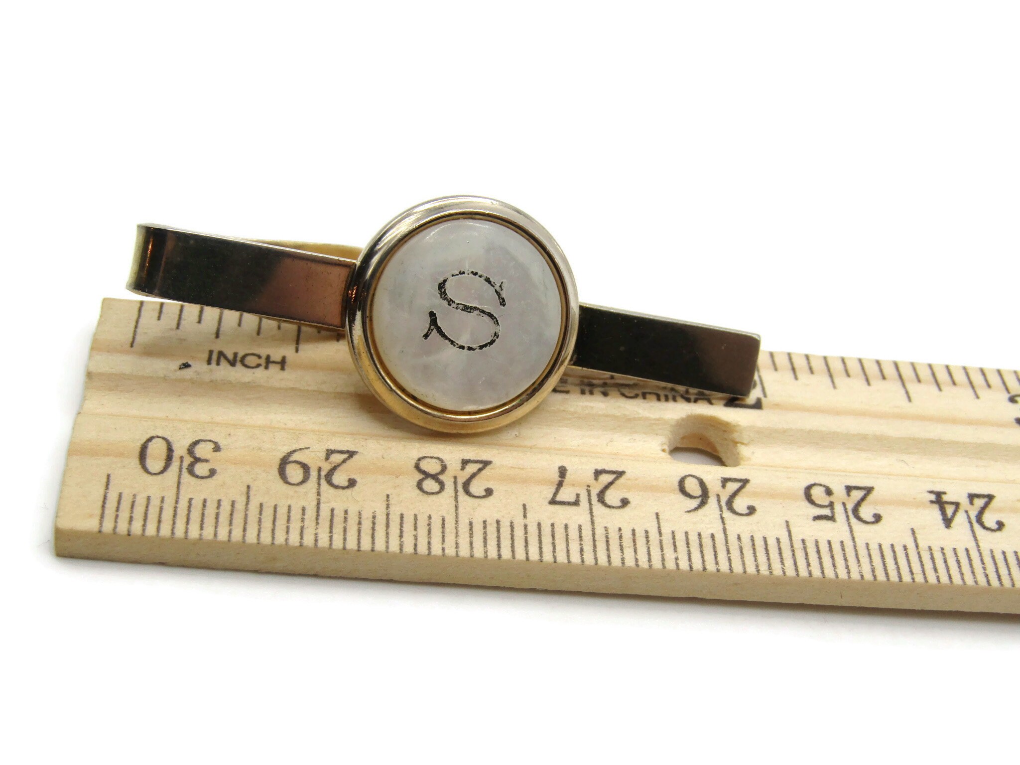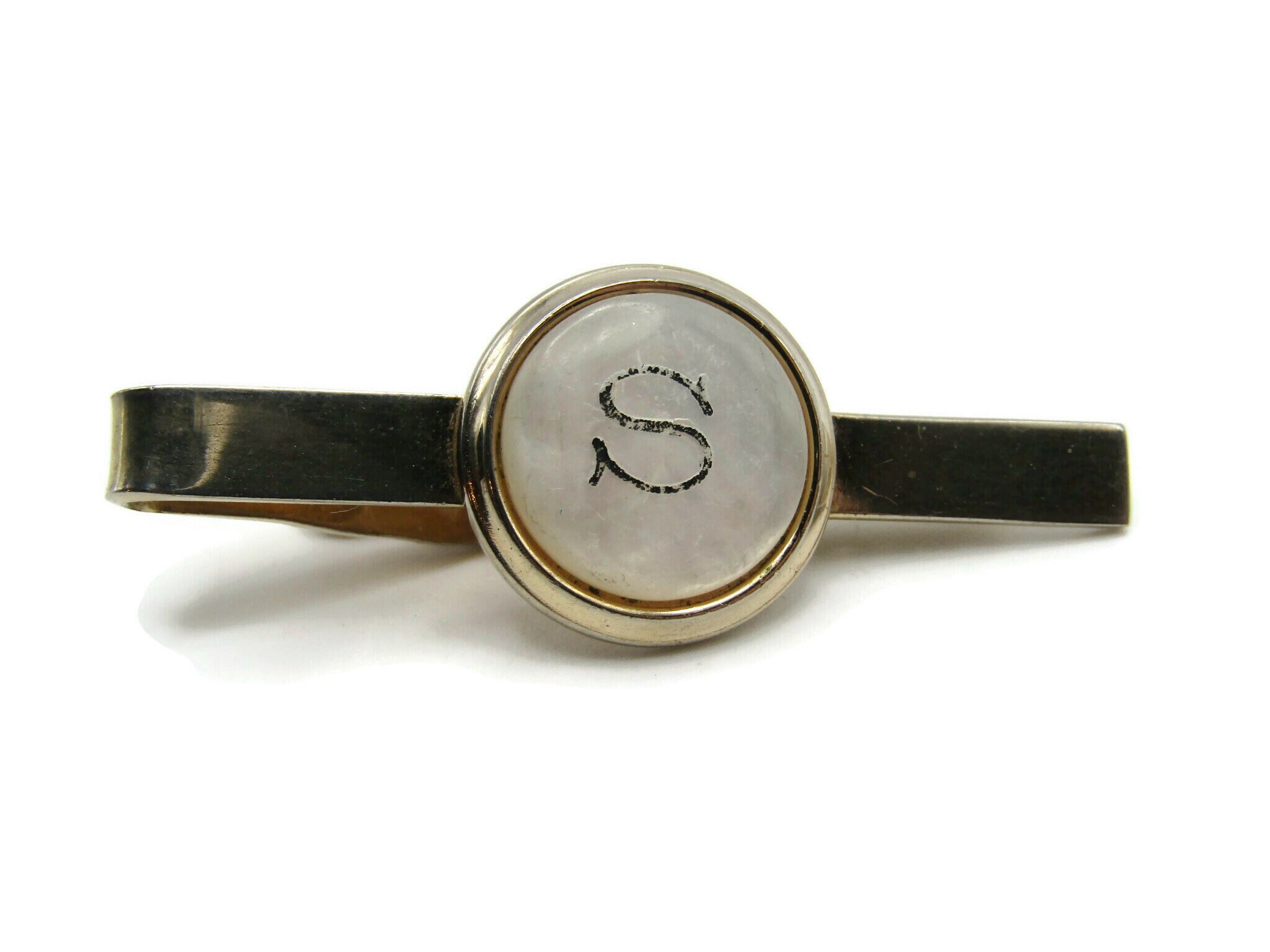 S Initial Letter Monogram Mother of Pearl Inlay Silver Tone Tie Clip Tie Bar Men's Jewelry