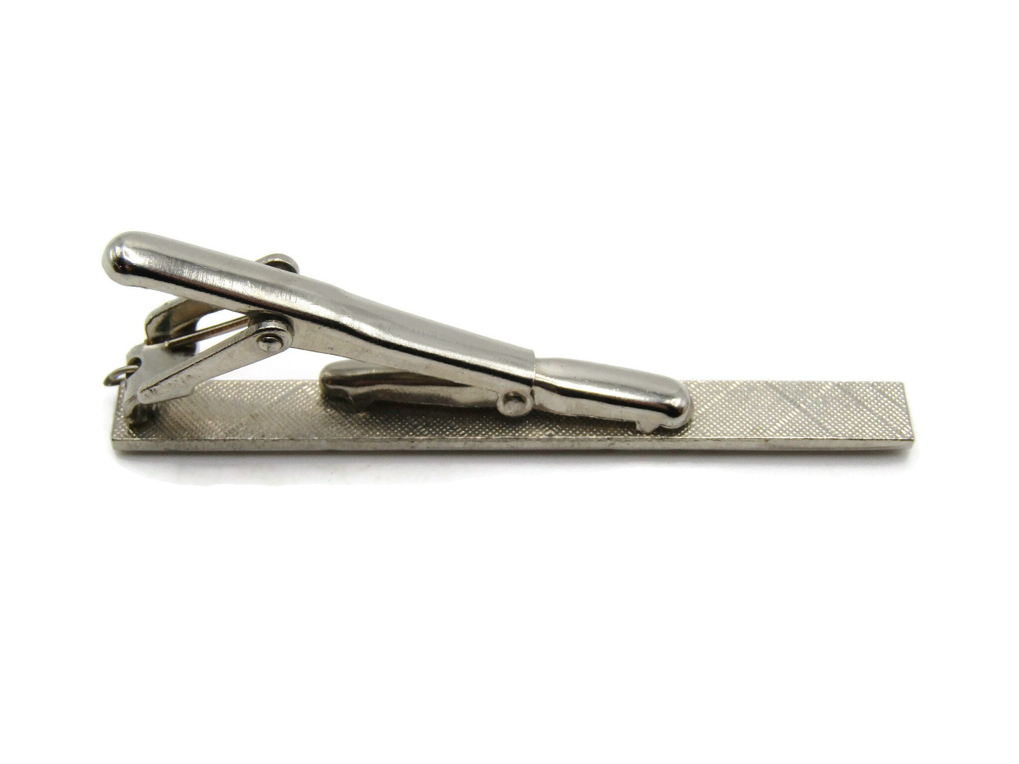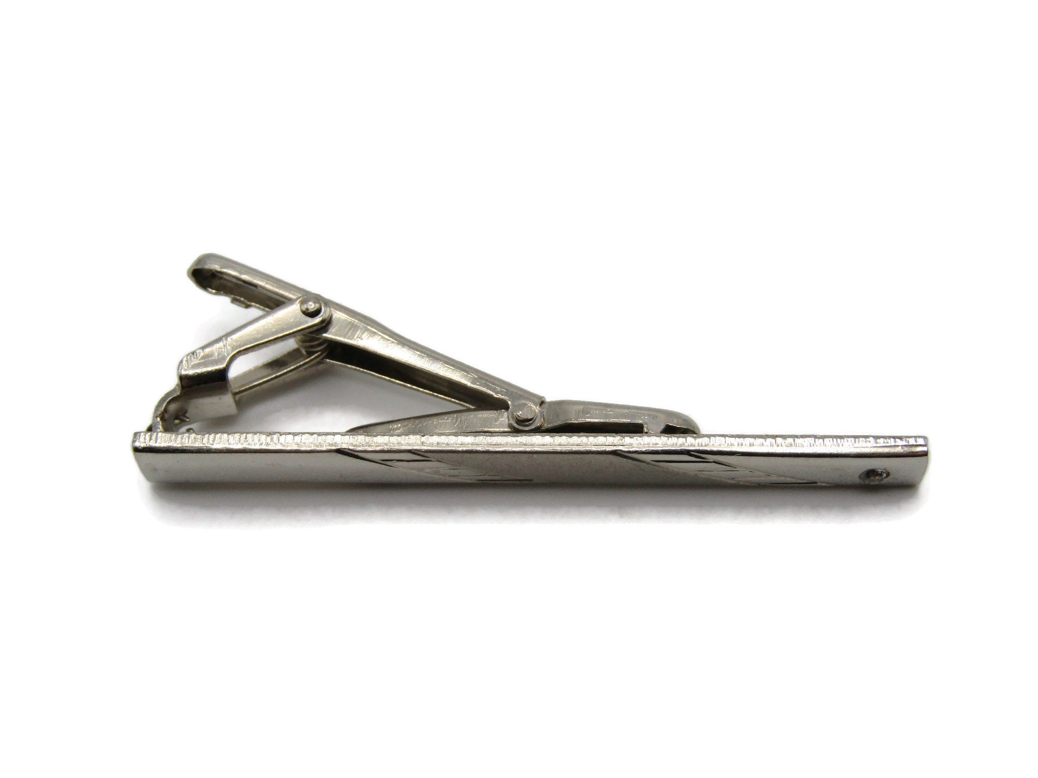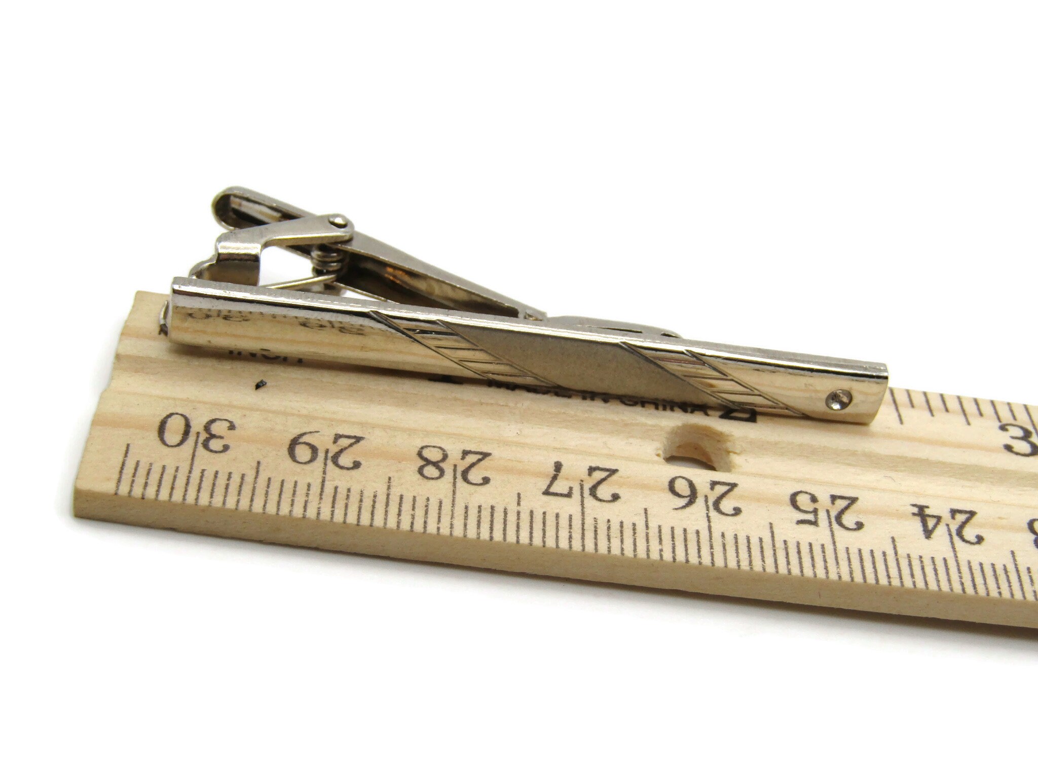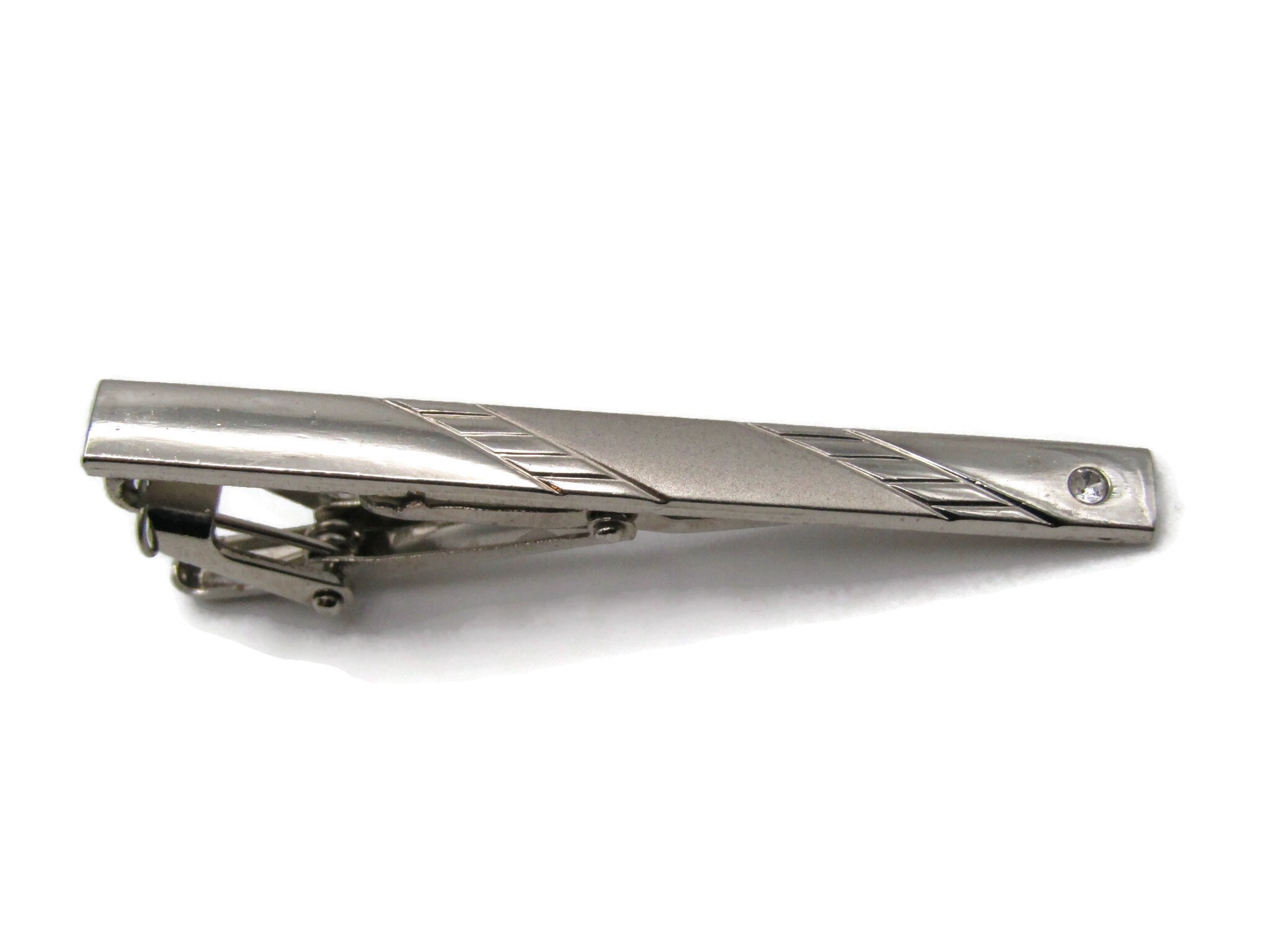 Rhinestone Inlay Diagonal Etched Lines Silver Tone Tie Clip Tie Bar Men's Jewelry