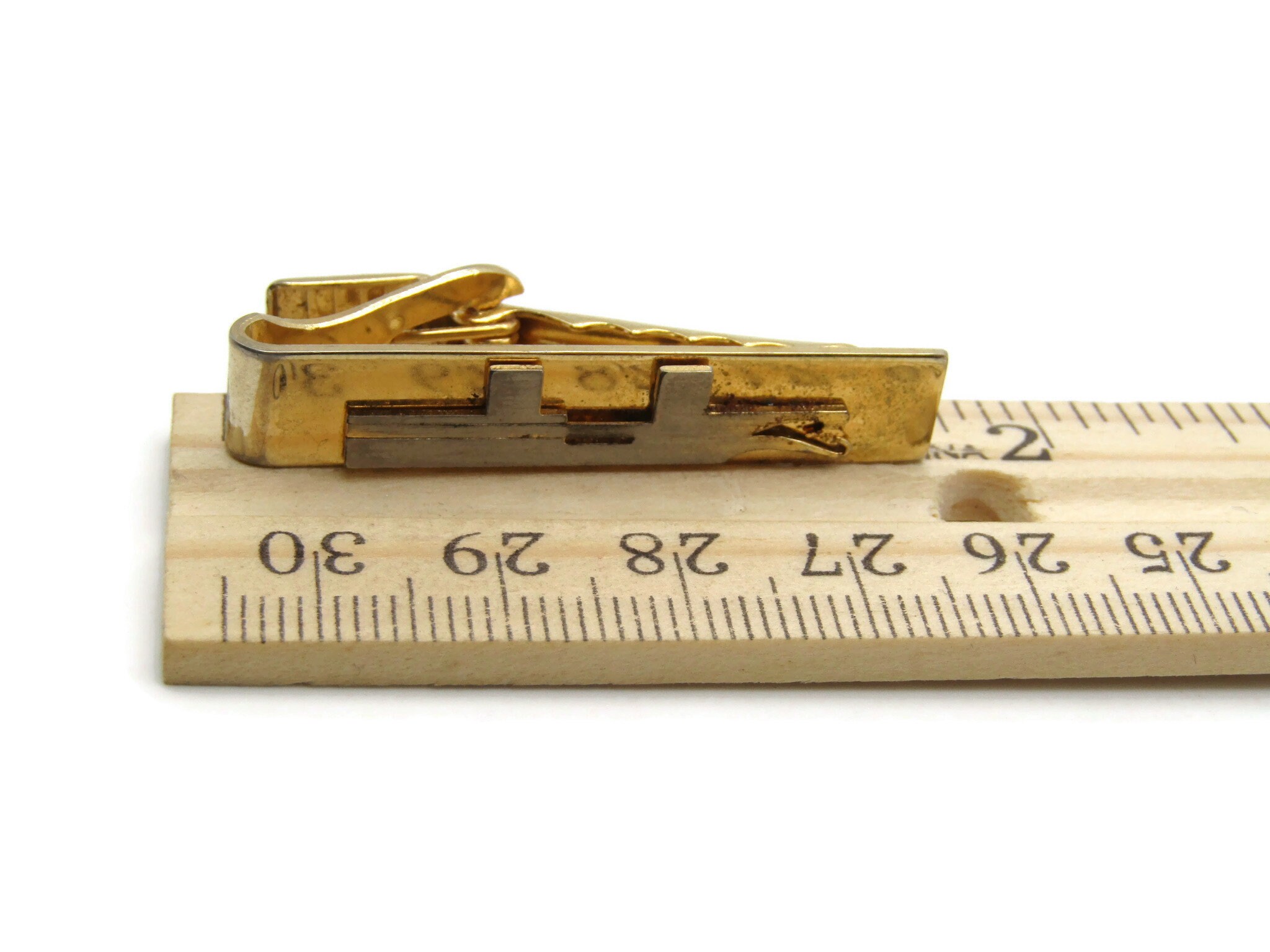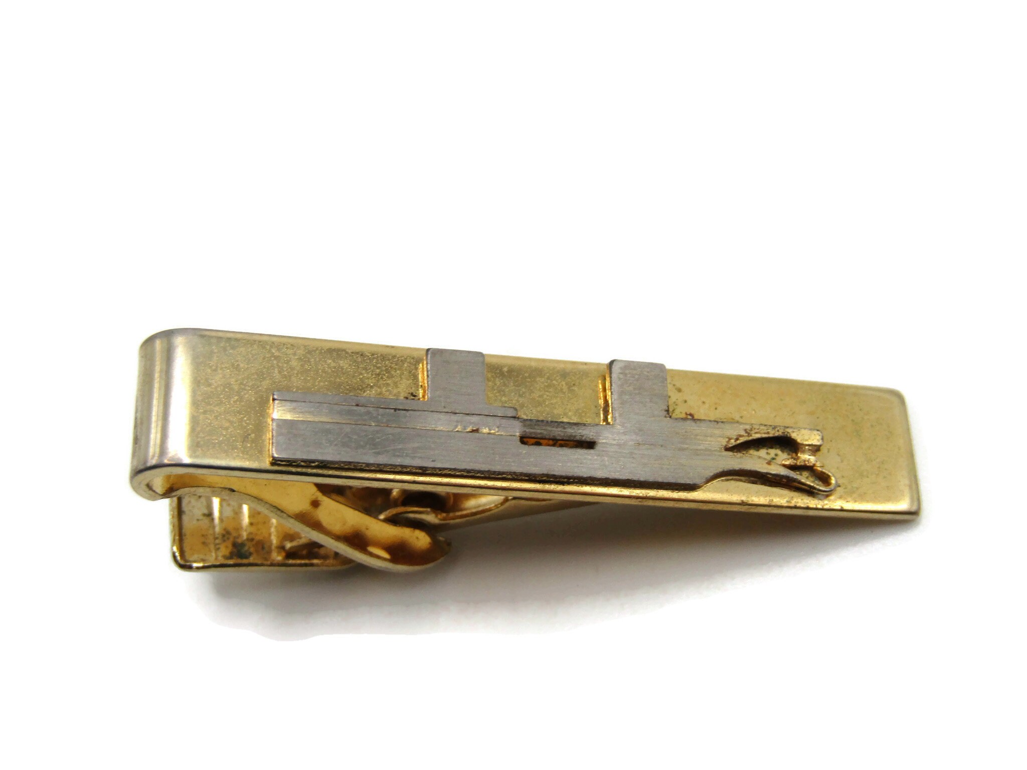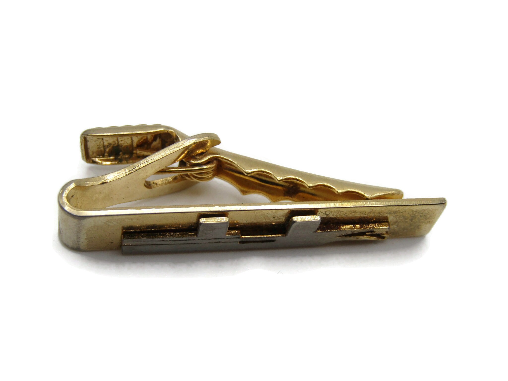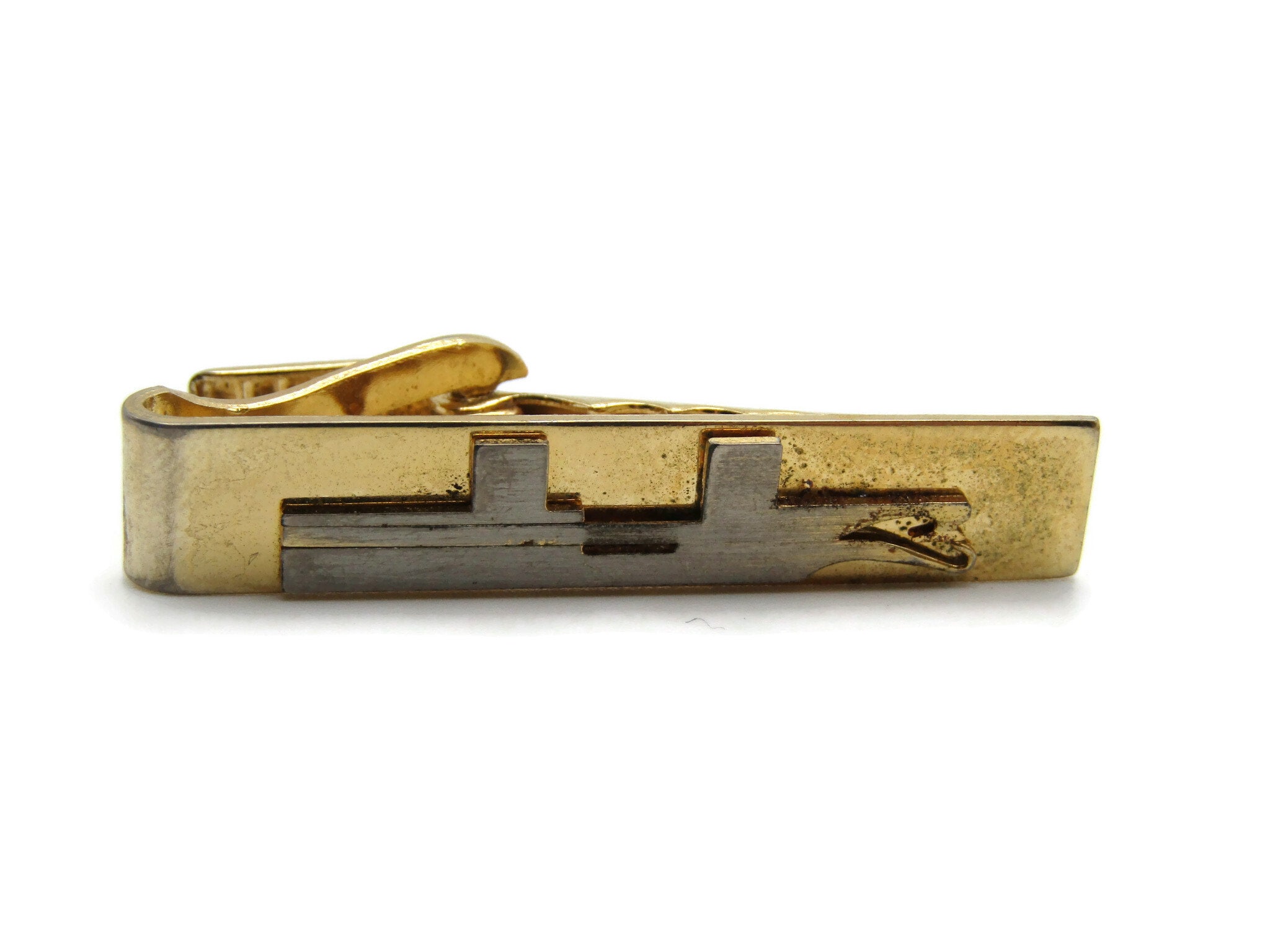 Abstract Metal Design Silver and Gold Tone Tie Bar Tie Clip Men's Jewelry