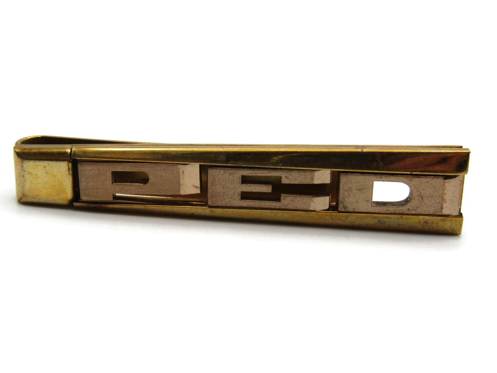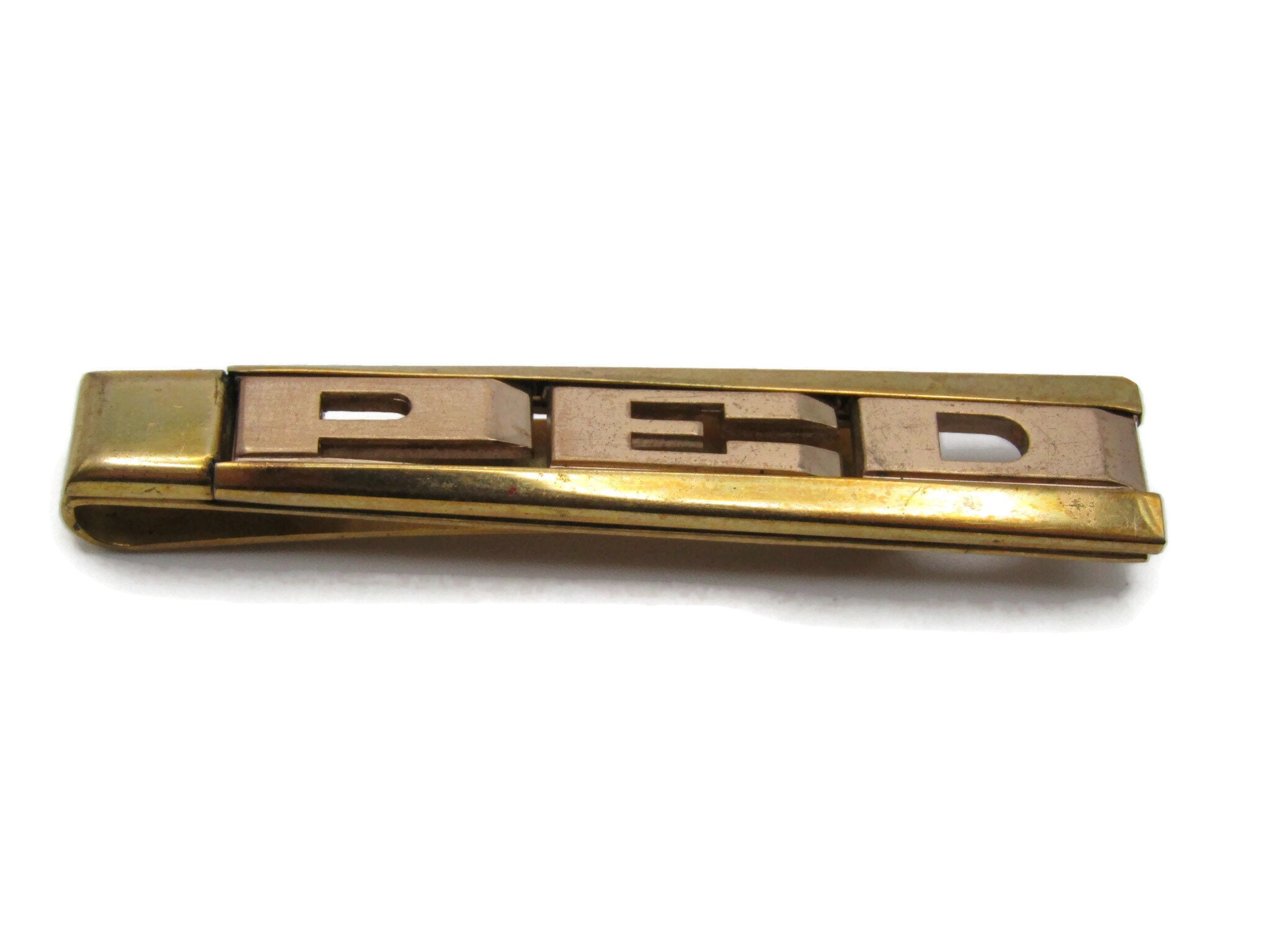 P E D Letters Initials Monogram Gold Tone Industrial Tie Clip Tie Bar Men's Jewelry