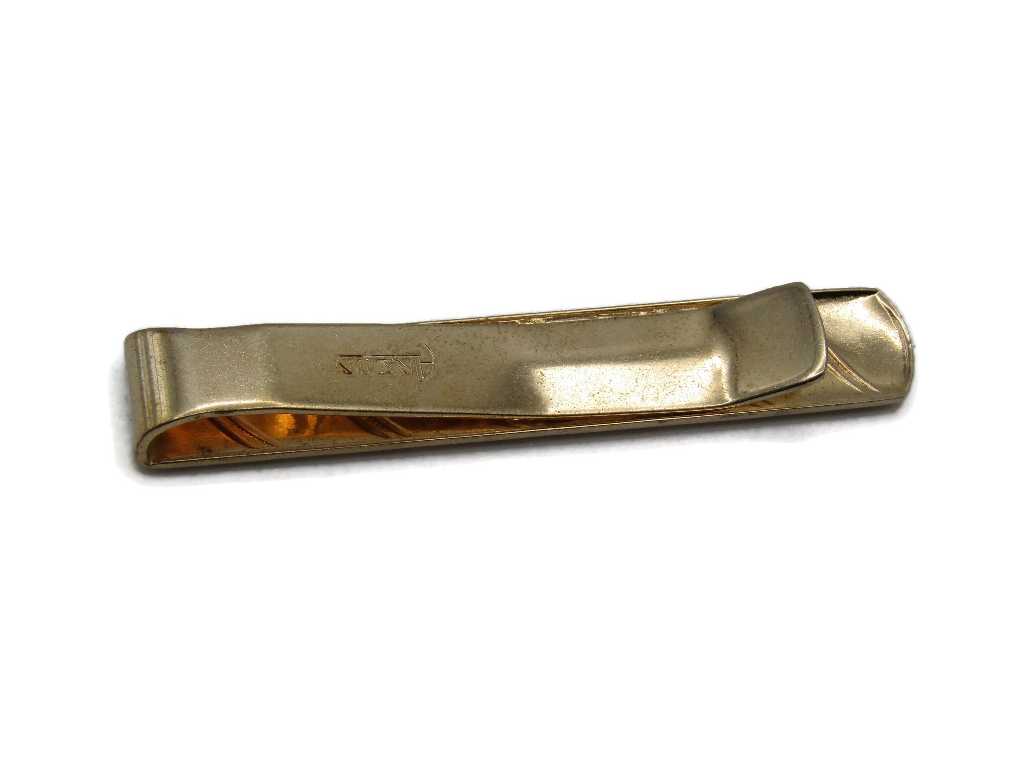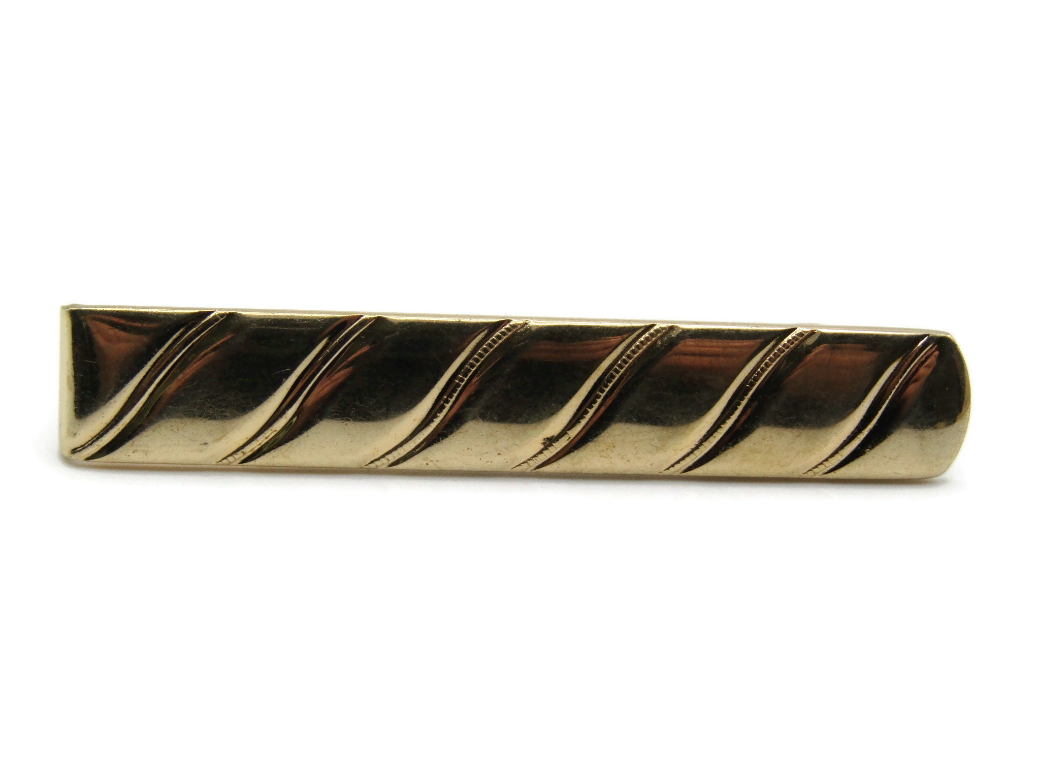 Diagonal Stripe Classic Modernist Gold Tone Tie Clip Tie Bar Men's Jewelry