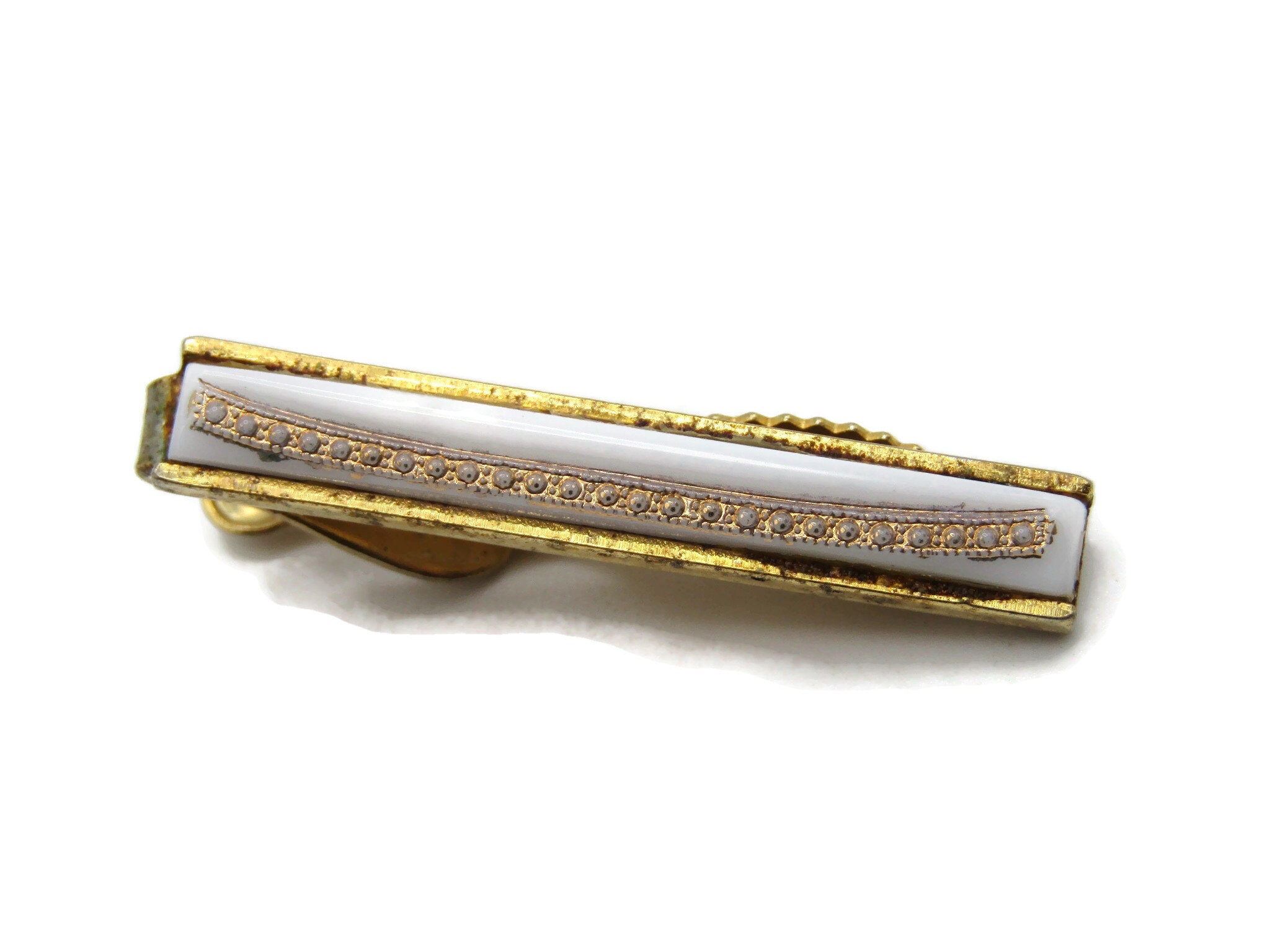 White and Textured Gold Detail Stone Inlay Gold Tone Tie Bar Tie Clip Men's Jewelry