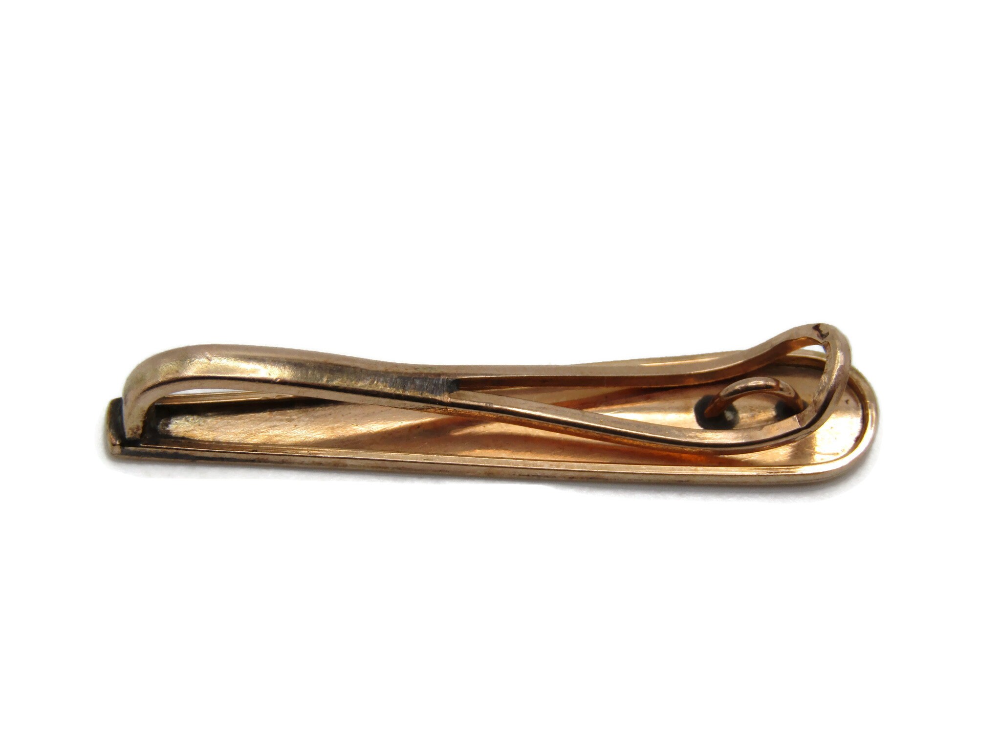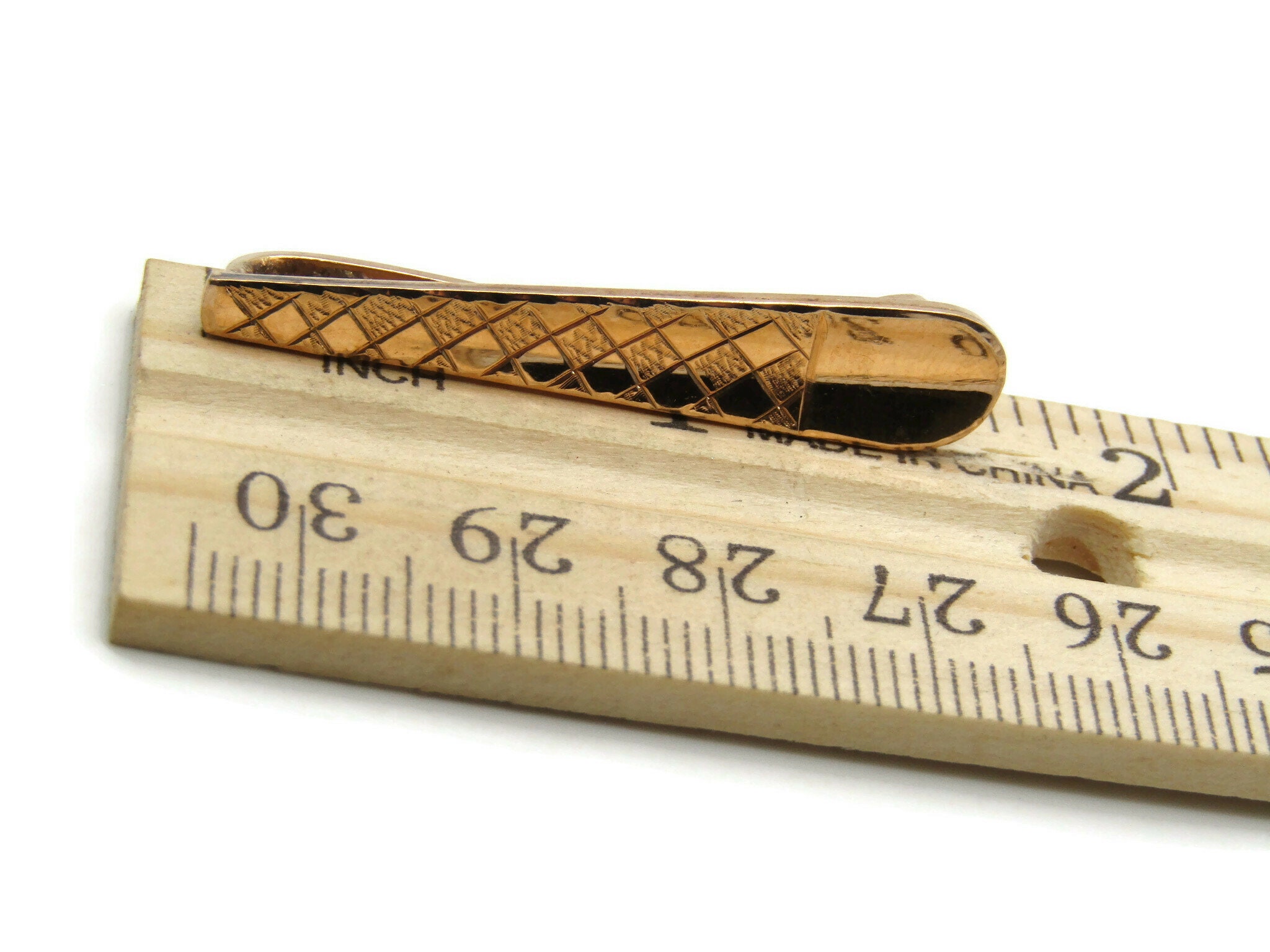 Tapered Checkered Pattern Gold Tone Tie Clip Modernist Tie Bar Men's Jewelry