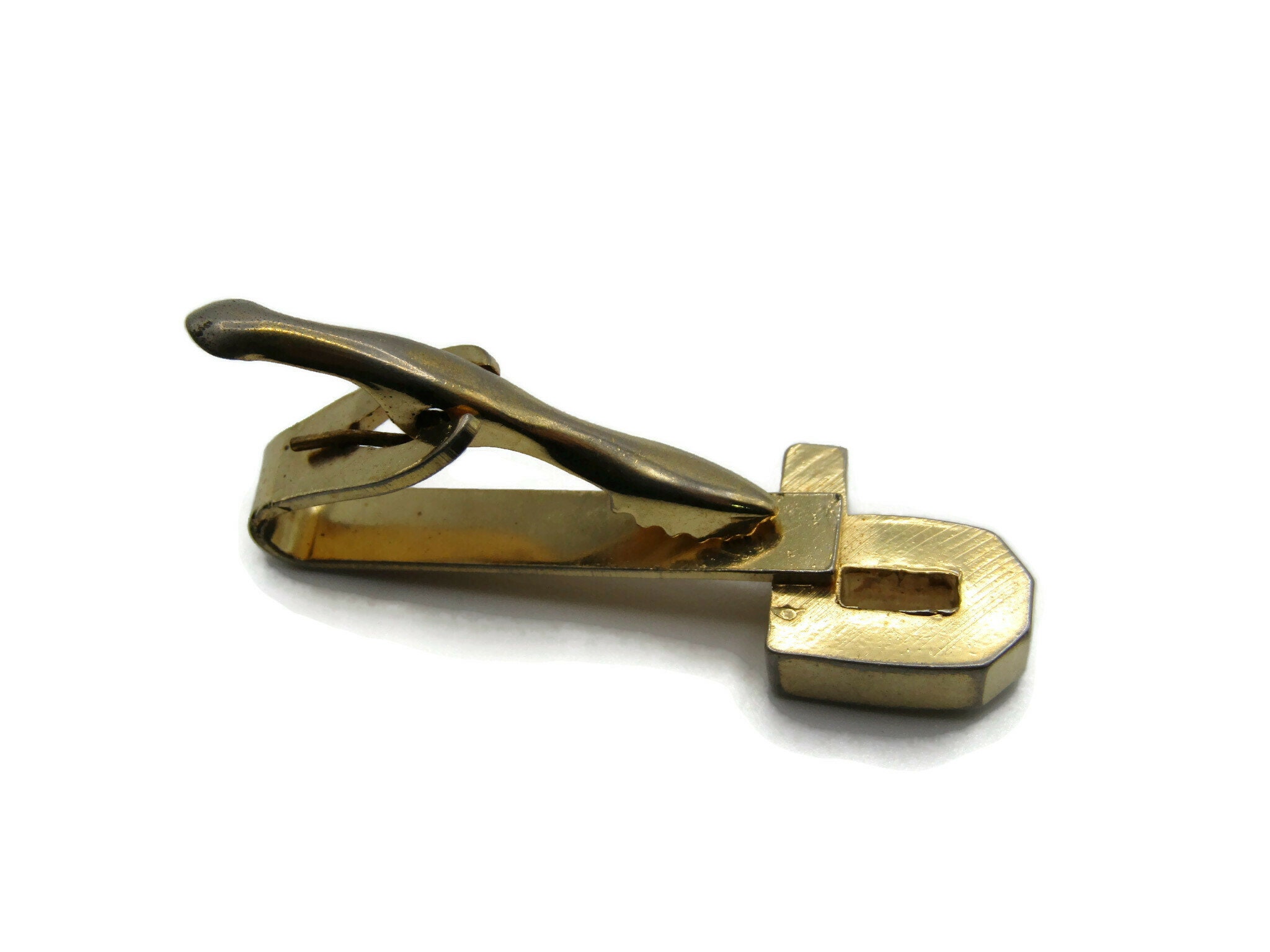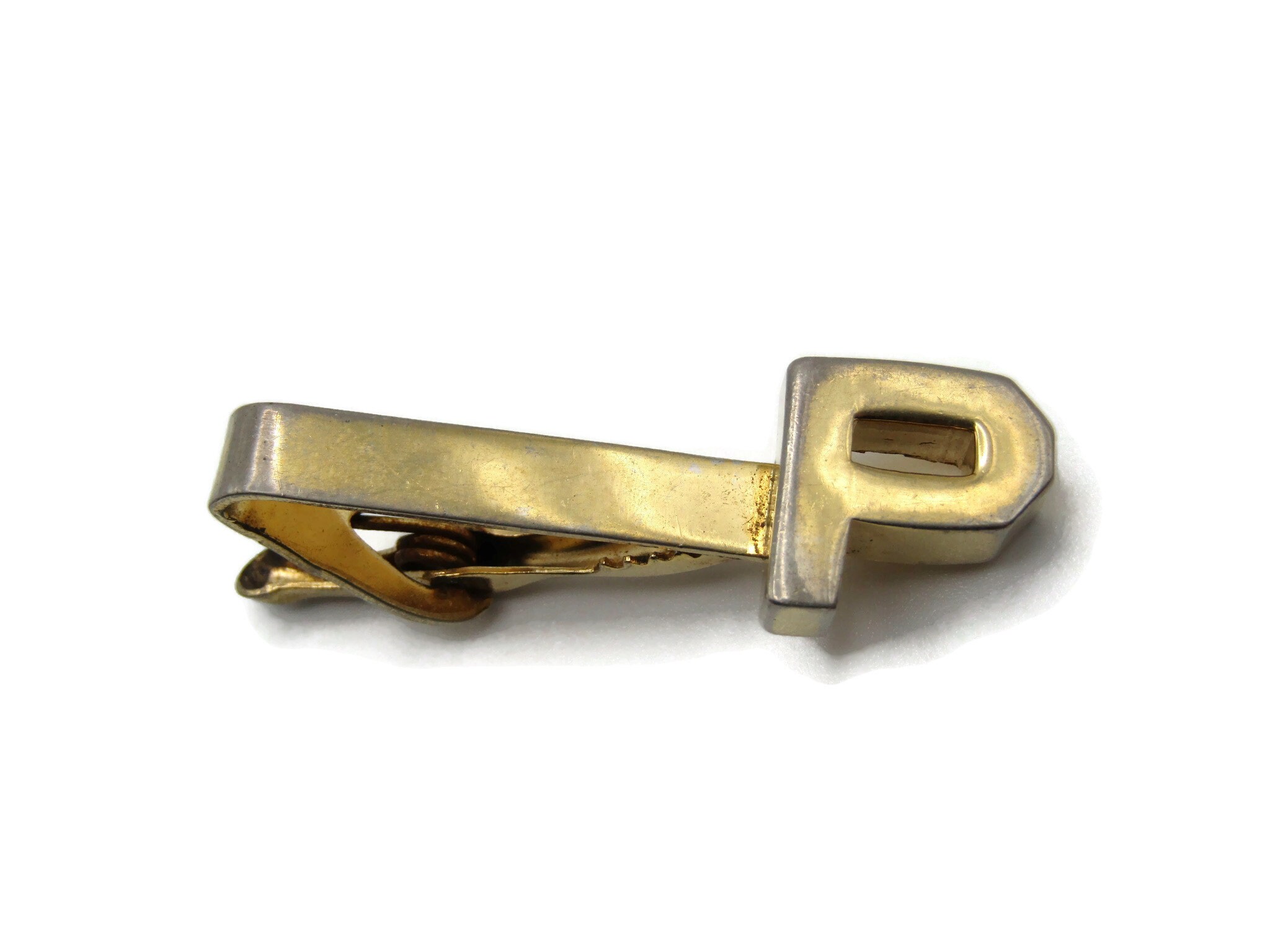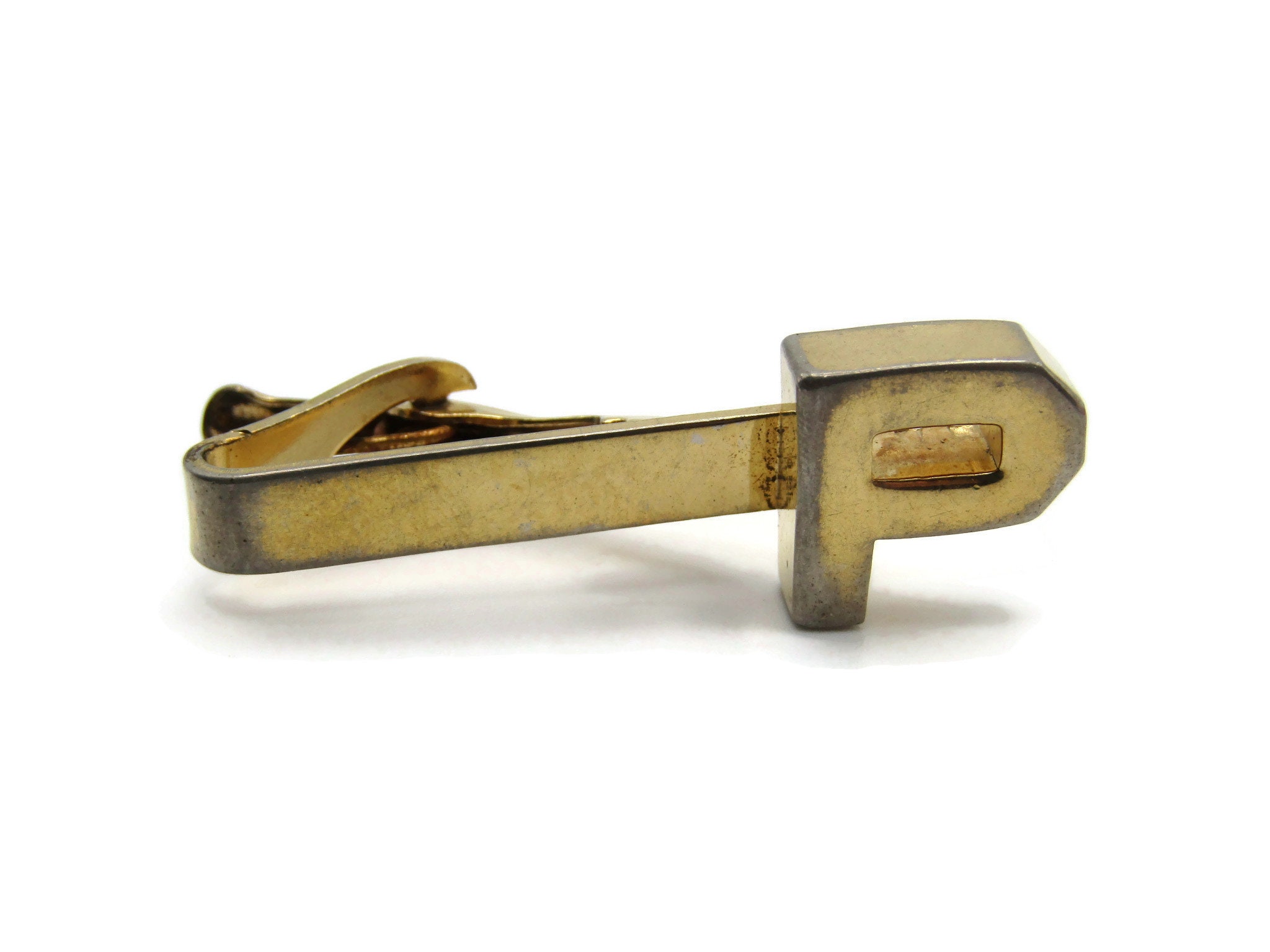 P Initial Letter Monogram Industrial Style Gold Tone Tie Bar Tie Clip Men's Jewelry