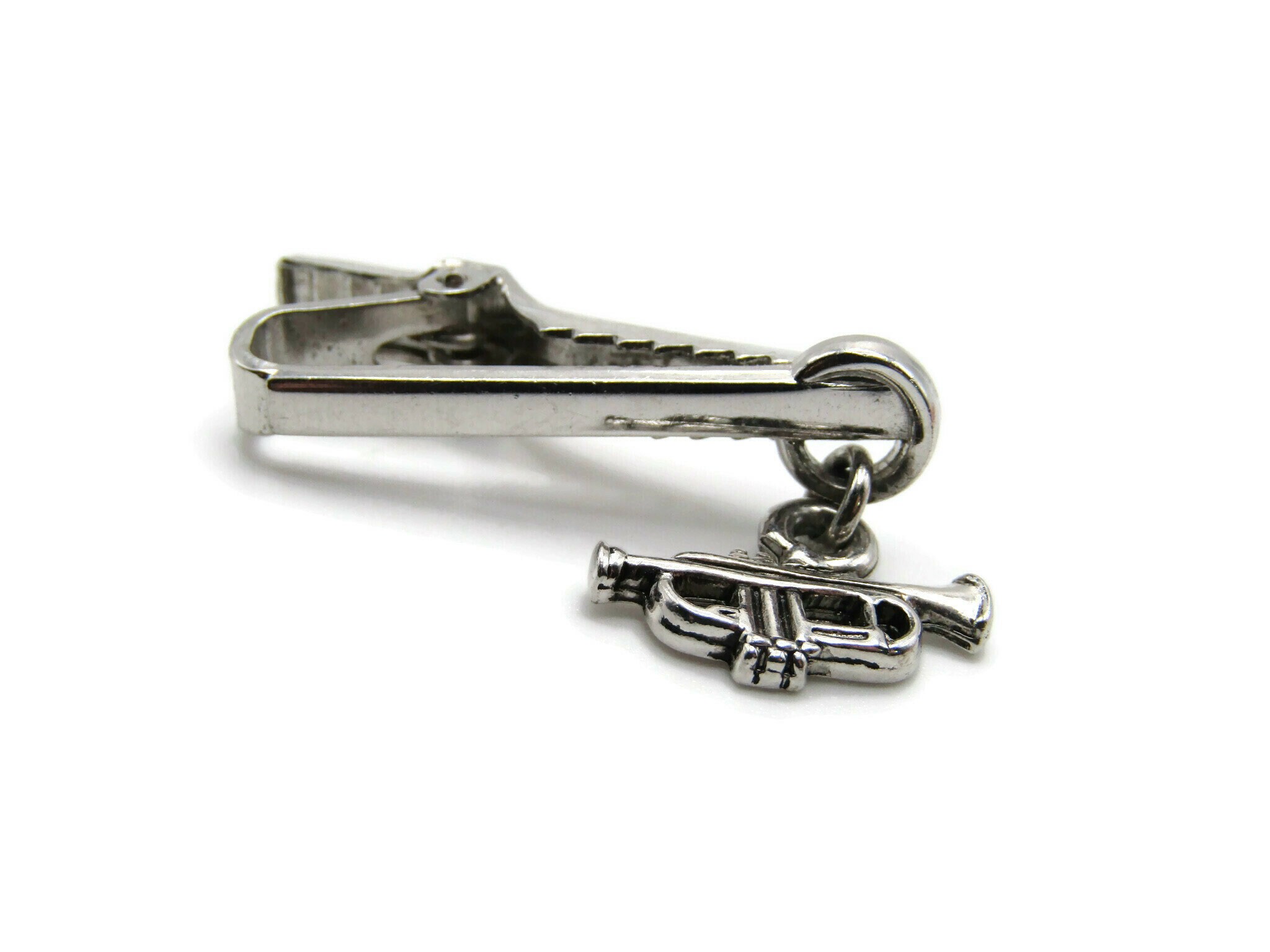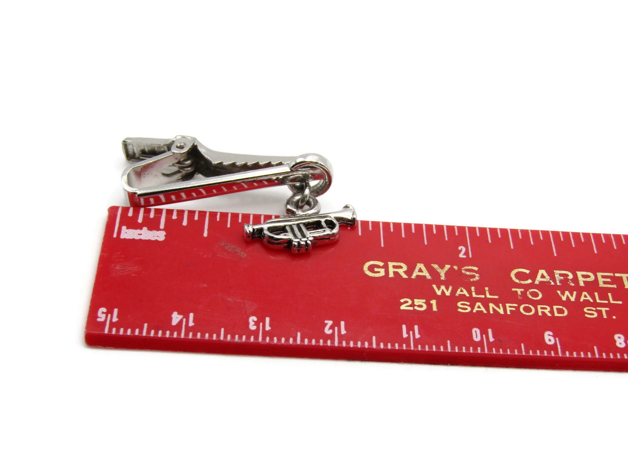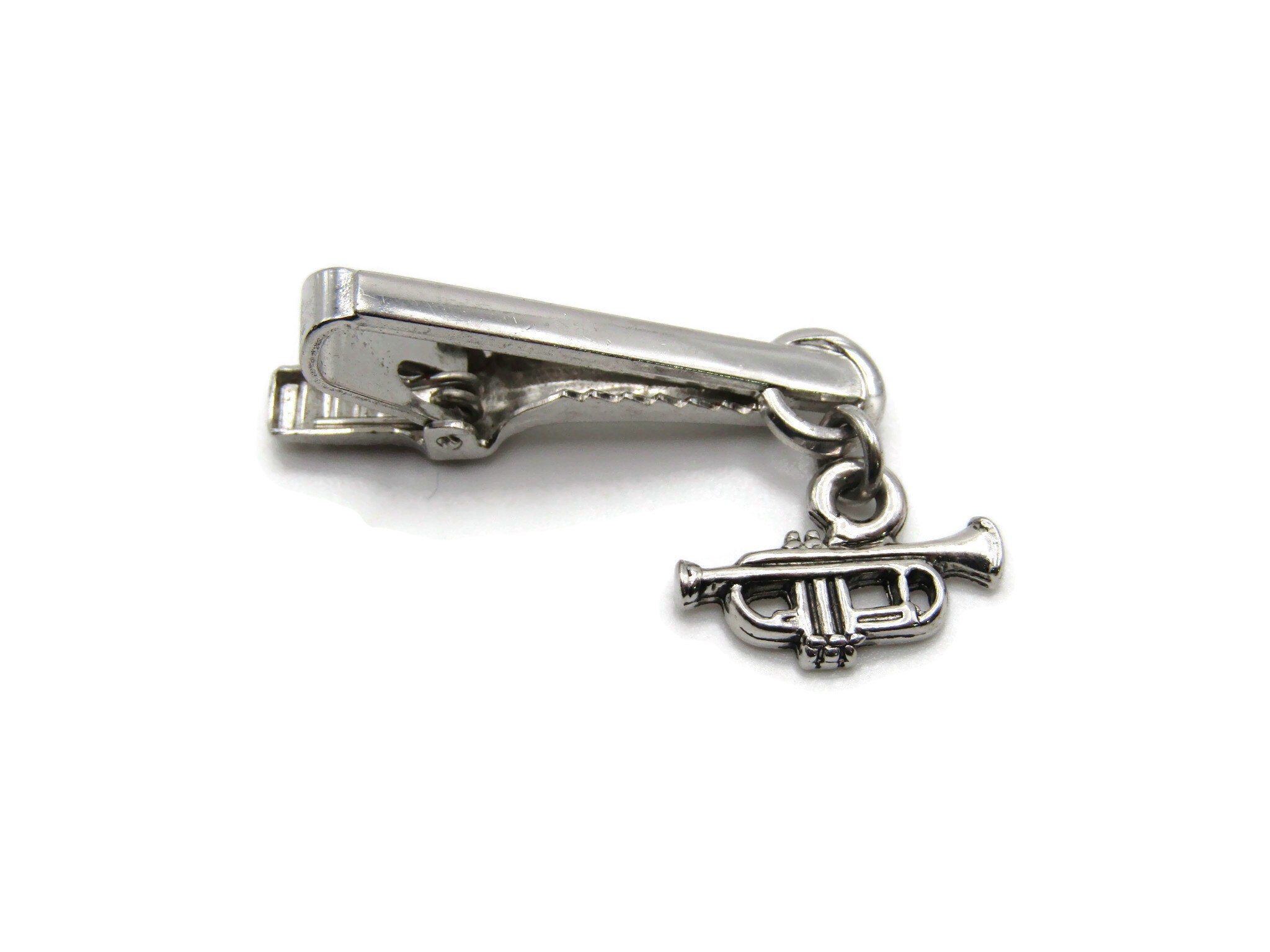Trumpet Charm Straight Bar Smooth Finish Silver Tone Music Musician Gift Tie Bar Tie Clip Men's Jewelry