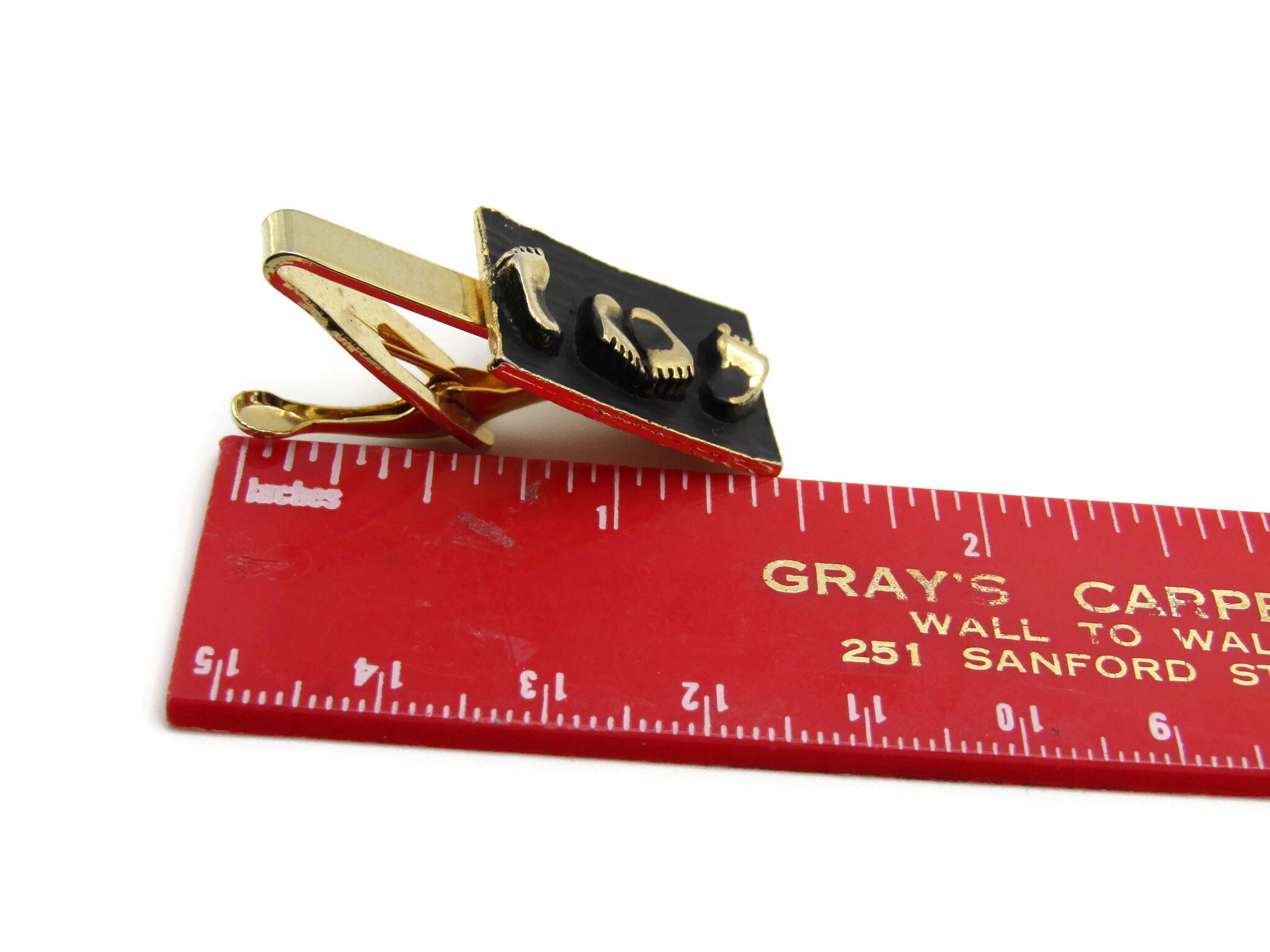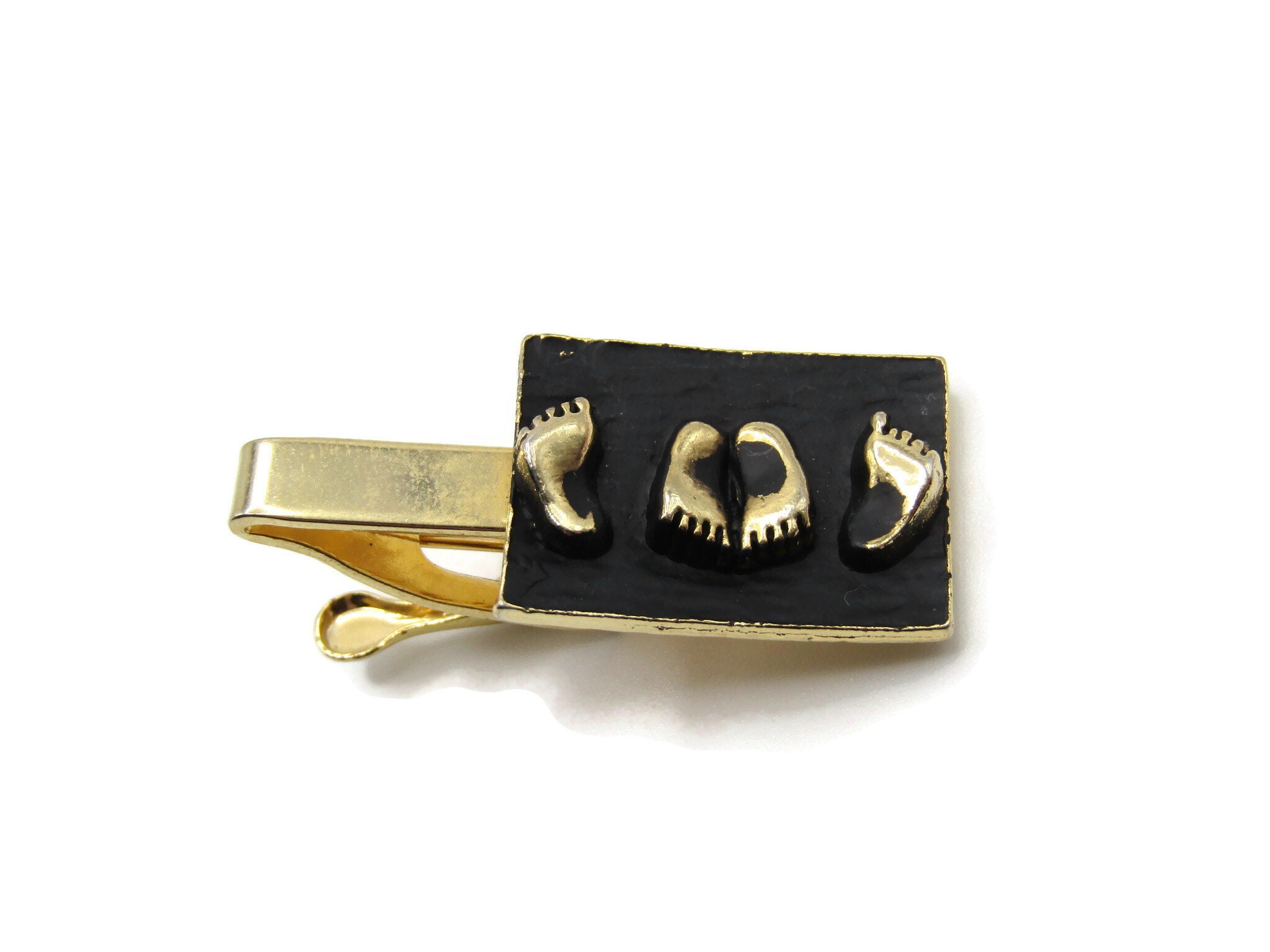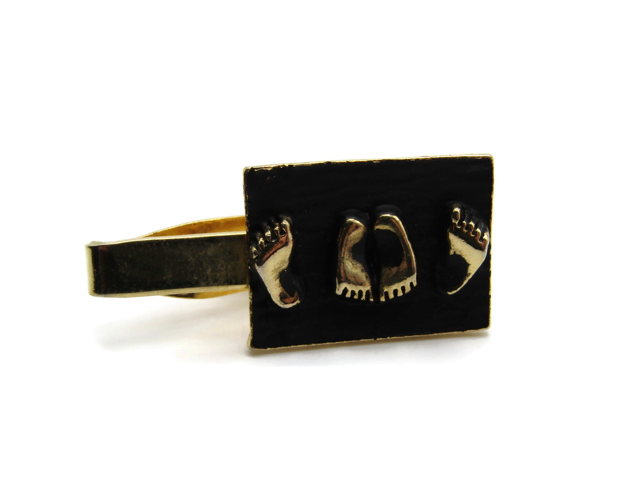 Feet Together & Apart Black Background Gold Tone Modernist Tie Clip Tie Bar Men's Jewelry