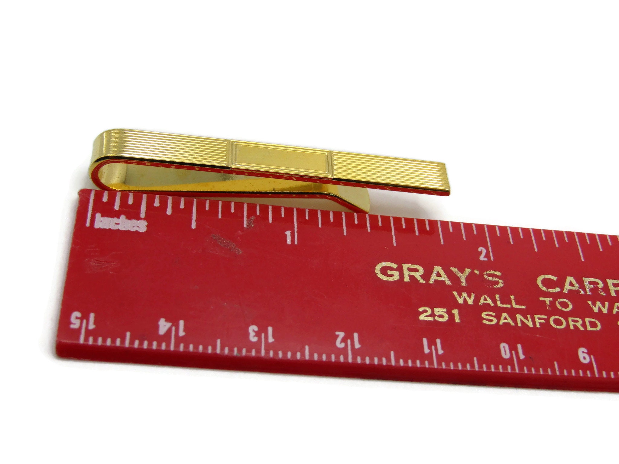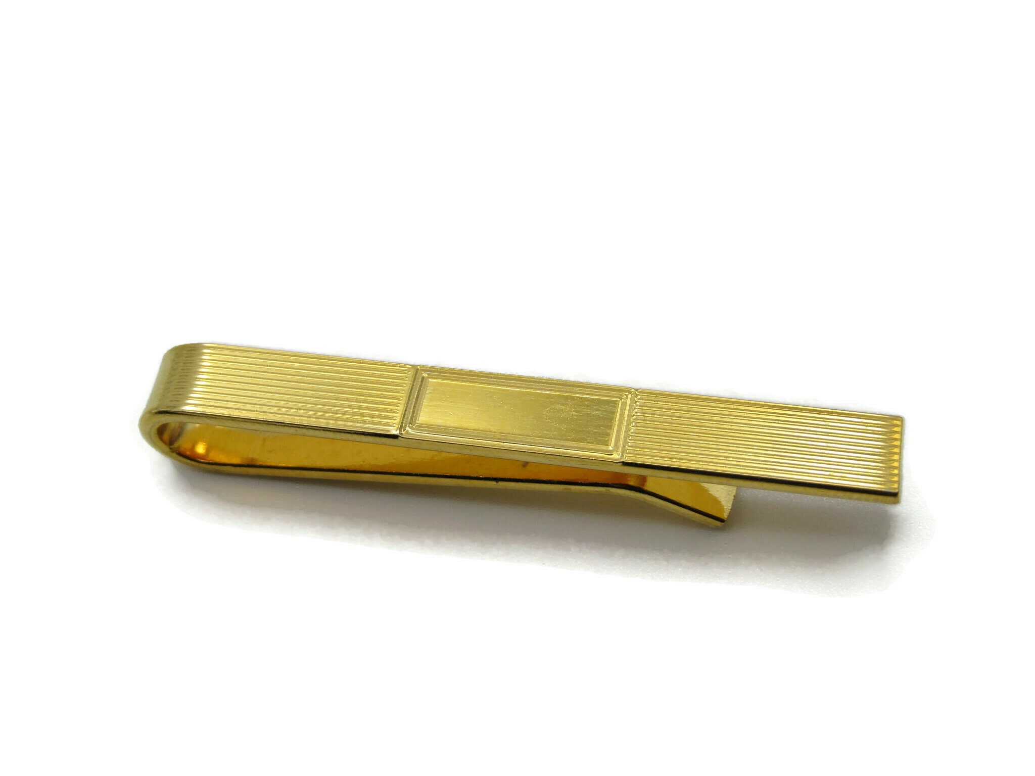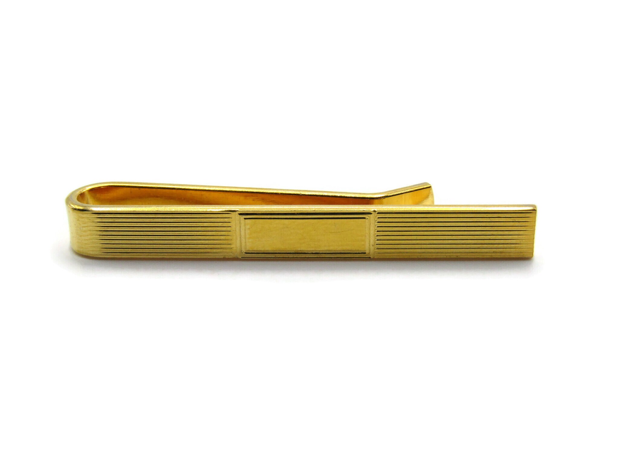 Classic Design Straight Bar Tie Clip Horizontal Engraved Stripes Modernist Gold Tone Tie Bar Men's Jewelry