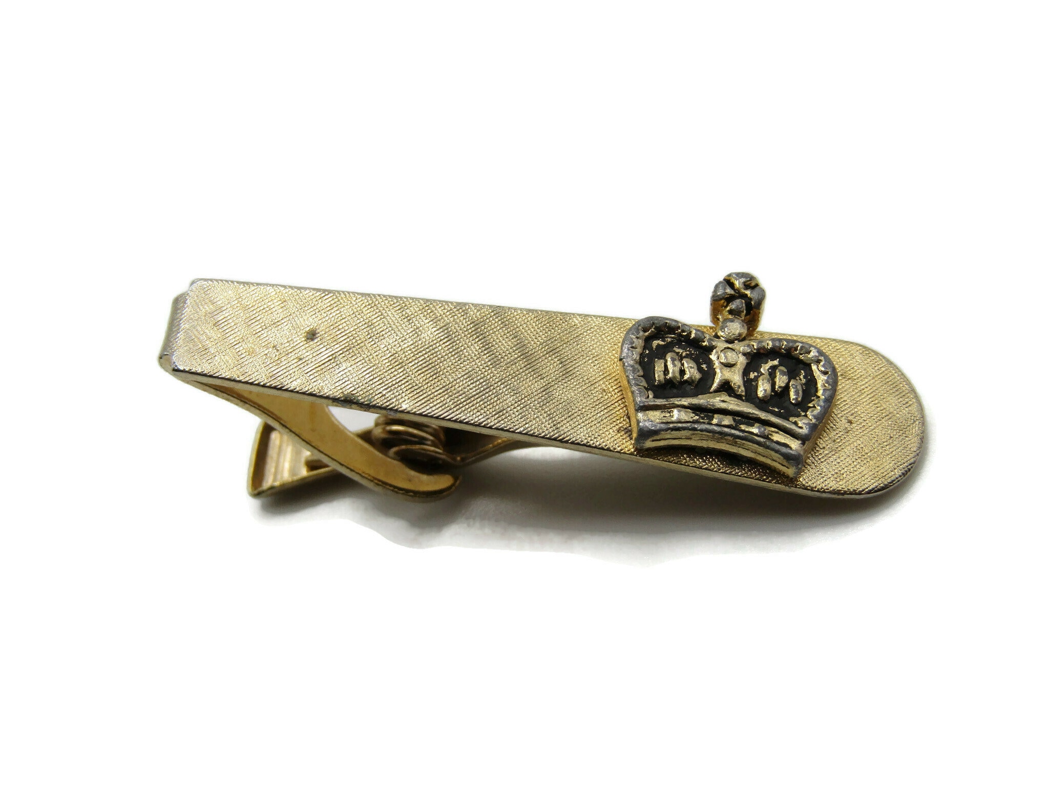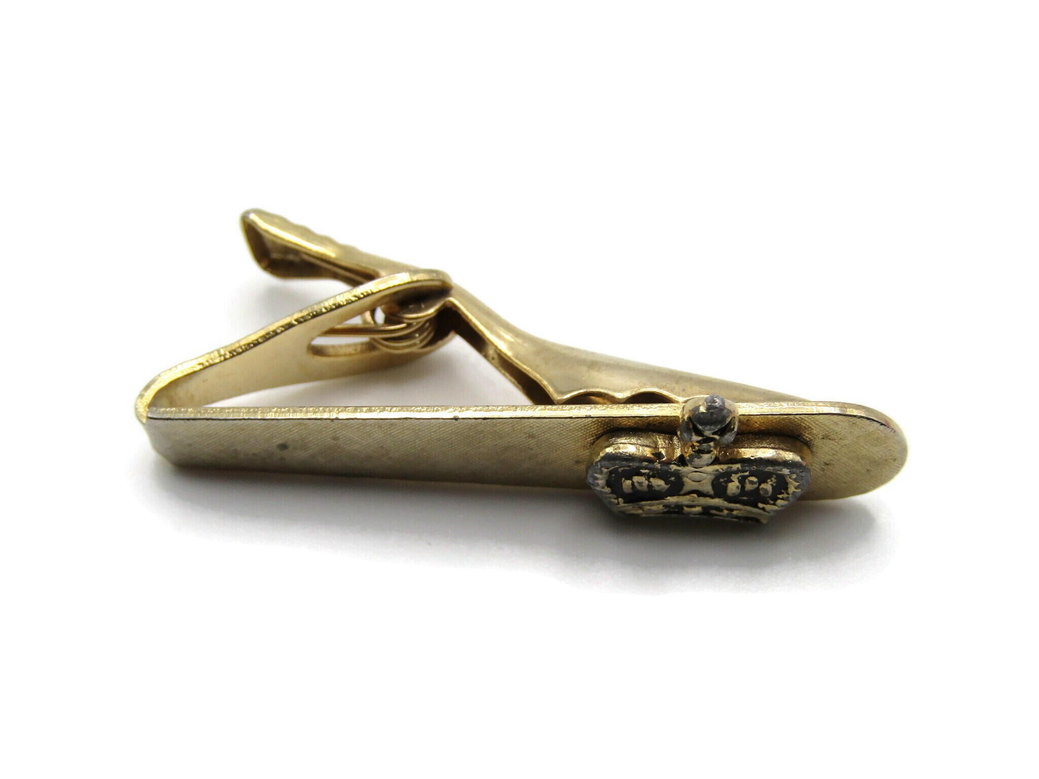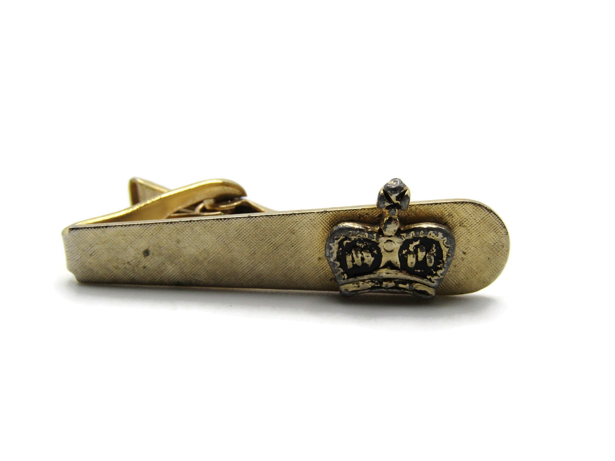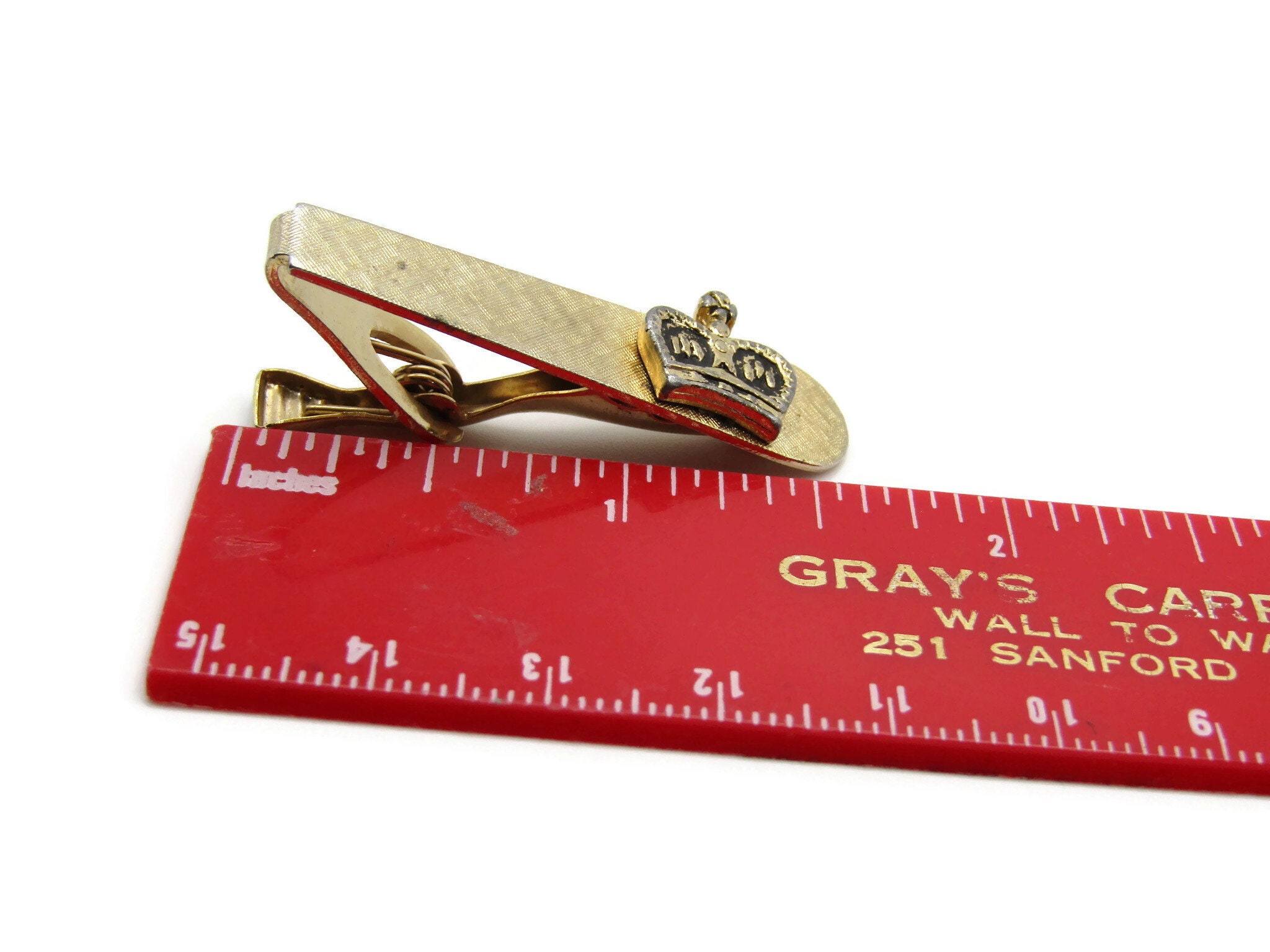 Crown Edge Textured Background Gold Tone Tie Bar Modernist Tie Clip Men's Jewelry
