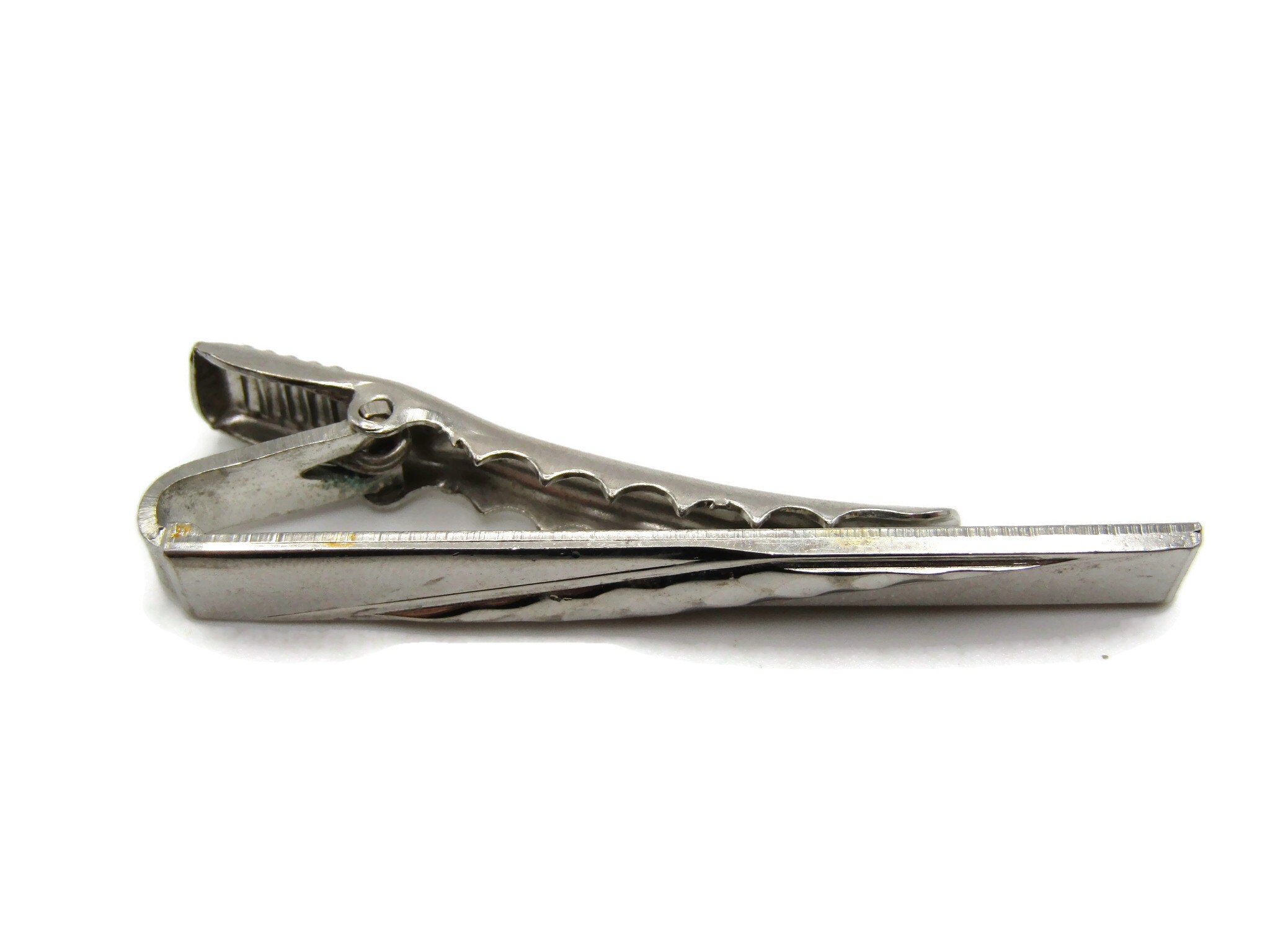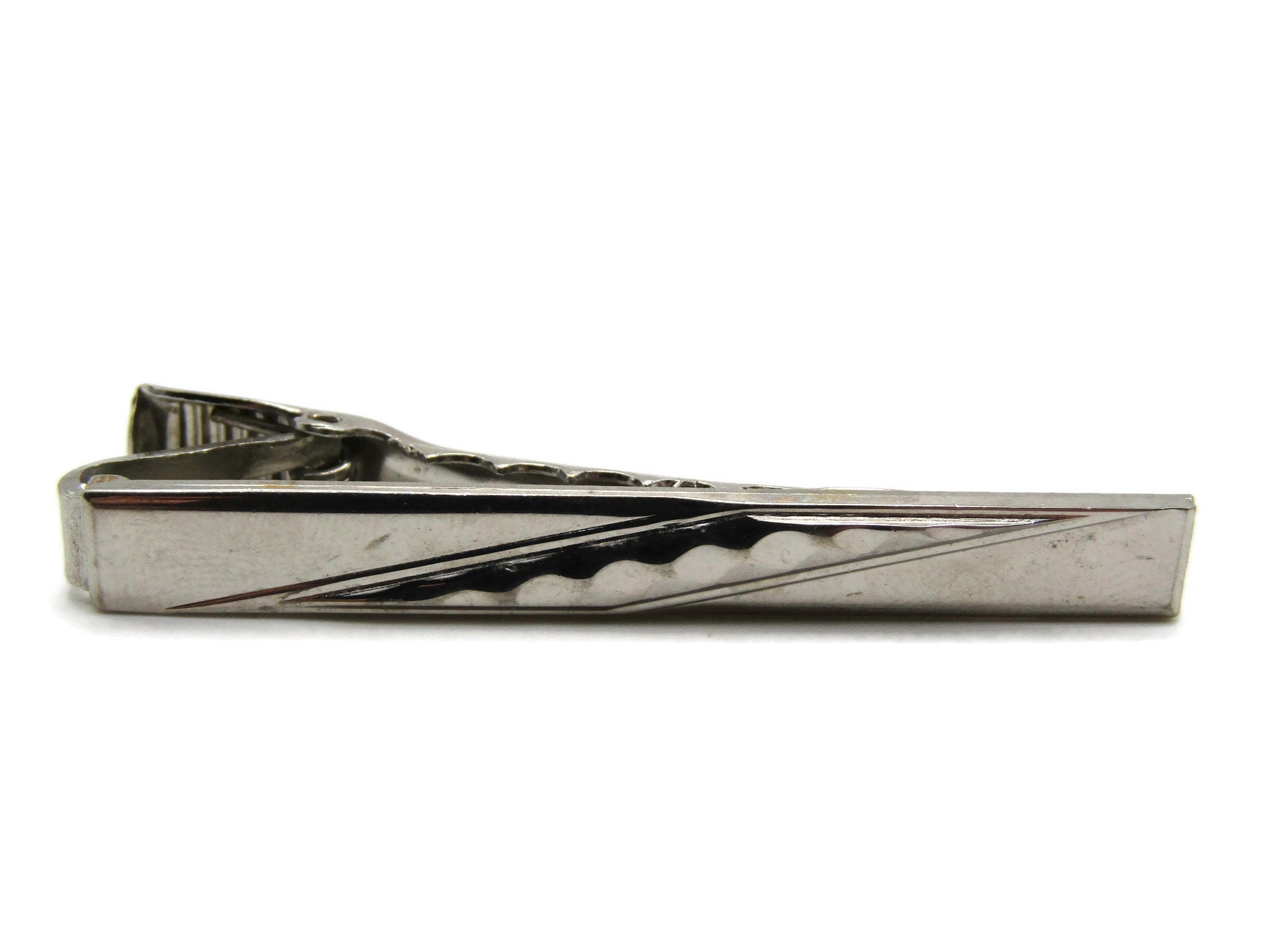 Textured Diagonal Line Design Smooth Finish Classic Modernist Tie Clip Tie Bar Men's Jewelry