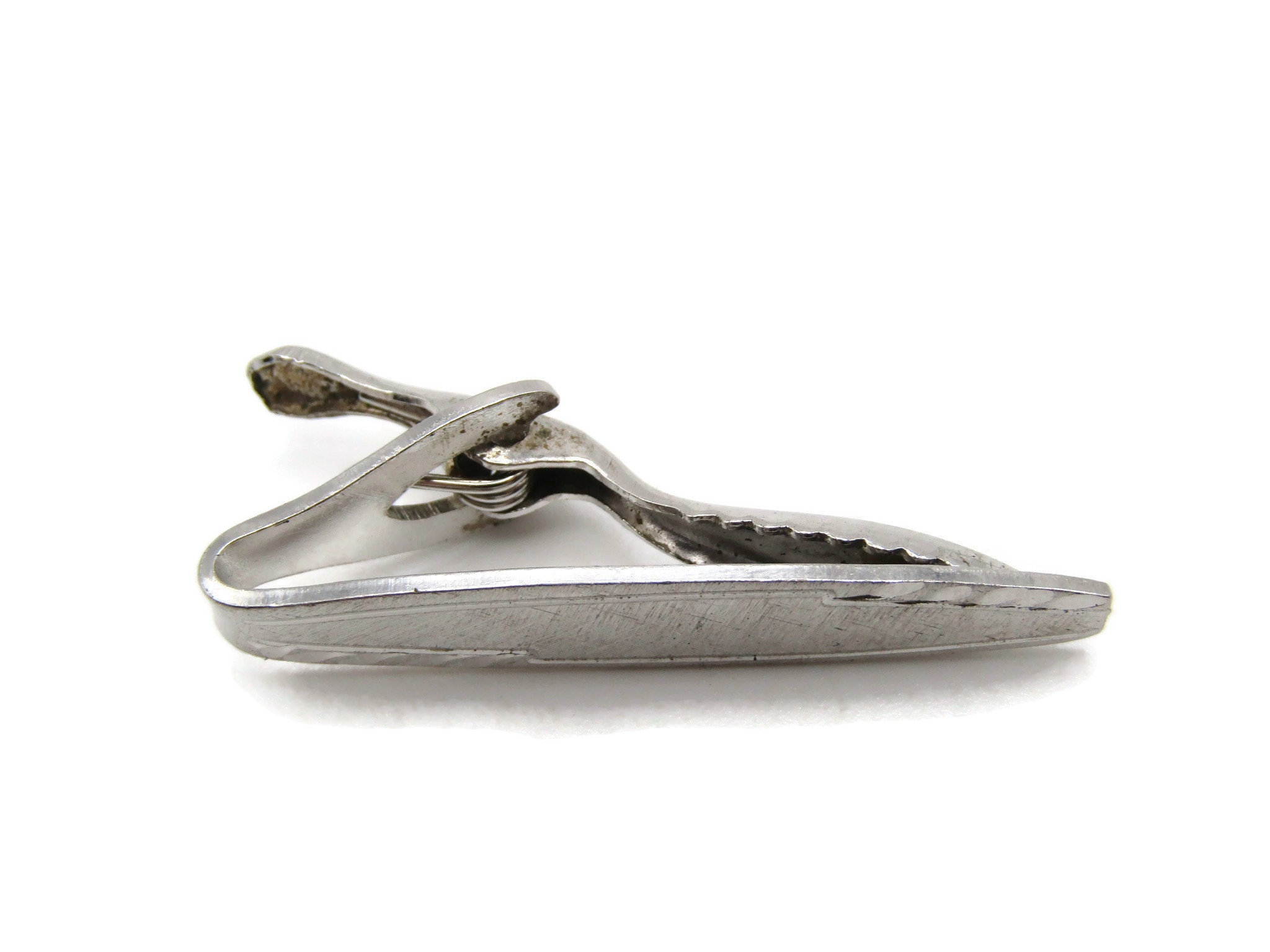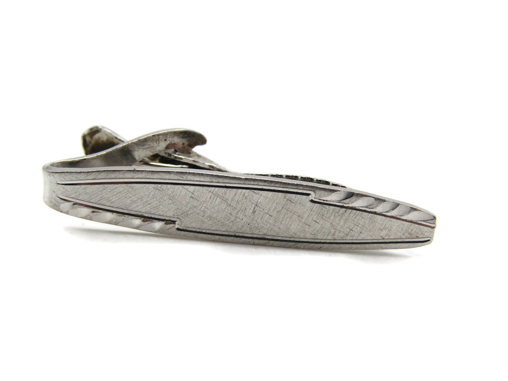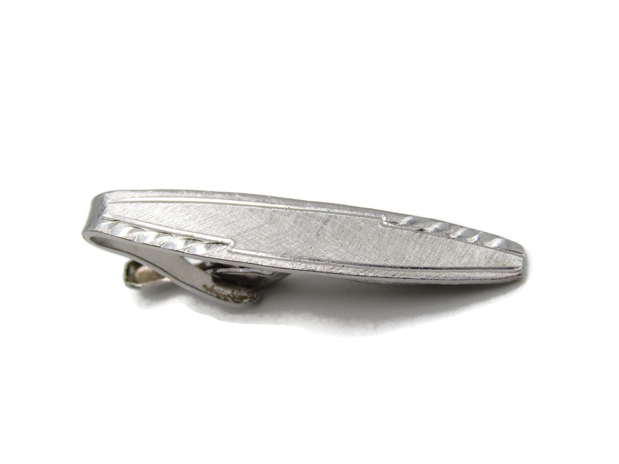 Rounded and Etched Edge Textured Finish Silver Tone Tie Bar Tie Clip Men's Jewelry