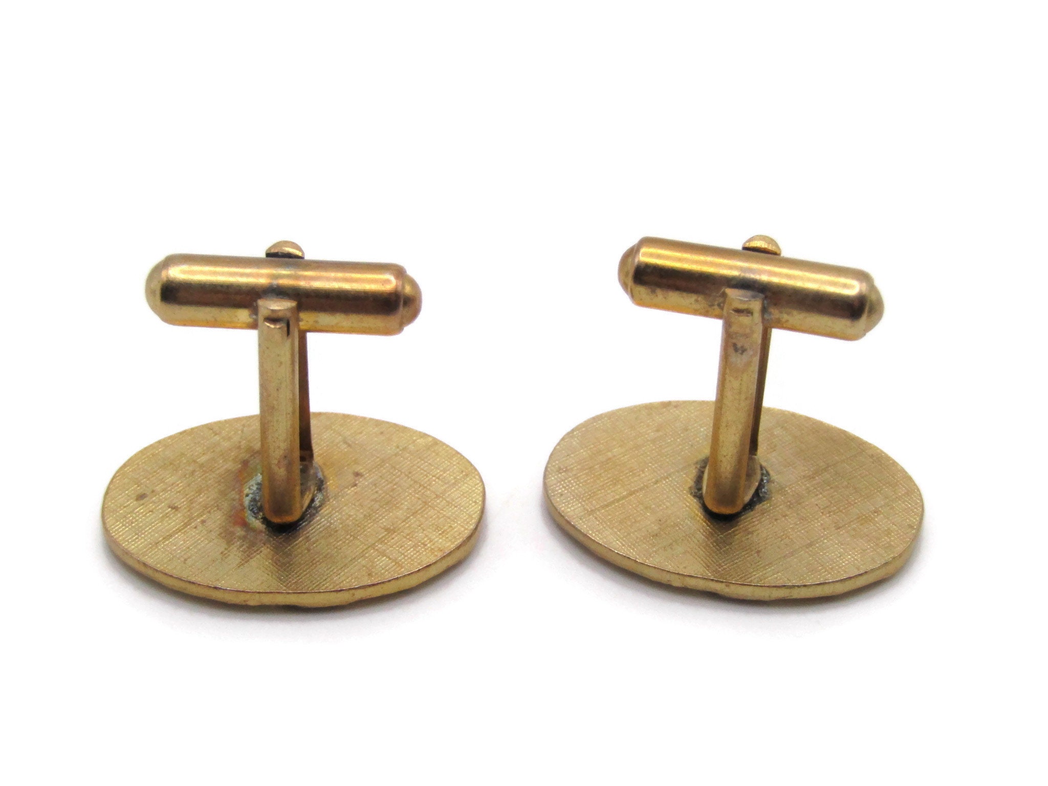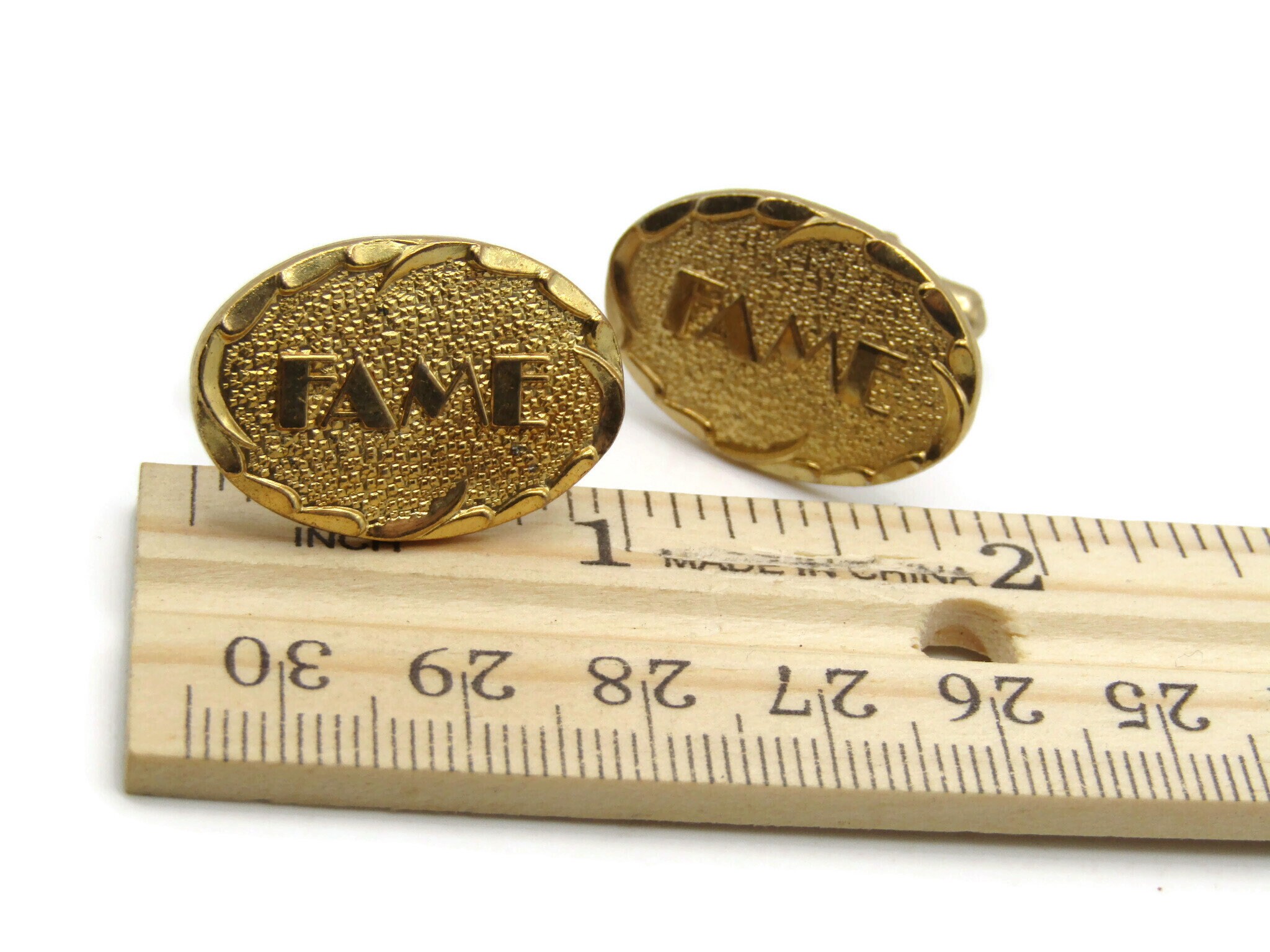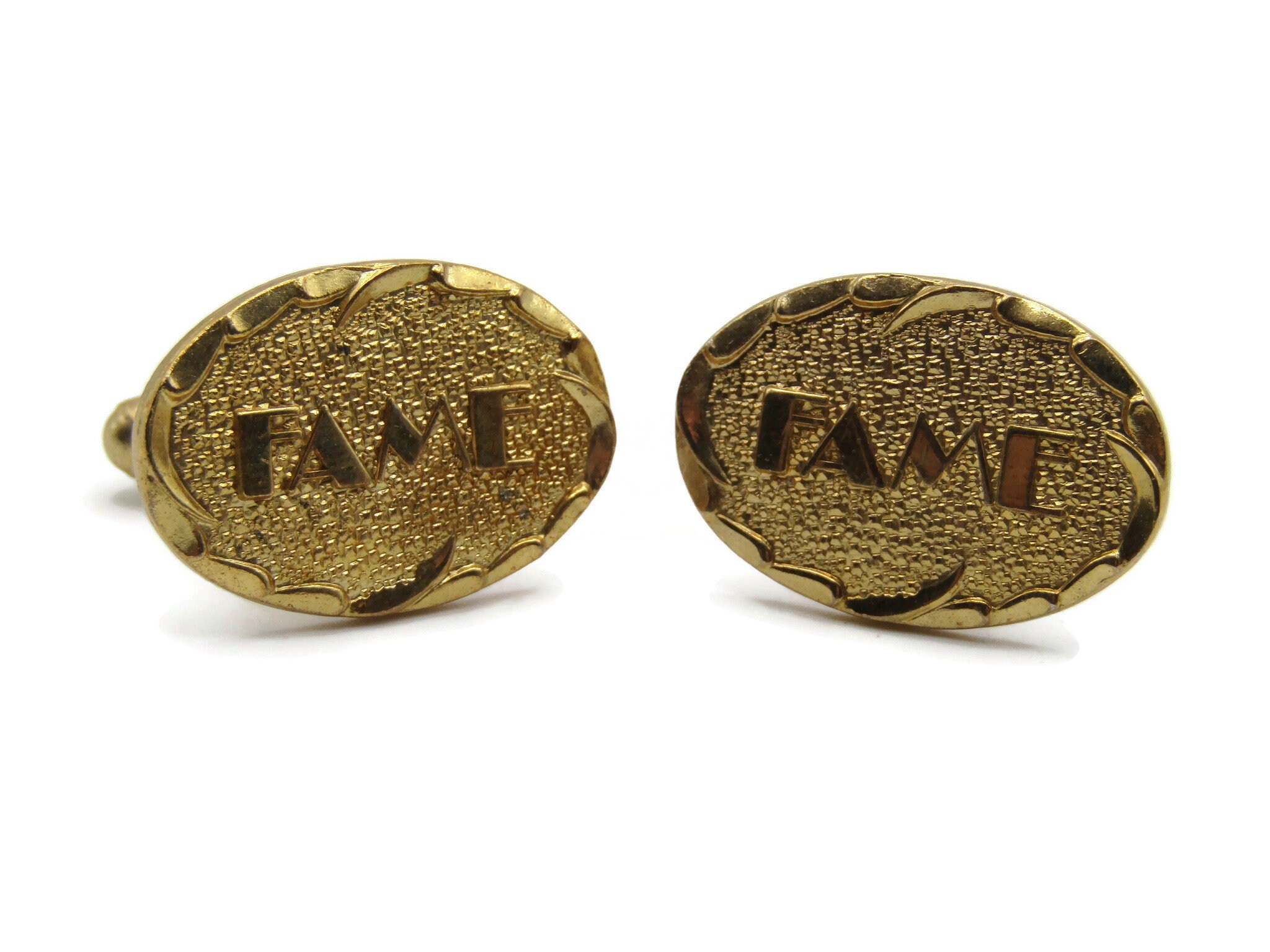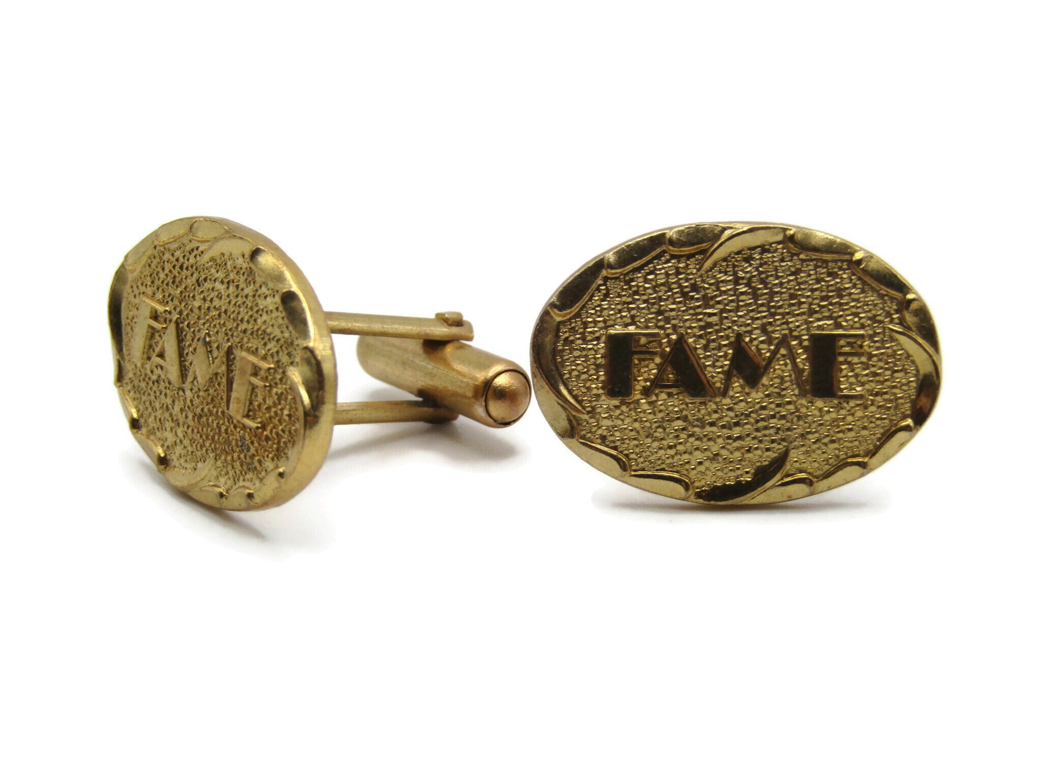 Vintage Cufflinks for Men: Fame Theme Textured Scalloped Edge Gold Tone Be Famous!