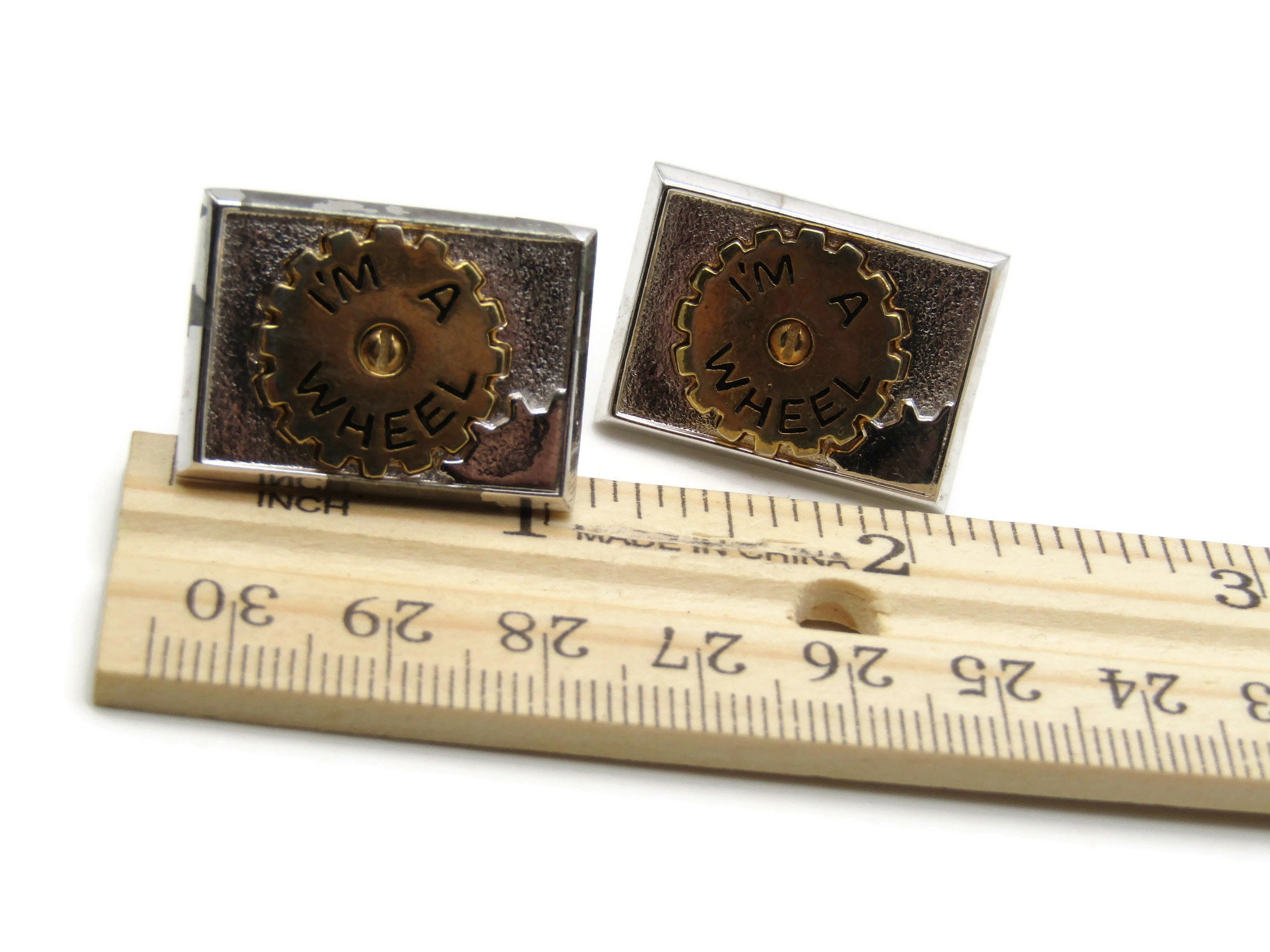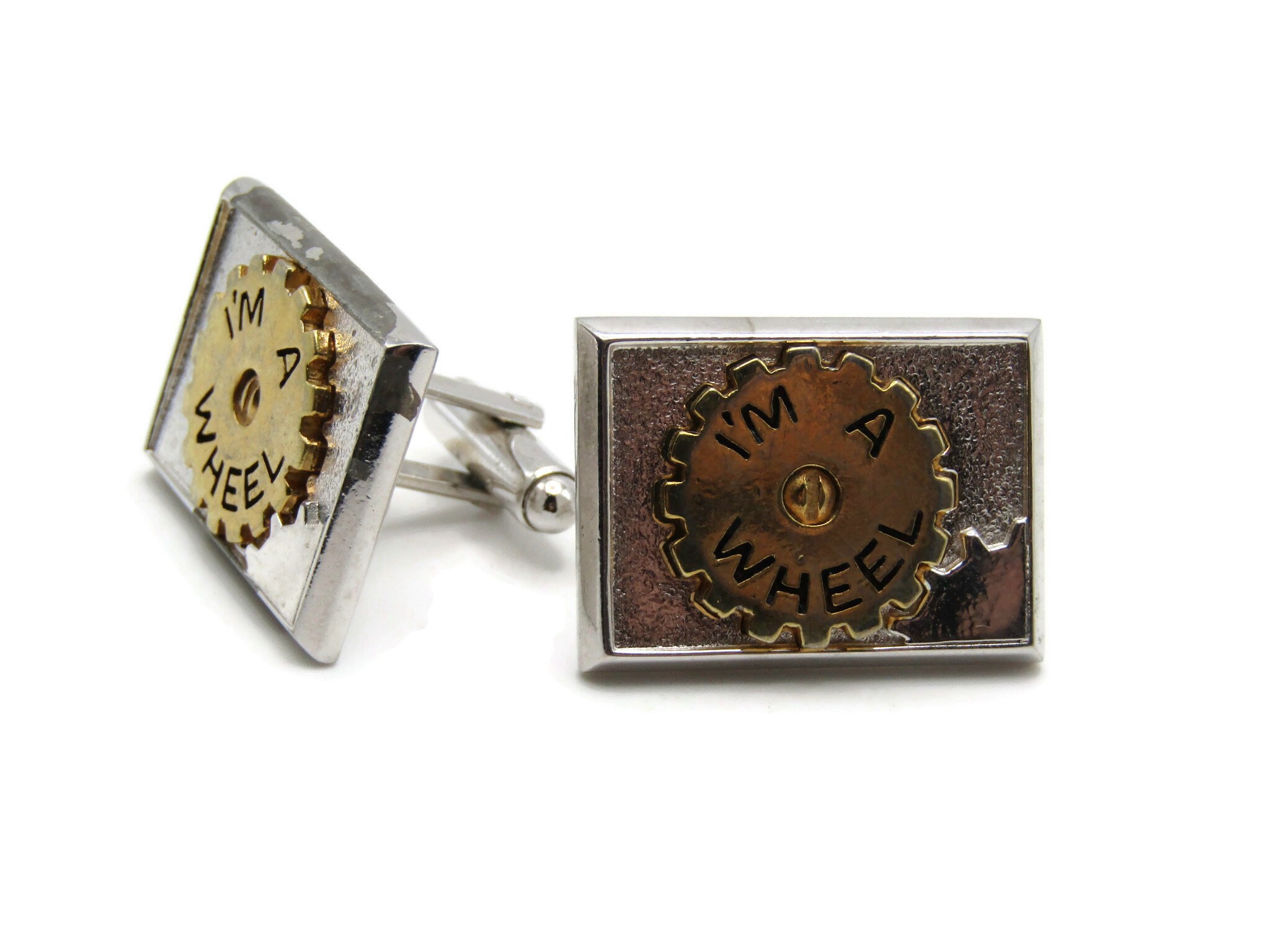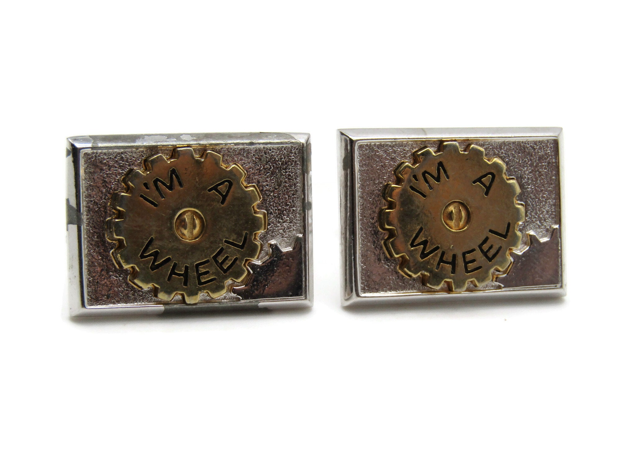 Vintage Cufflinks for Men: I'm A Wheel Gold Tone Gear Center Silver Tone