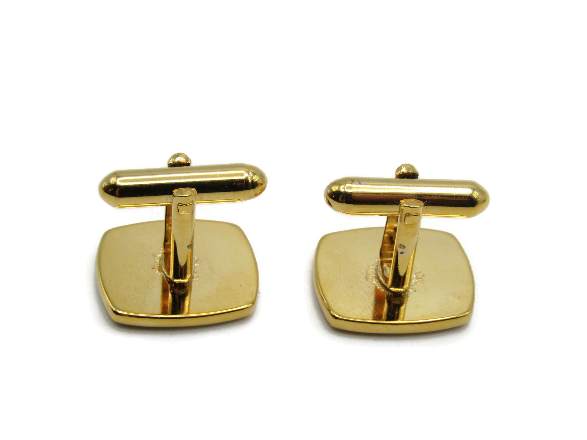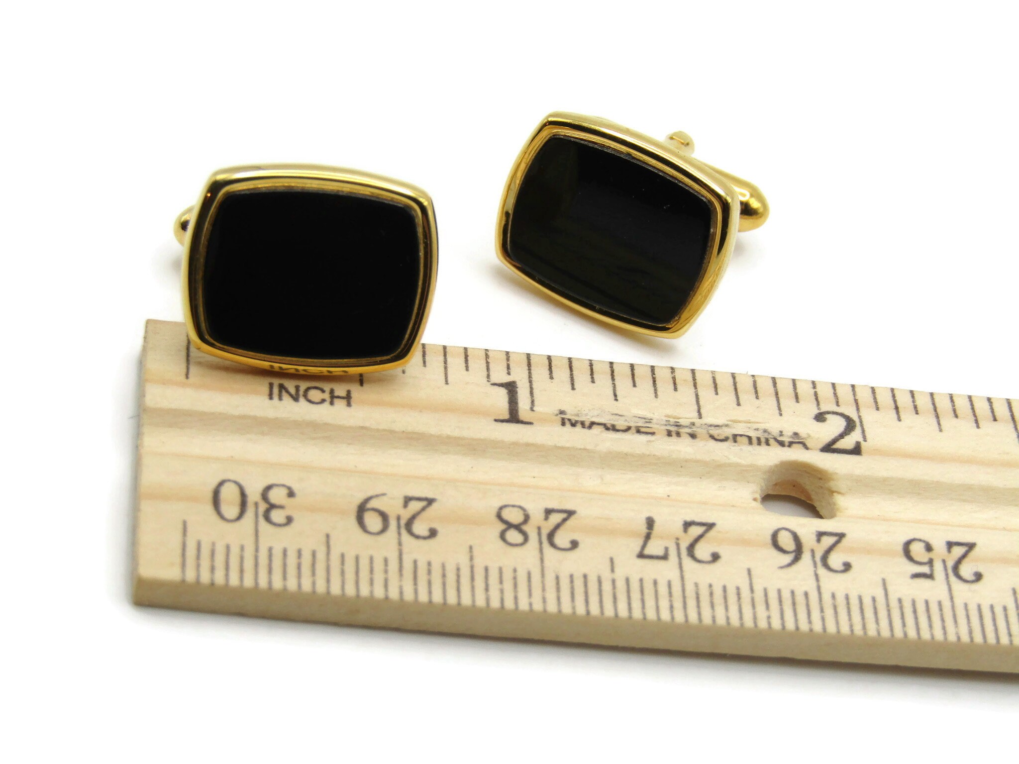 Black Stone Inlay Rounded Edge Gold Tone Cufflinks