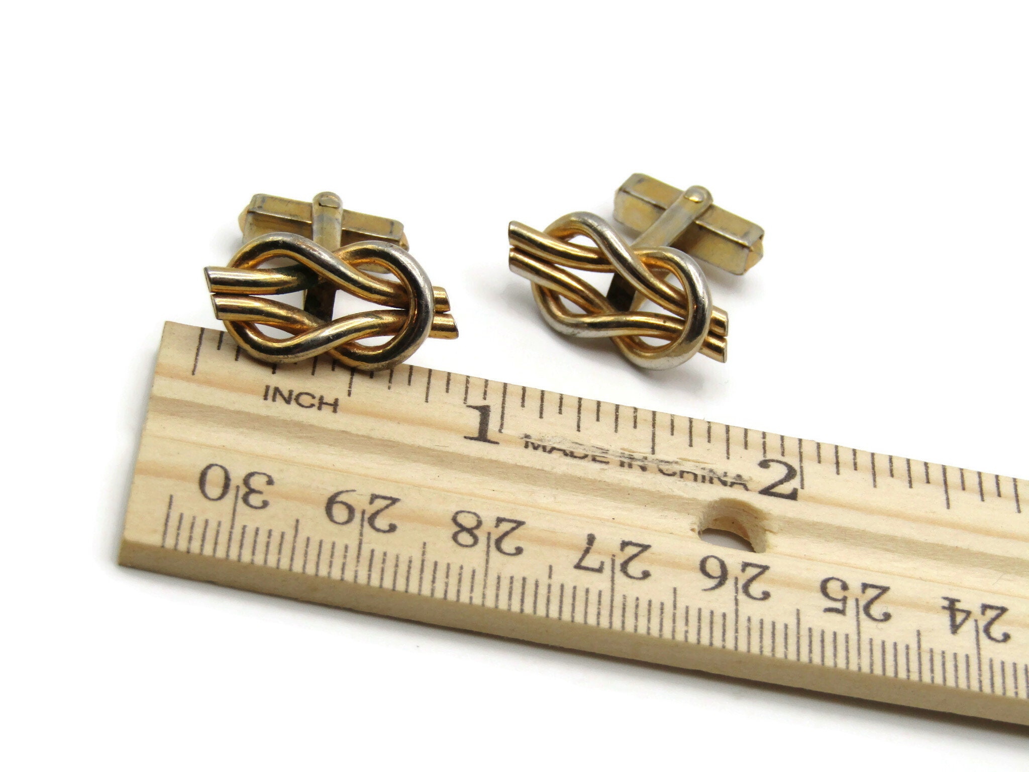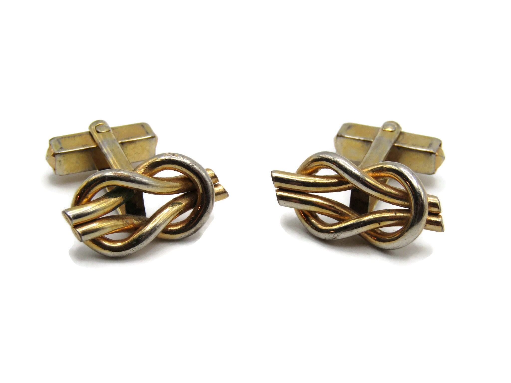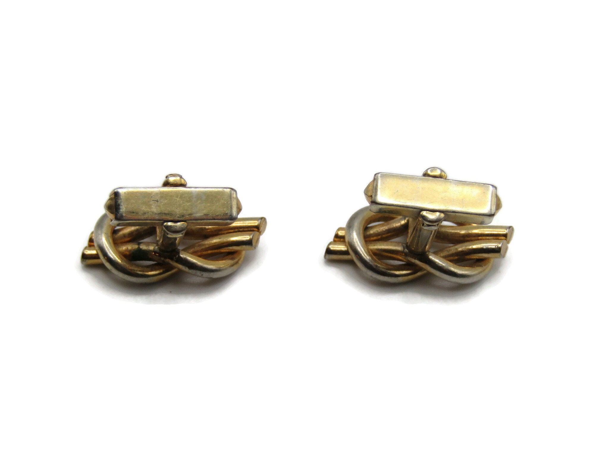 Knotted Design Silver and Gold Tone Industrial Style Cufflinks