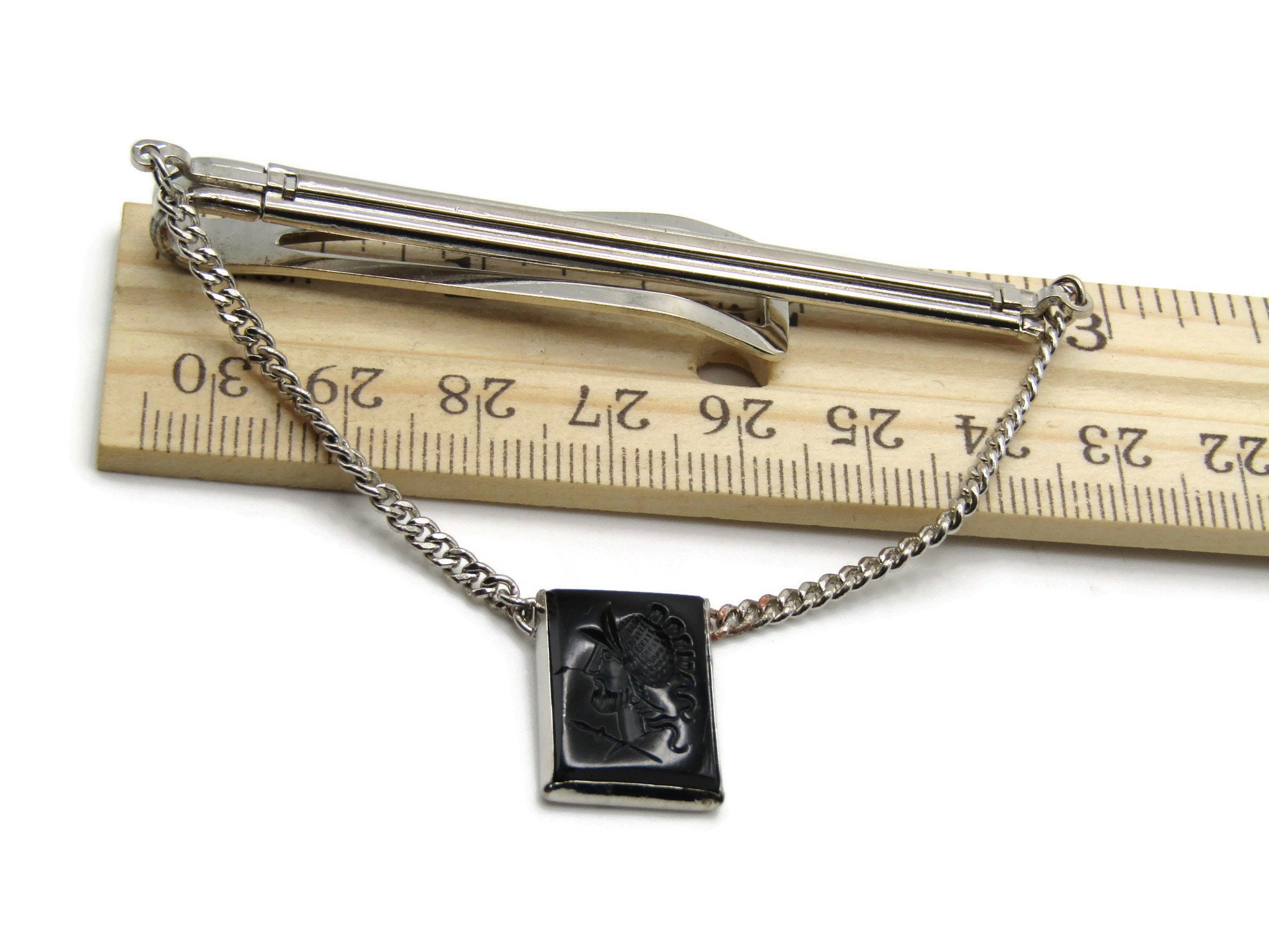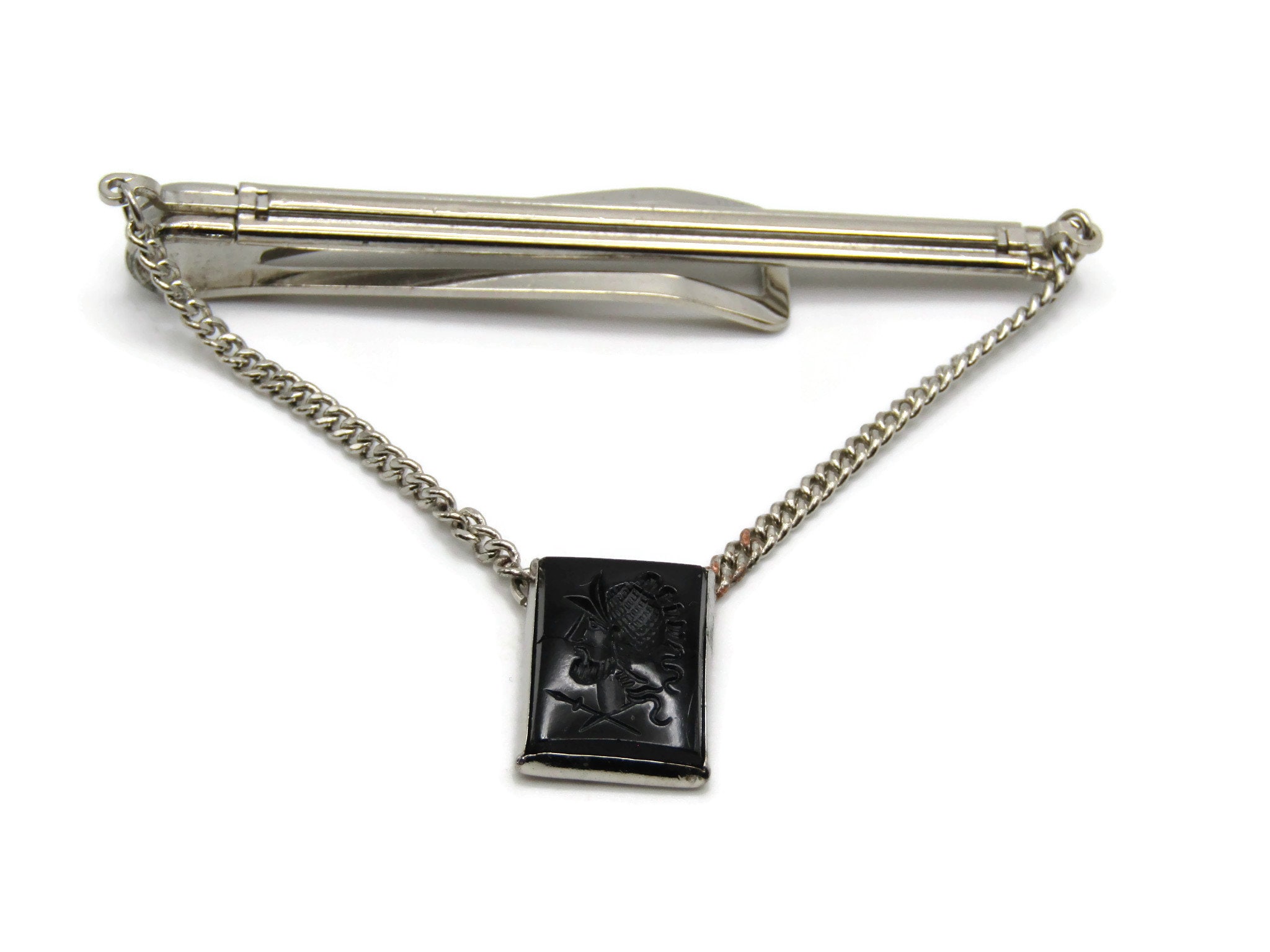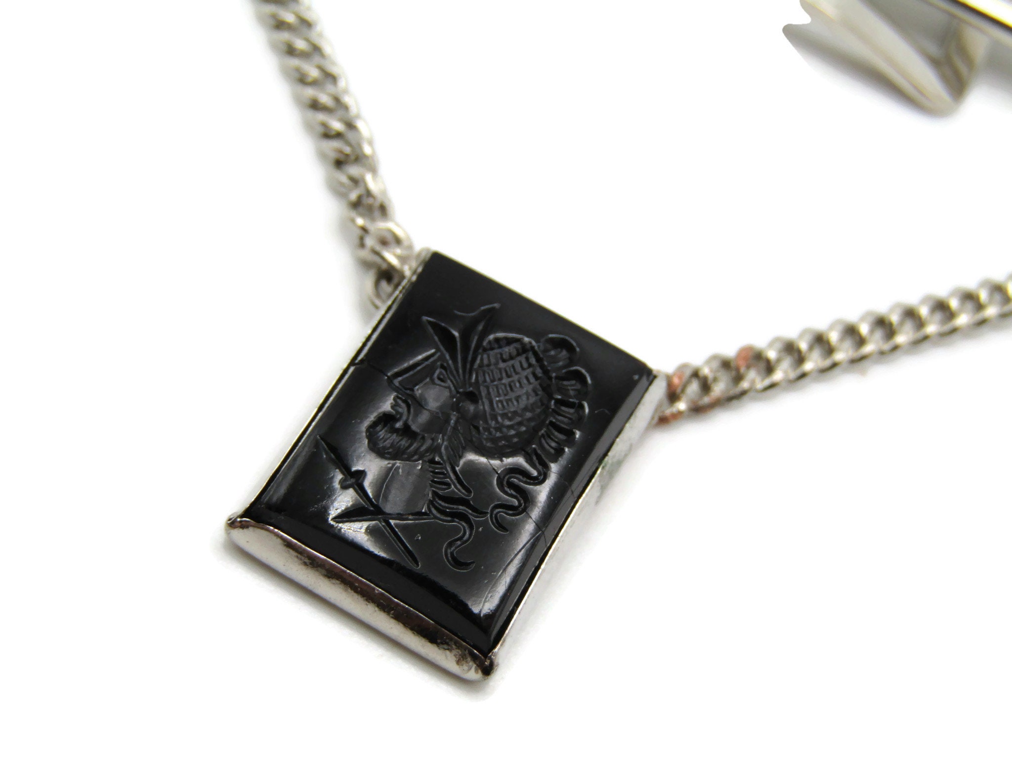 Black Stone Soldier Head Tie Chain Tie Clip Silver Tone Tie Bar Men's Jewelry