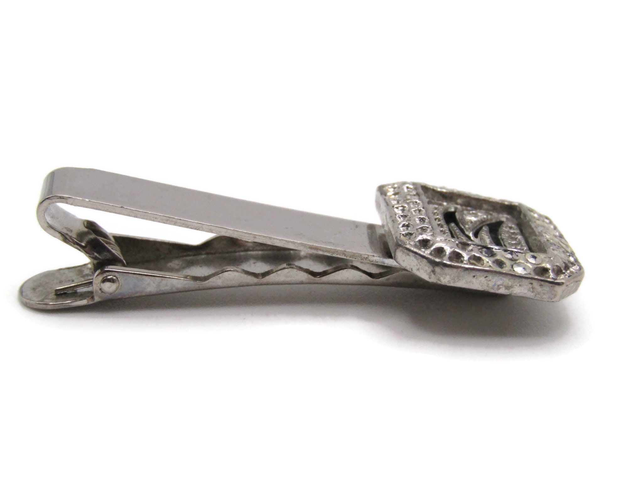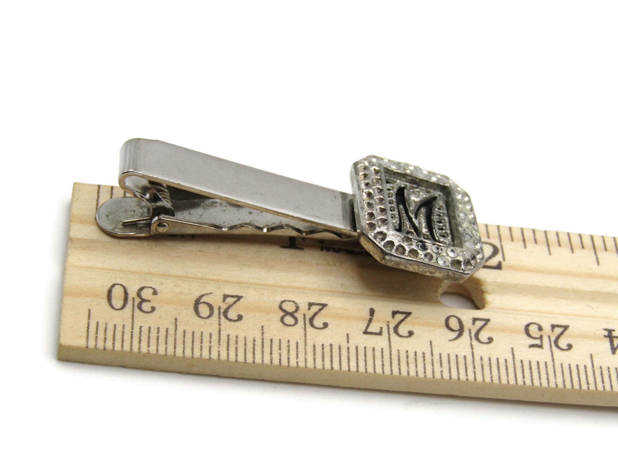 M Initial Letter Monogram Rhinestone Inlay Tie Clip Tie Bar Men's Jewelry