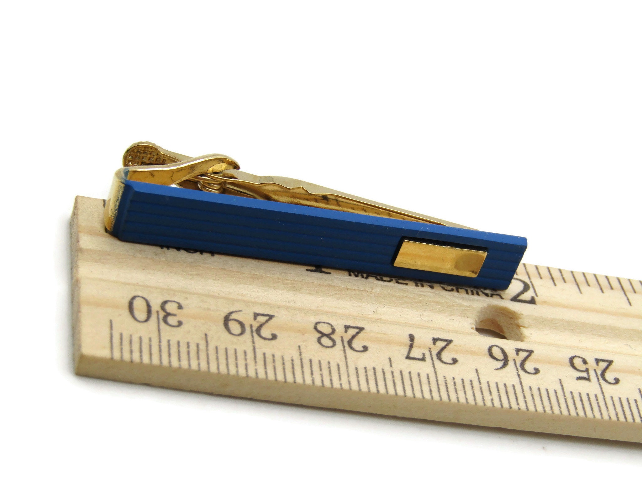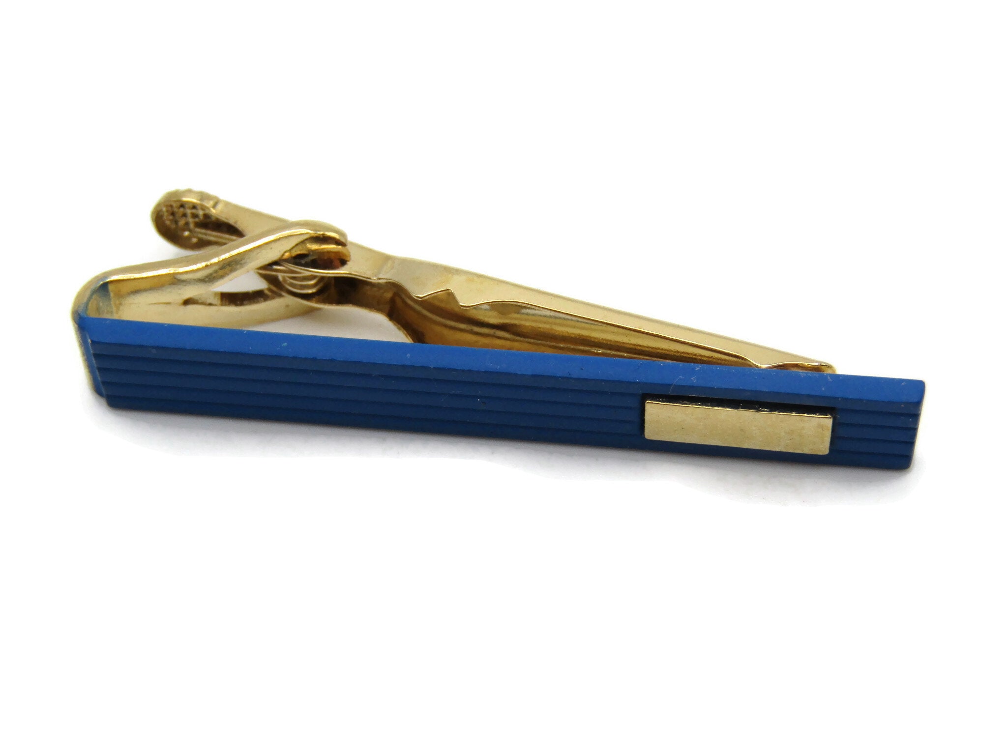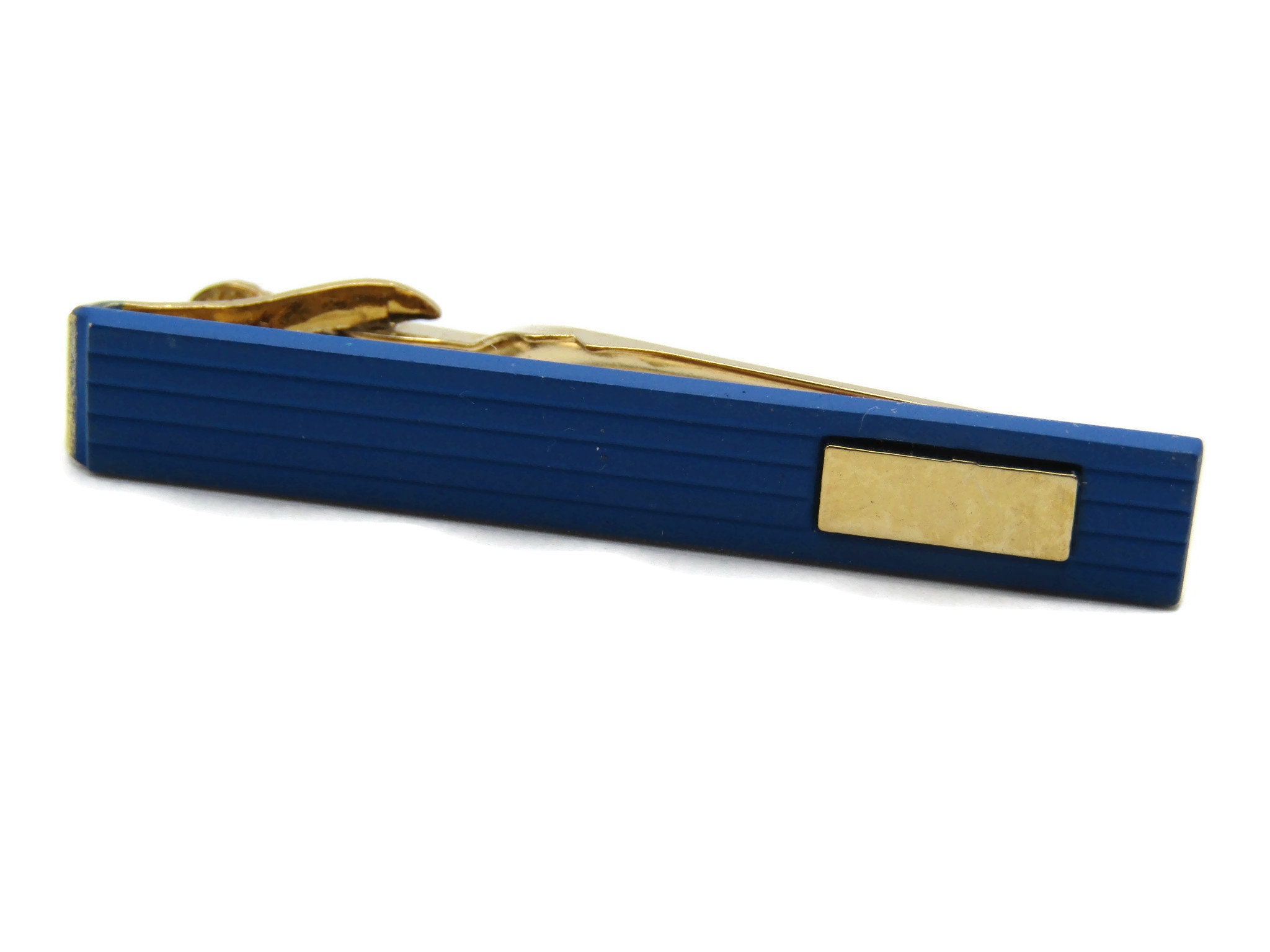 Blue Horizontal Line Gold Tone Rectangle Tie Bar Tie Clip Men's Jewelry