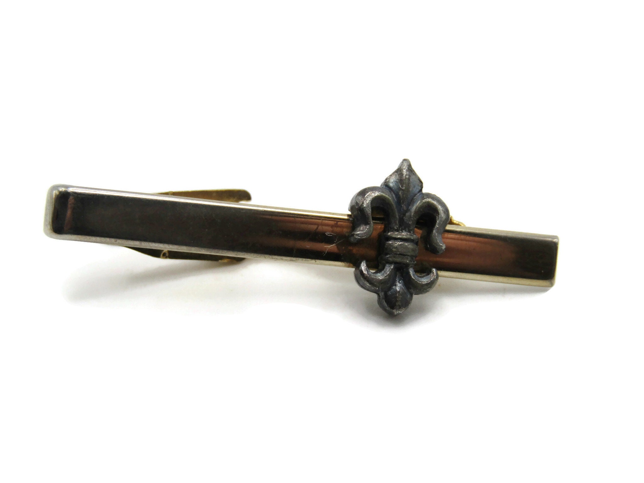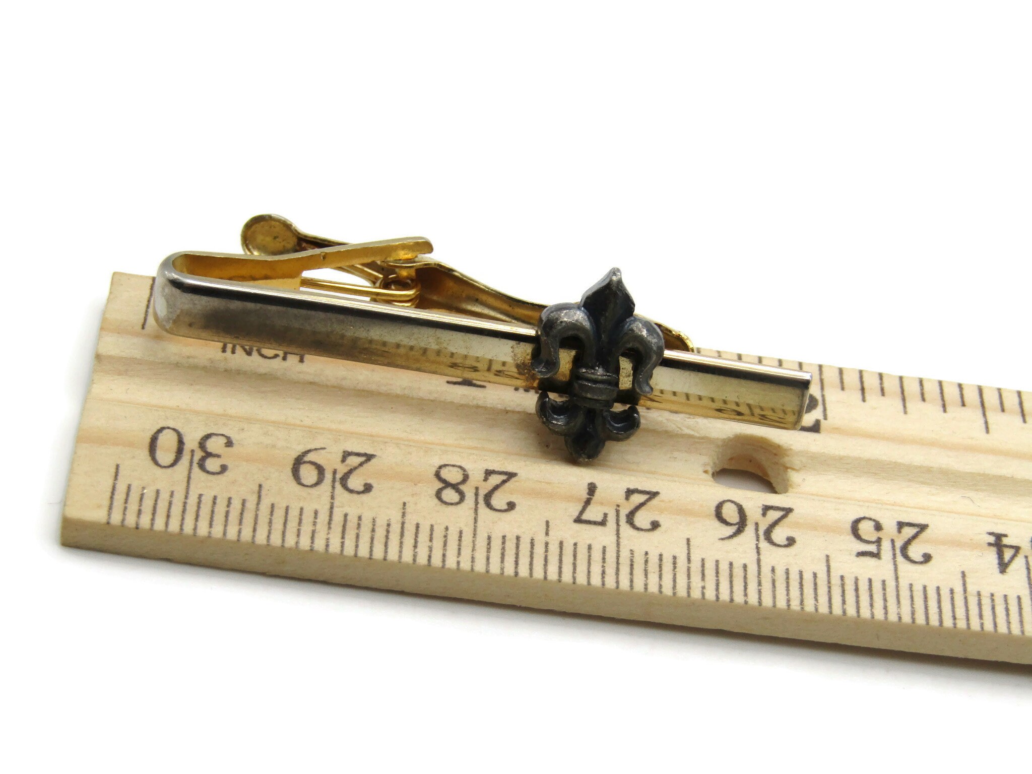 Fleur De Lis Inlay Smooth Finish Modernist Tie Bar Gold Tone Tie Clip Men's Jewelry