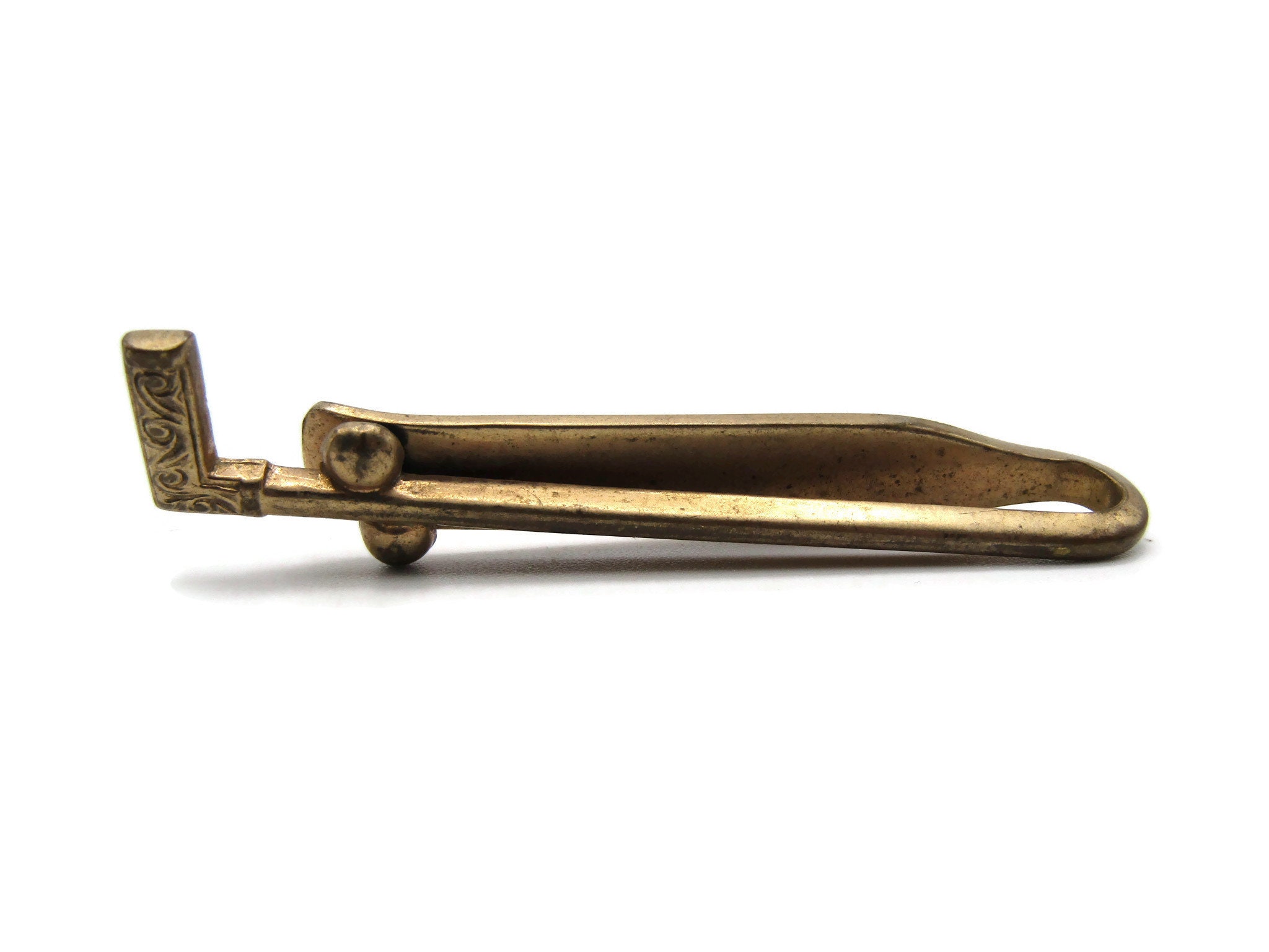 Vintage Golf Club Tie Clip Golfer Gift Gold Tone Tie Bar Men's Jewelry