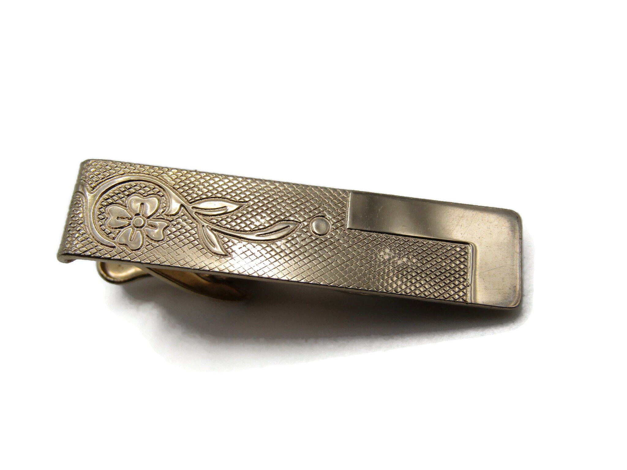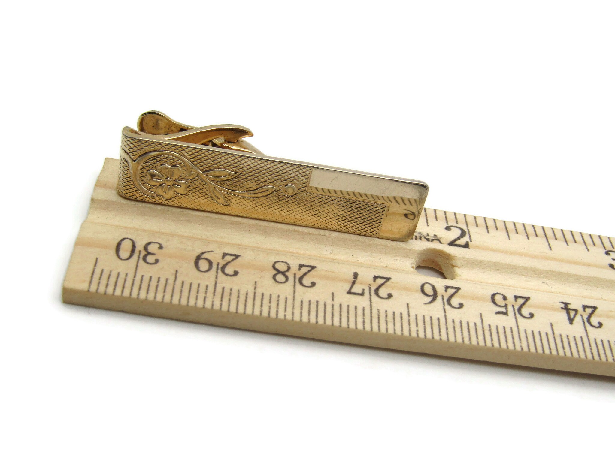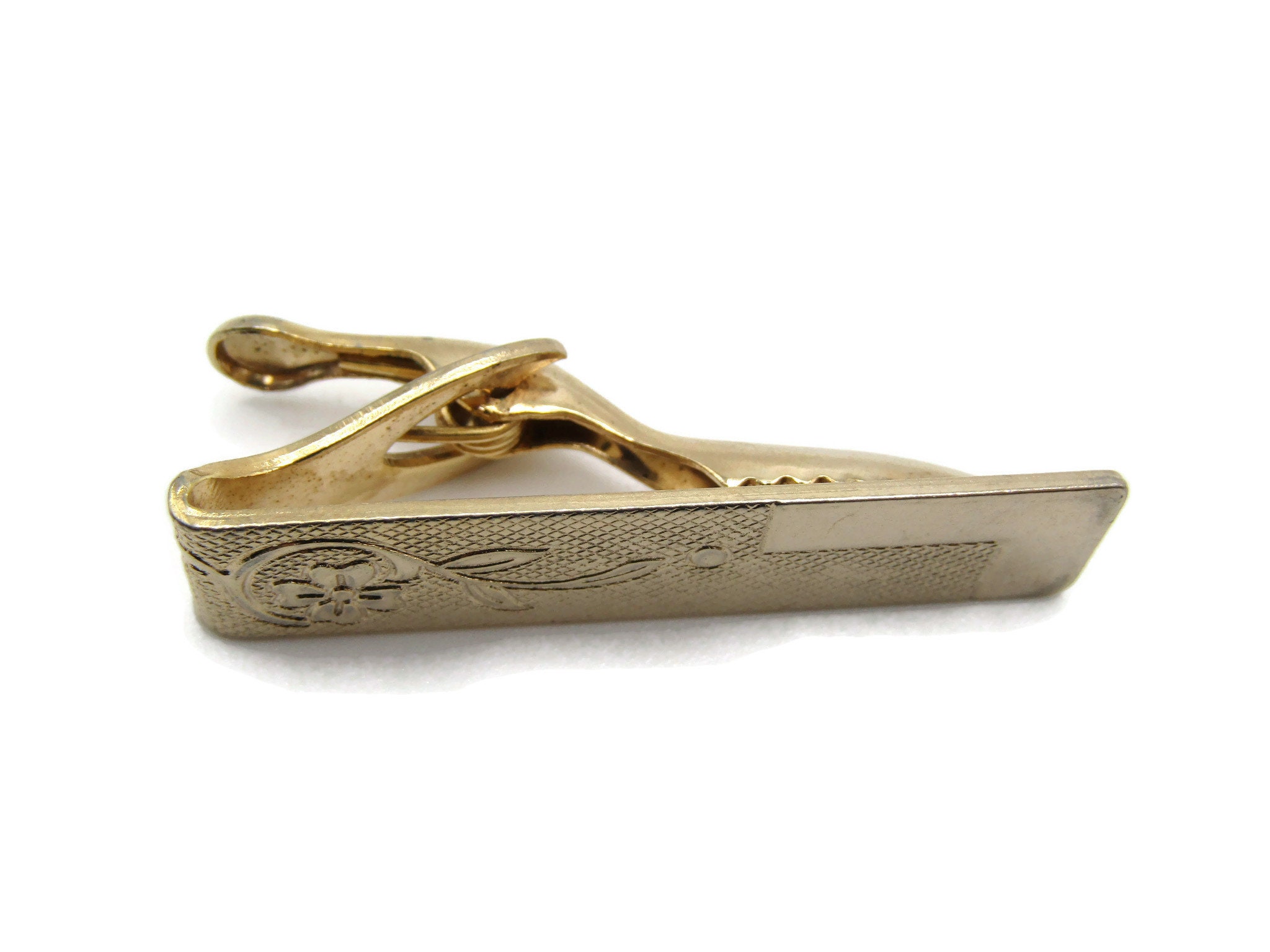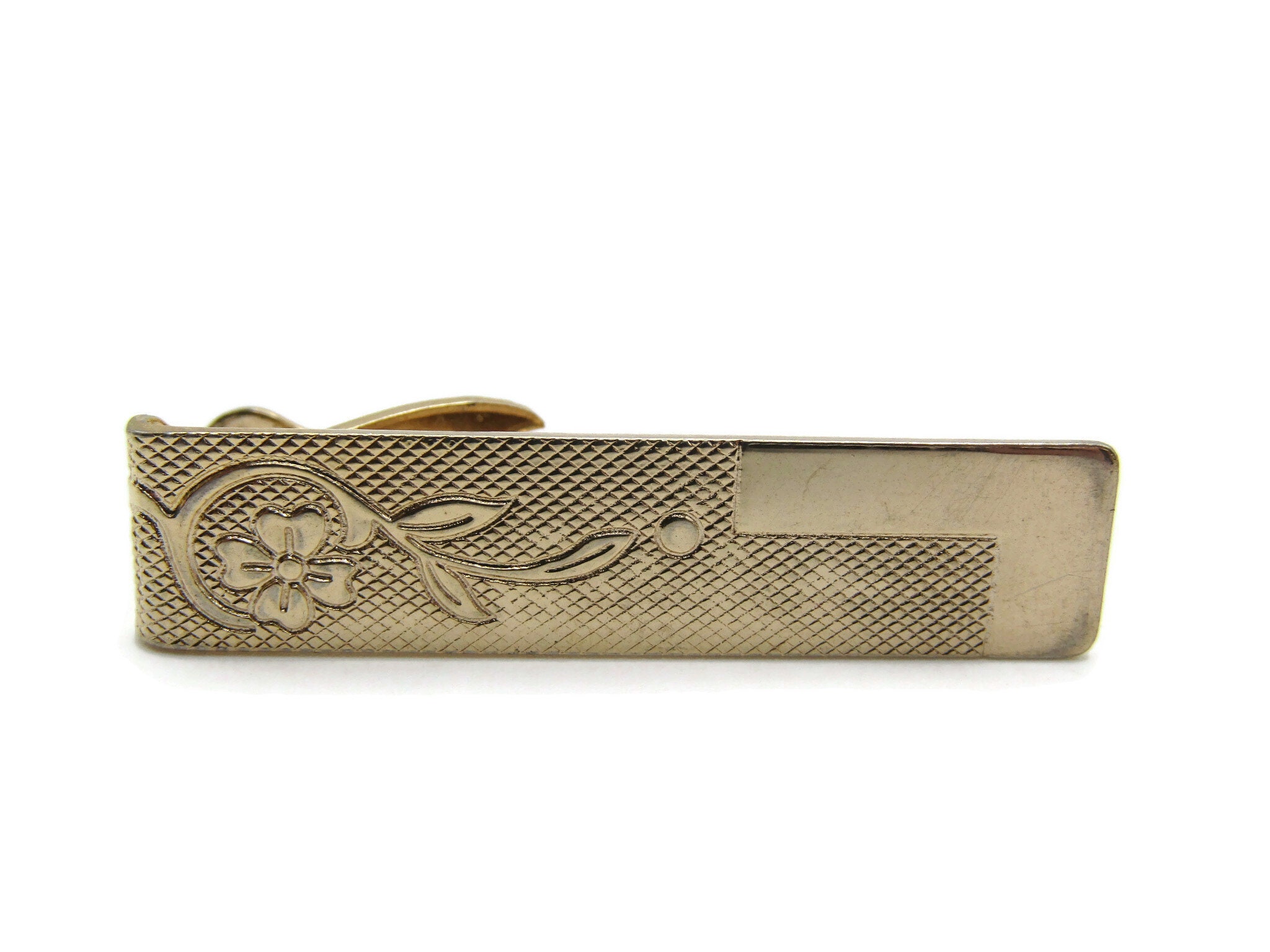 Floral Etched Design Smooth Edge Gold Tone Tie Bar Tie Clip Men's Jewelry