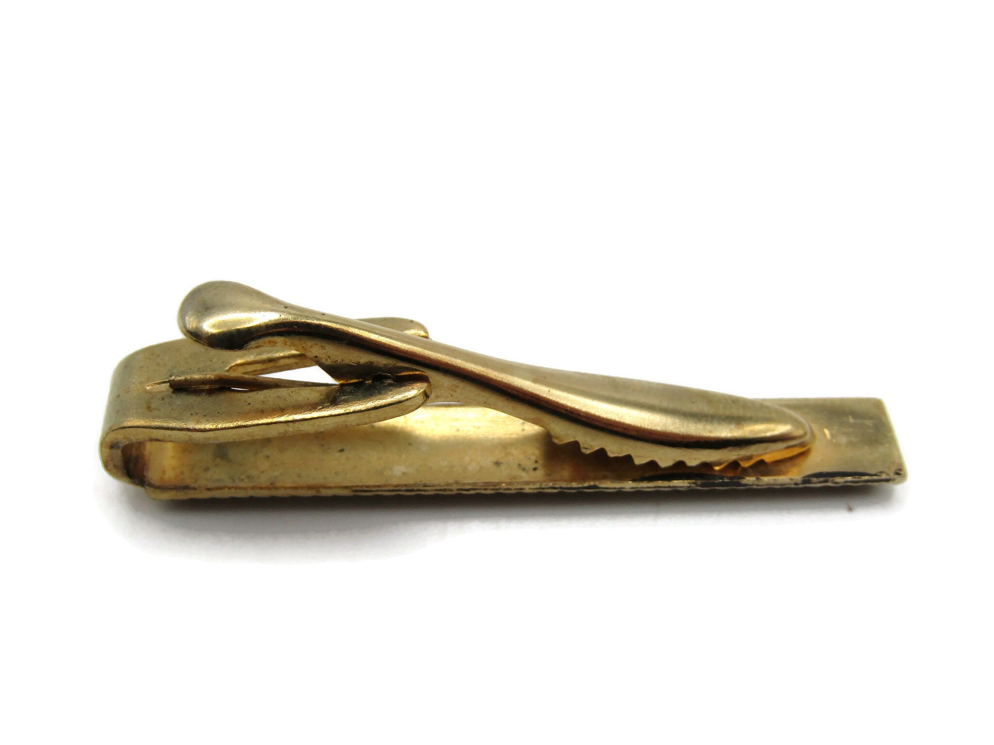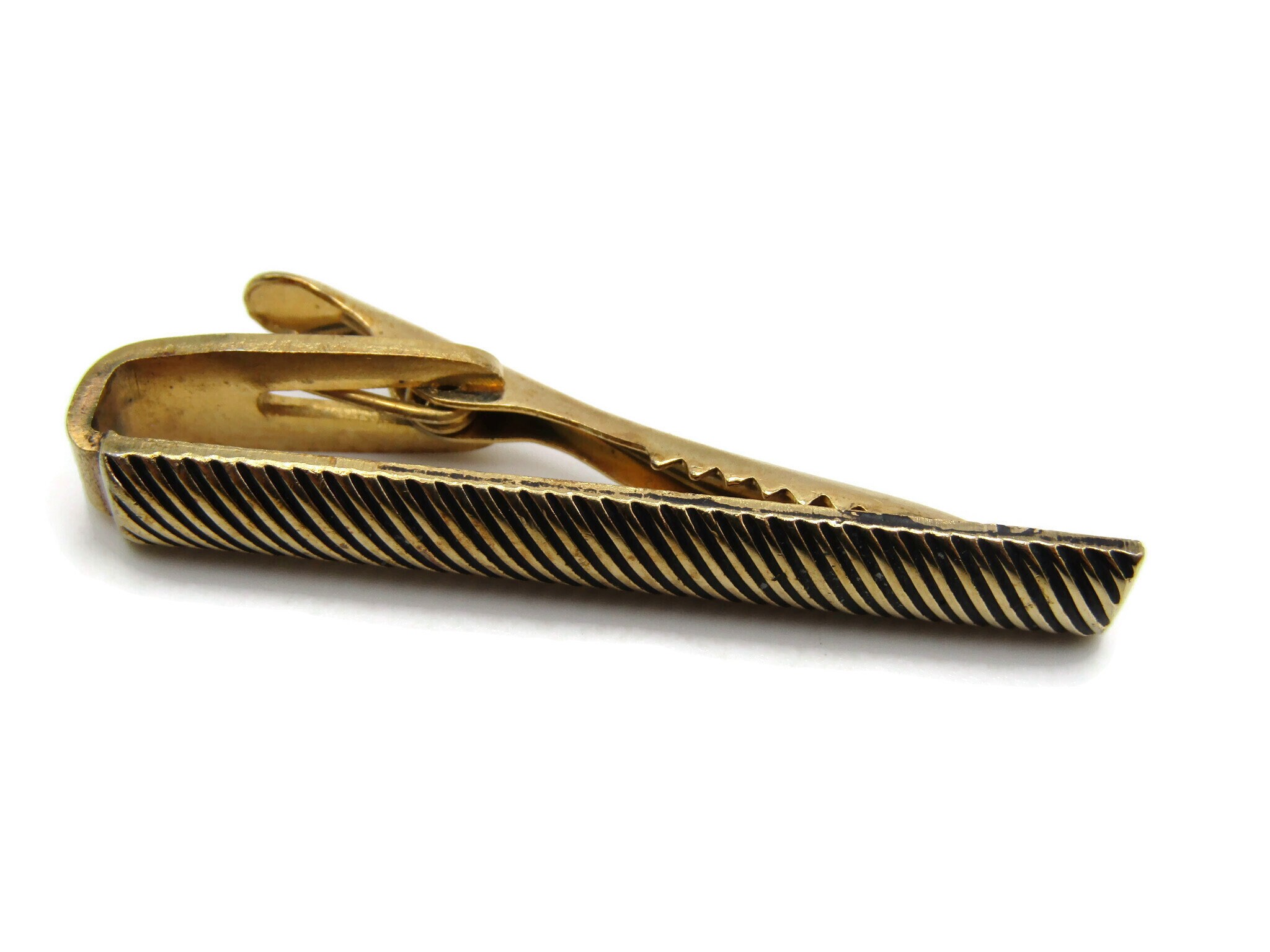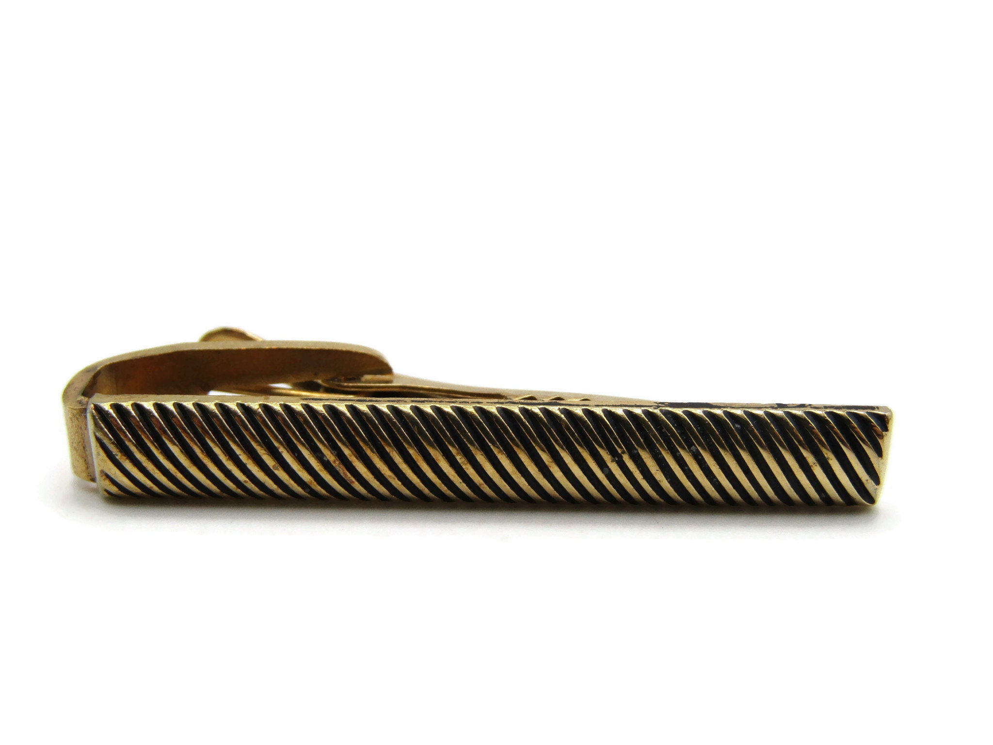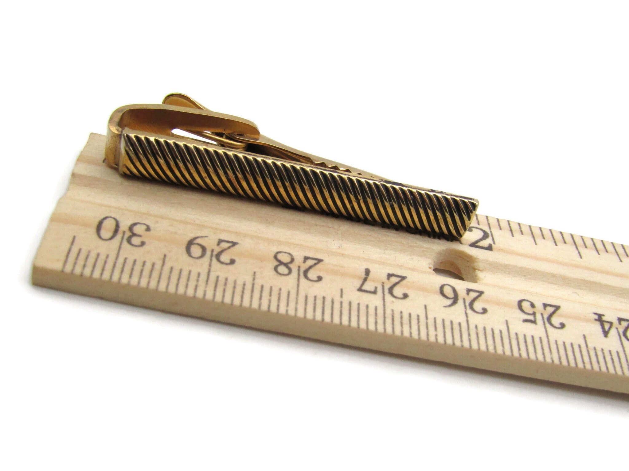 Diamond Line Design Tie Bar Modernist Industrial Style Tie Clip Gold Tone Men's Jewelry