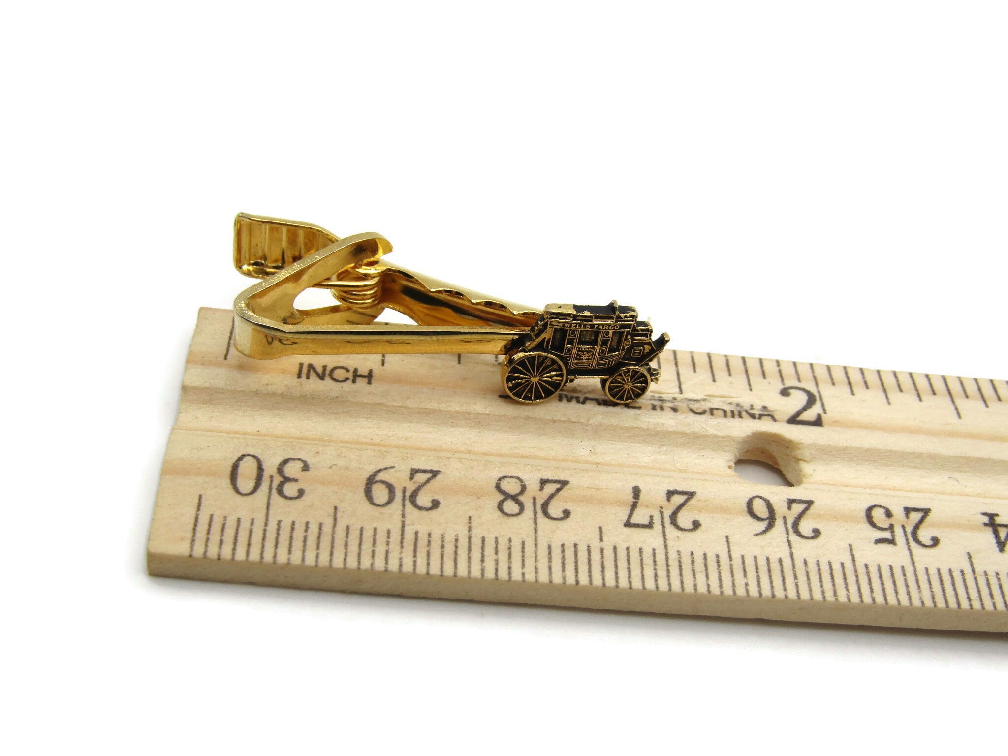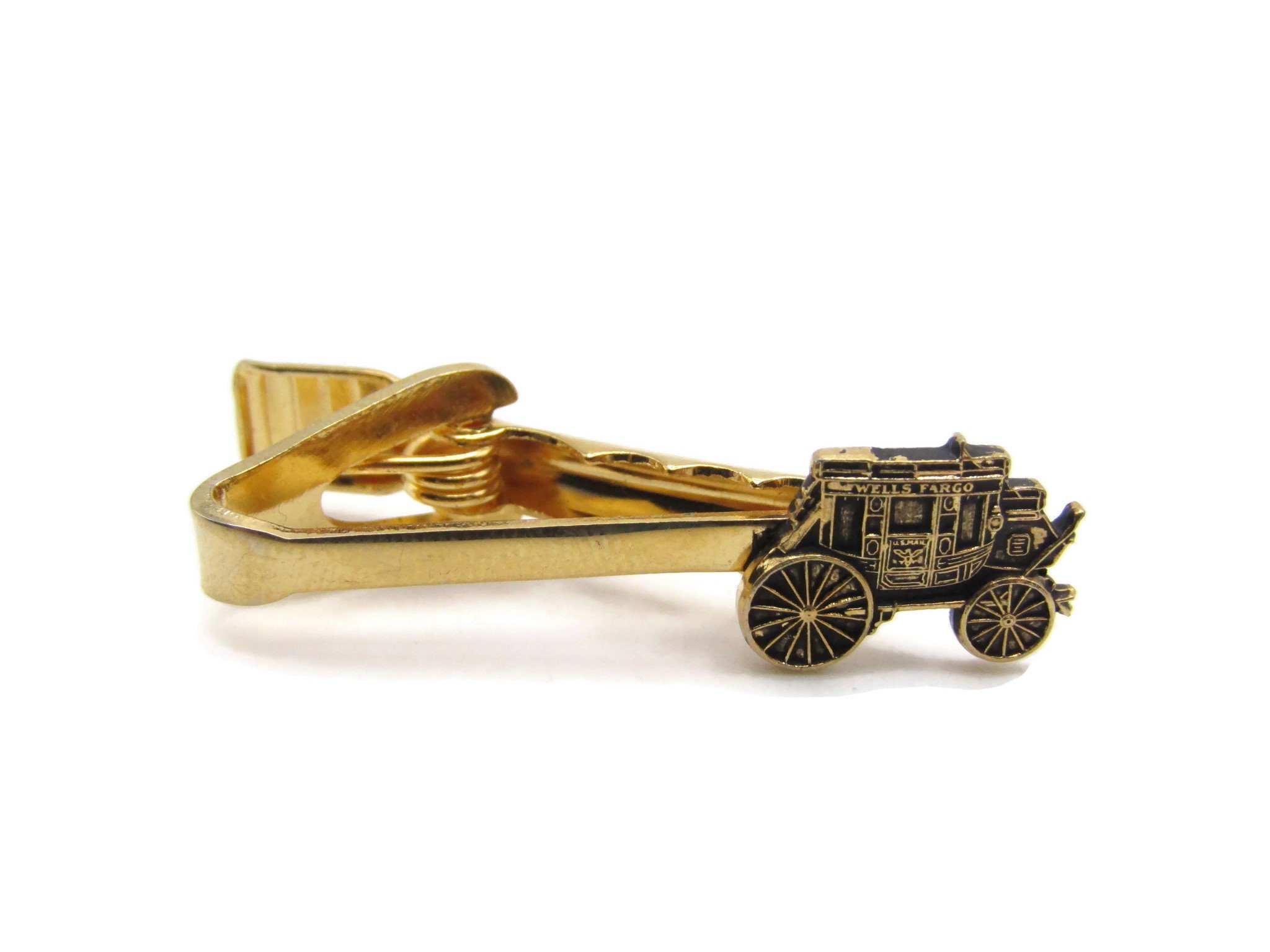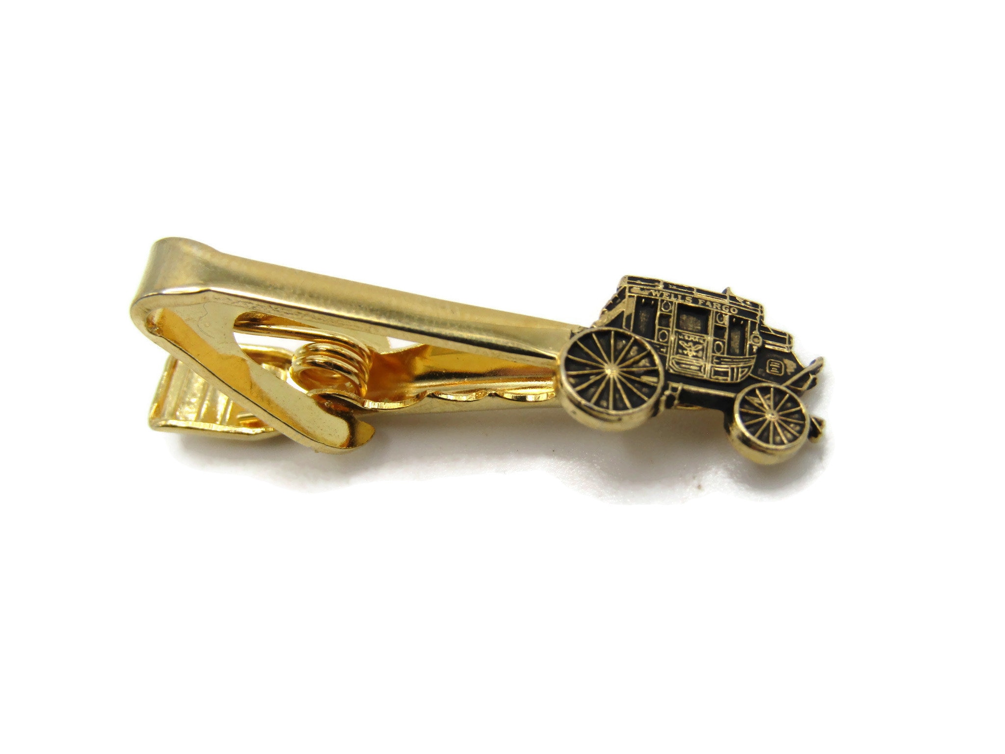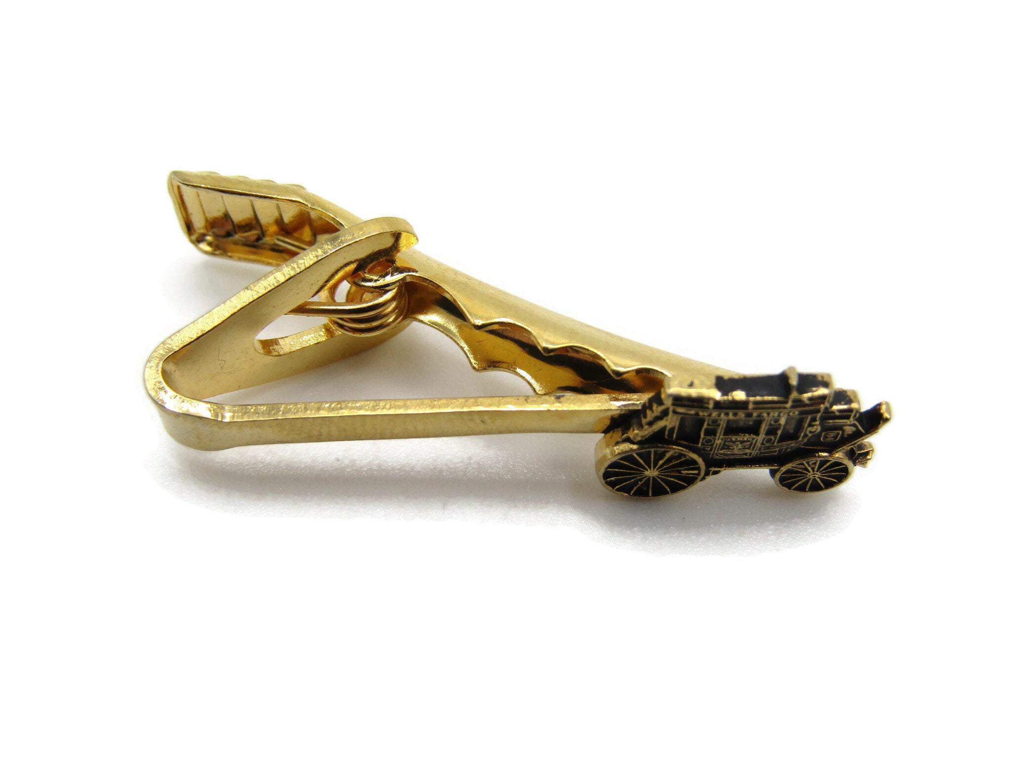 Carriage Car Tie Clip Etched Design Tie Bar Gold Tone Men's Jewelry