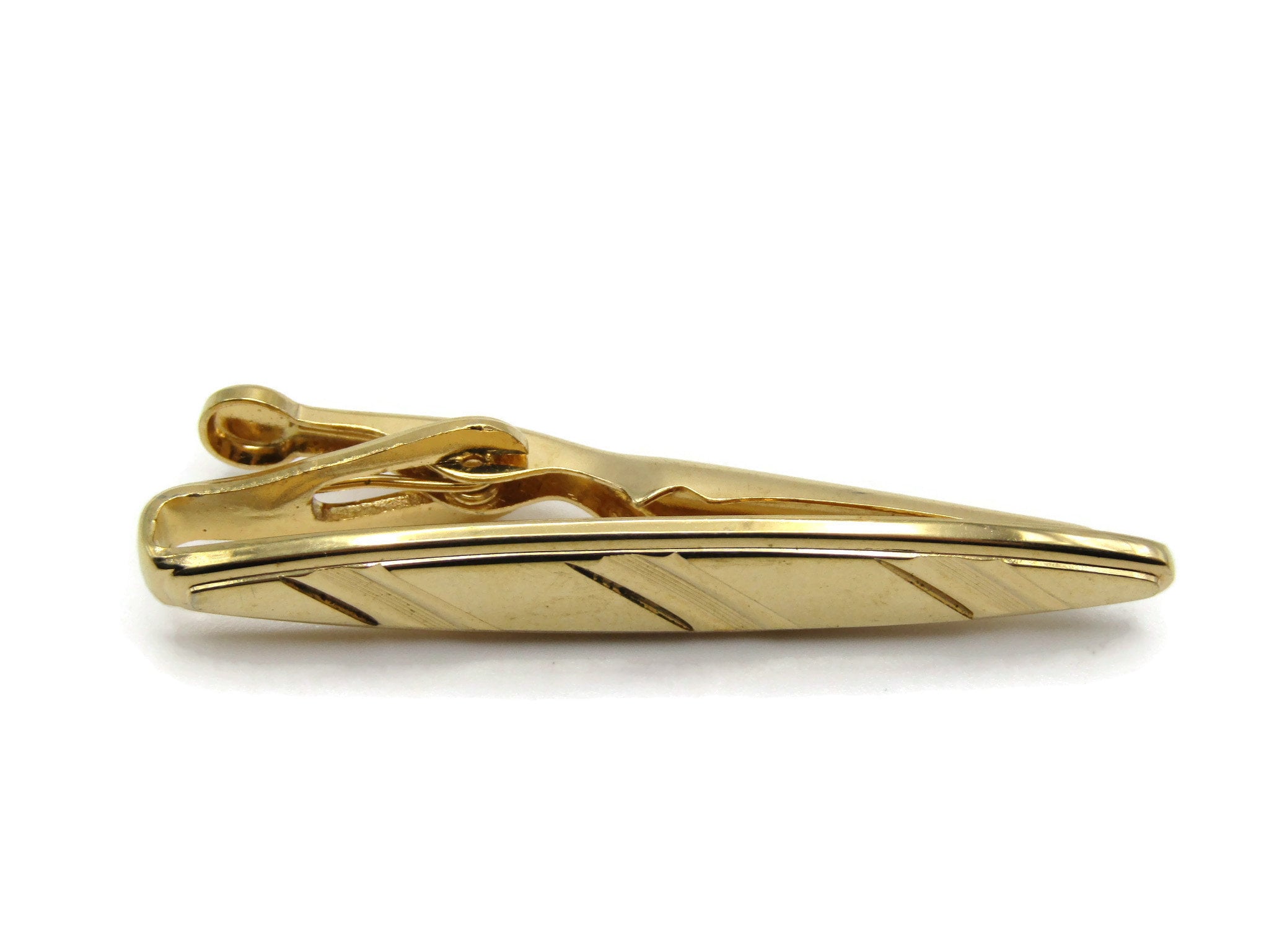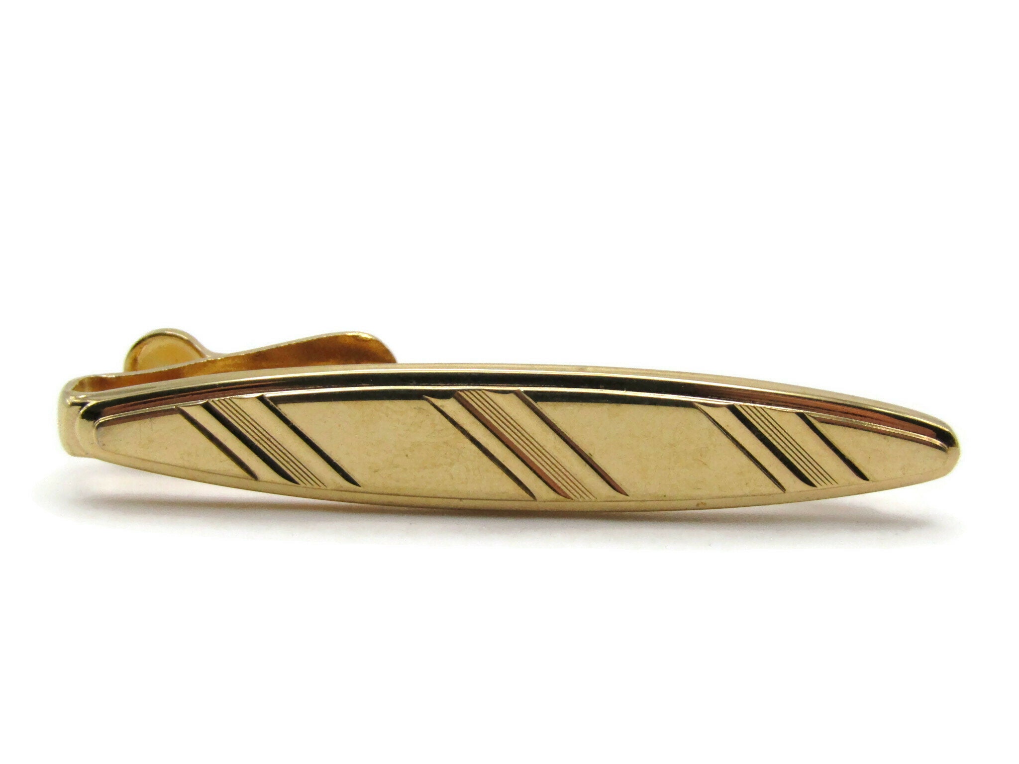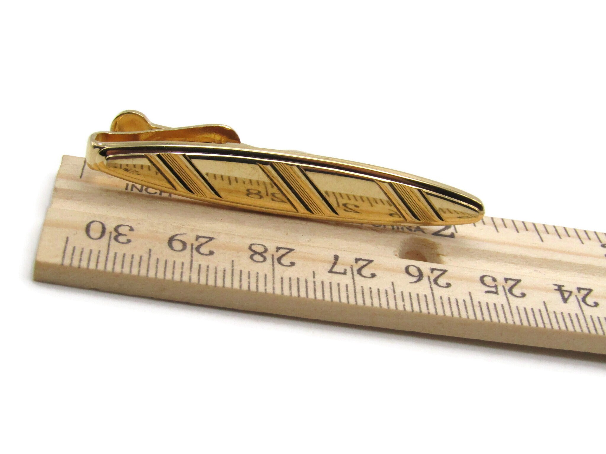 Diagonal Stripe Classic Modernist Gold Tone Tie Clip Tie Bar Men's Jewelry