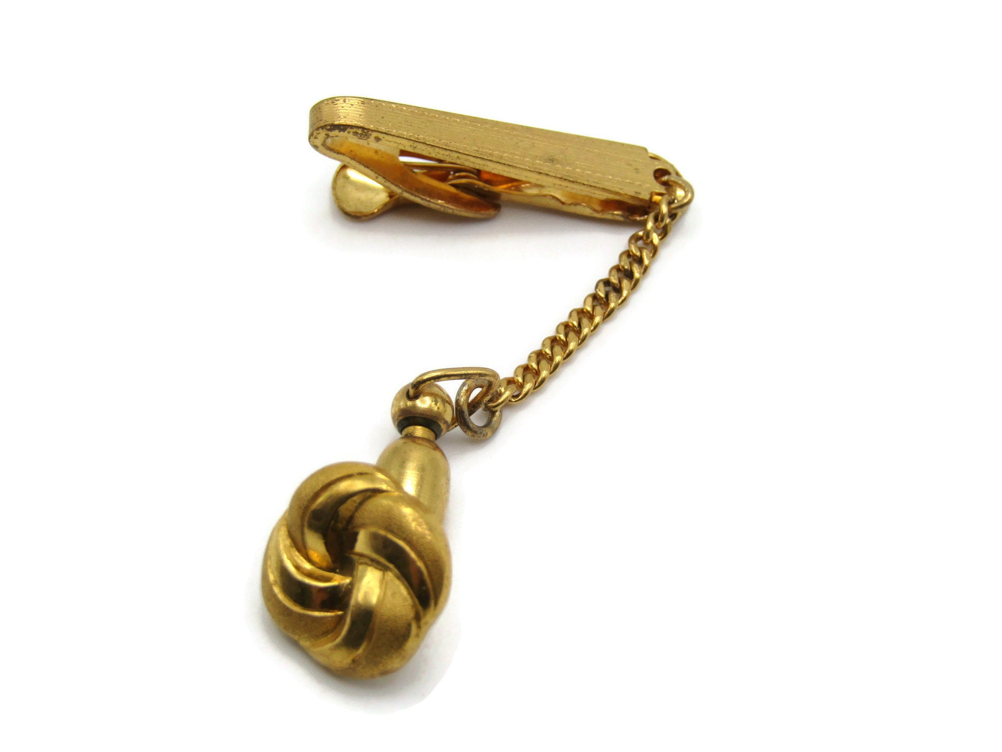 Flower Tie Chain Etched Tie Bar Gold Tone Industrial Tie Clip Men's Jewelry